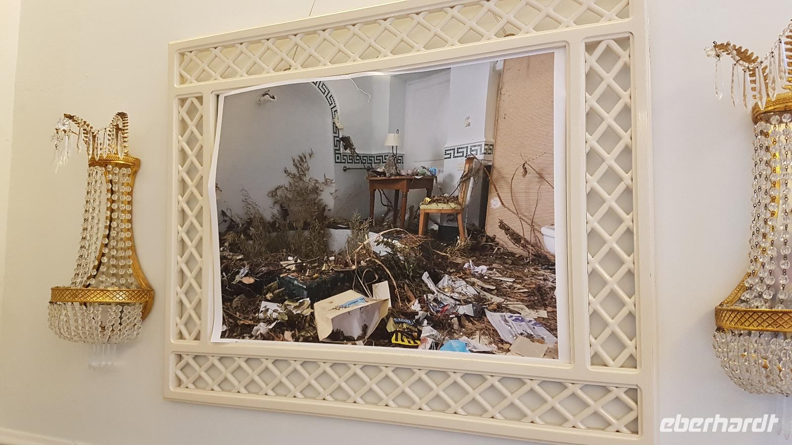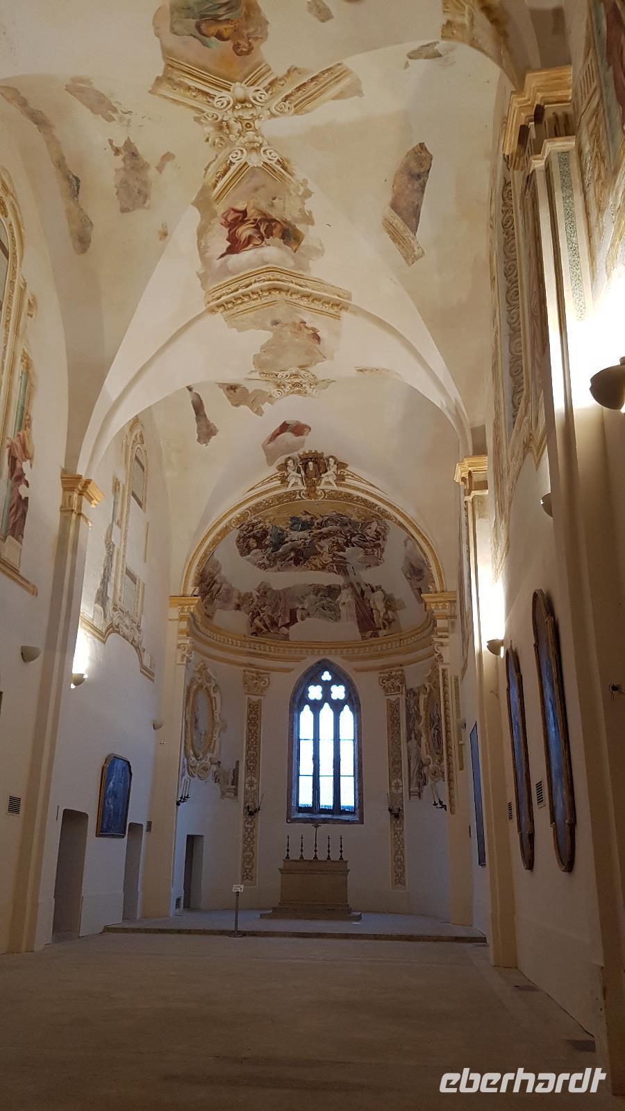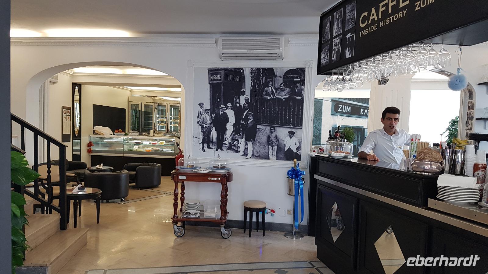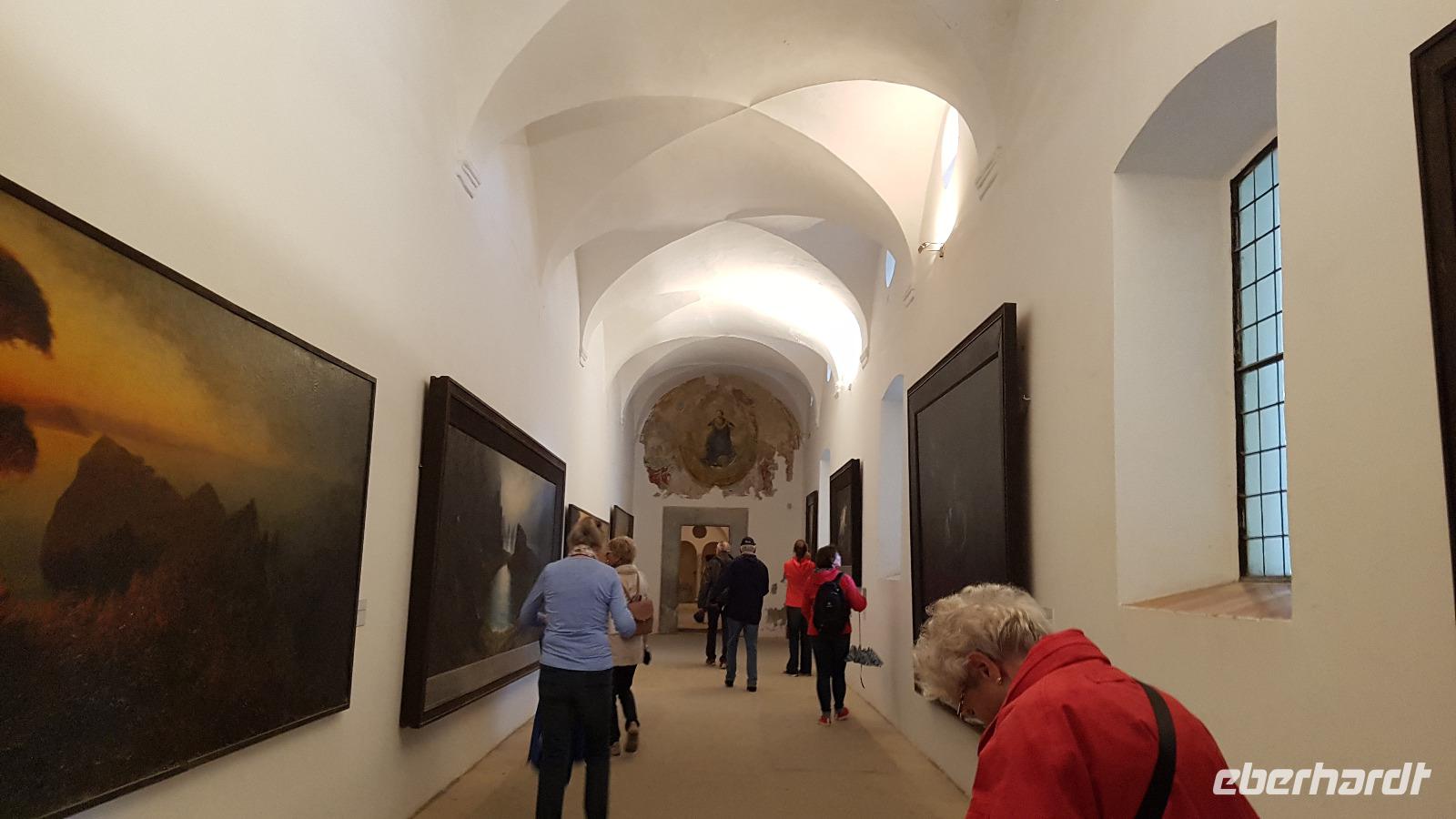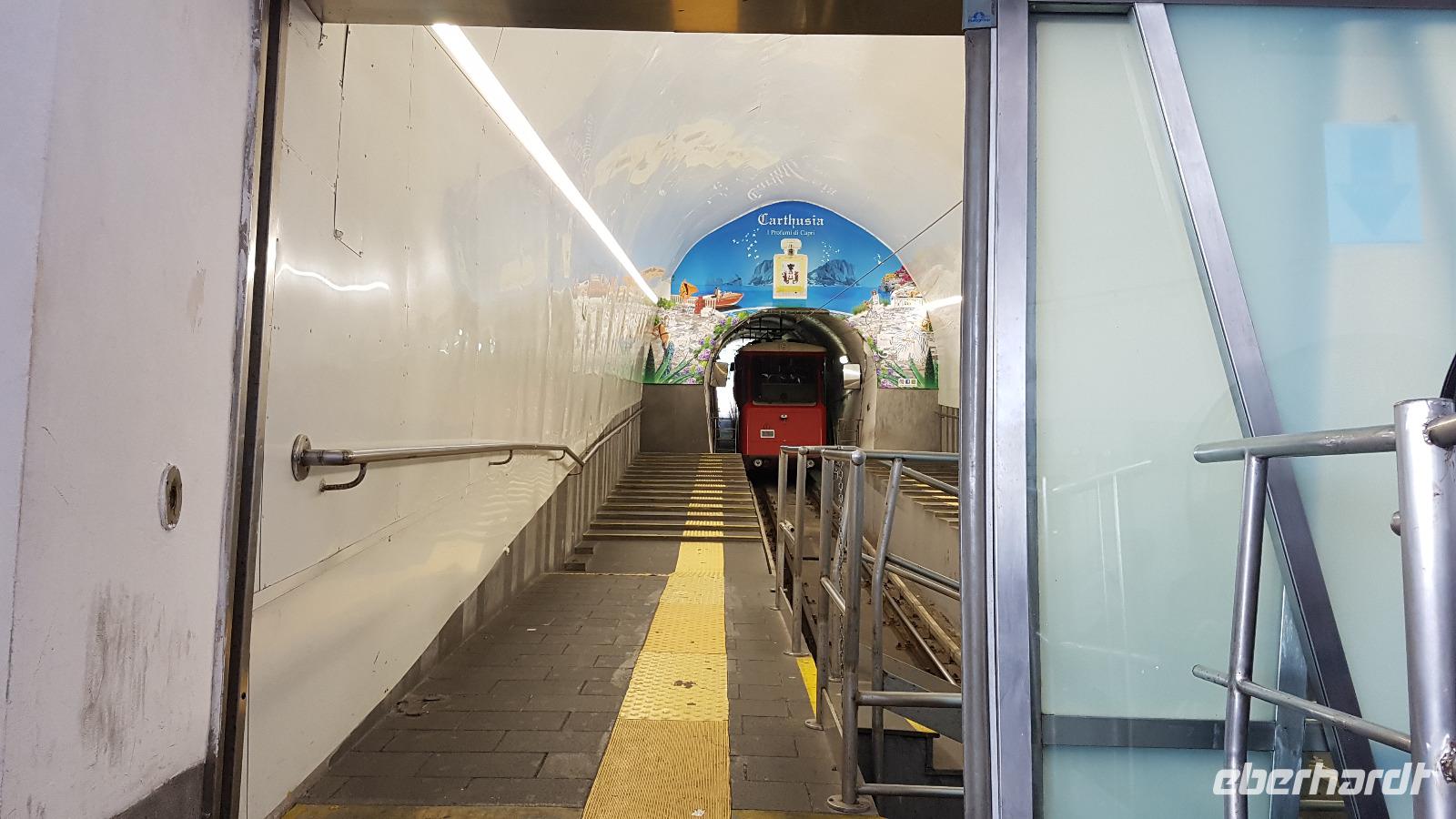 Das Frühstück war unsere erste positive Überraschung des Tages, denn es war ganz ausgezeichnet. Wir konnten beim Frühstück drin oder draussen unter einem Dach sitzen und die ersten Regenschauer ganz entspannt ertragen. Annamaria, unsere Capreser Reiseleiterin, holte uns im Hotel ab. Den Beginn unseres Besichtigungsprogramms hatten wir schon auf 9.30 Uhr verschoben, in der Hoffnung, dass der Regen dann vorbei sei. Aber während wir zum Kartäuserkloster unterwegs waren, gab es nochmals sehr kräftige Gewitterschläge und dann im Kloster schüttete es ganz mächtig. Die Wasserspeier konnten die Wassermassen nicht aufnehmen und so entstanden noch recht interessante Fotos in den Innenhöfen des Klosters und wir konnten uns Zeit lassen und die Gemälde von Diefenbach in aller Ruhe betrachten. Als der Regen vorbei war, gingen wir zu den Augustusgärten und machten unterwegs einen Stopp an der Parfümerie Carthusia. Auf den Aussichtsterrassen der Augustusgärten waren schon viele Gruppen unterwegs und wir brauchten viel Geduld, um bis zu den schönsten Fotomotiven vorzudringen. Aber im Gegensatz zu den Tagestouristen hatten wir ja Zeit.