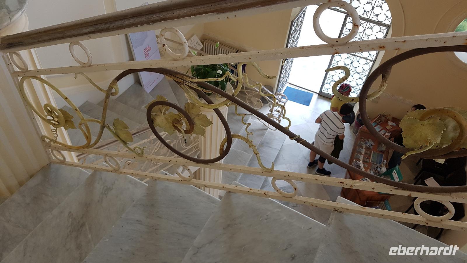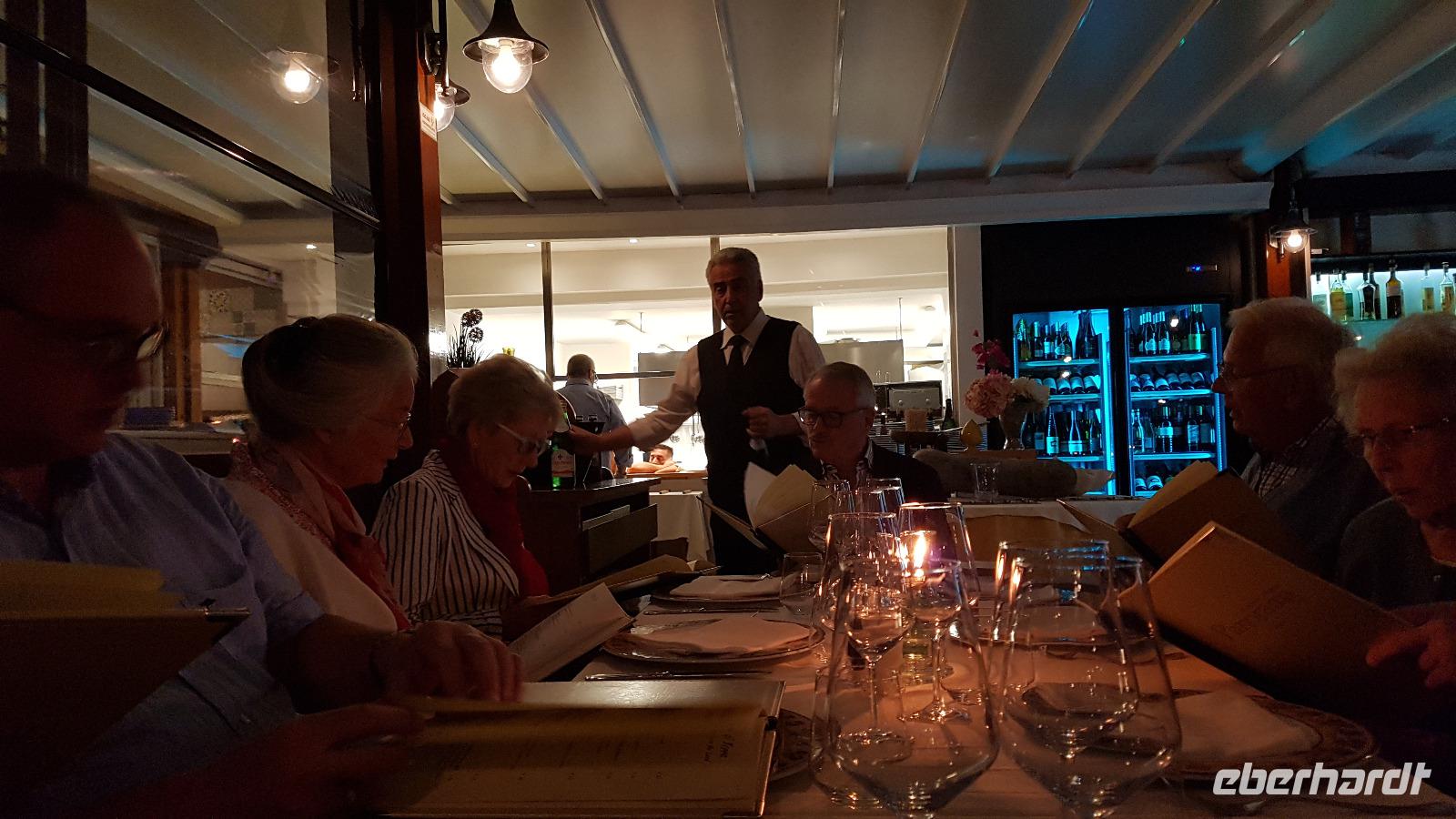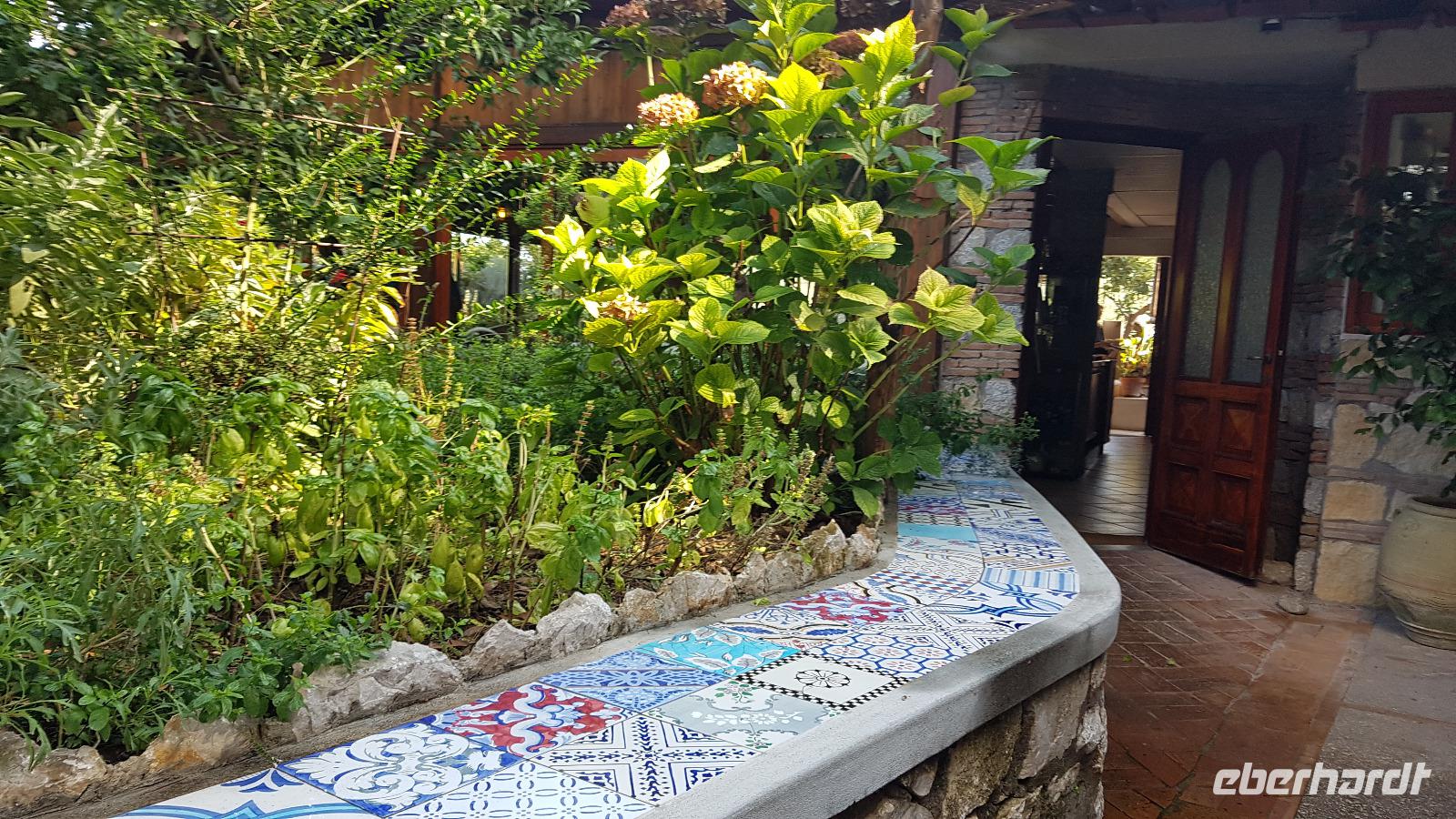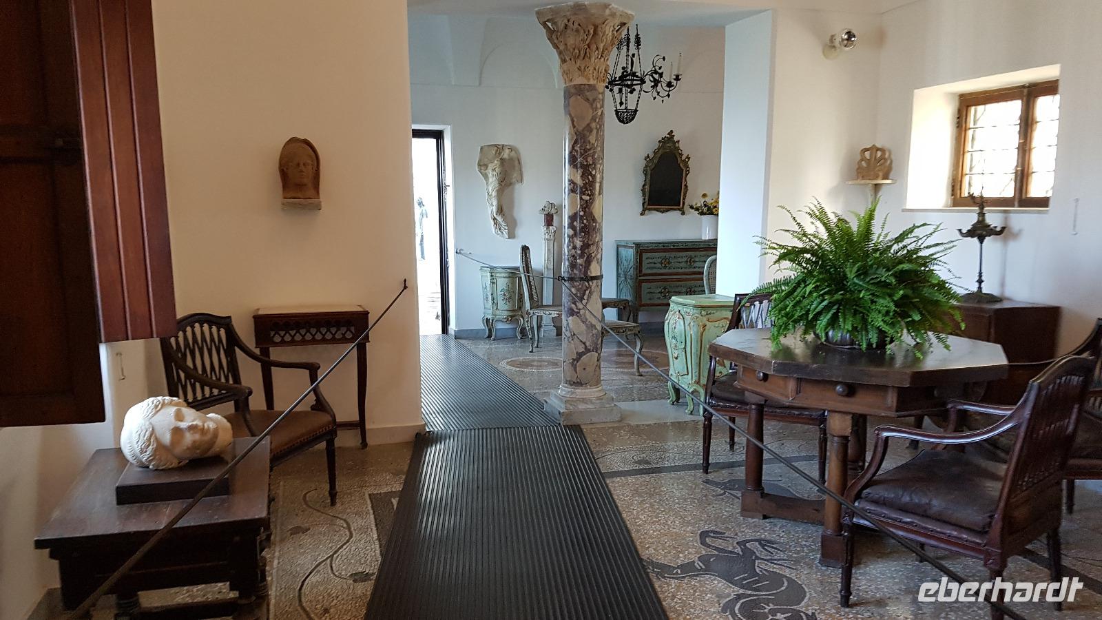 Die Villa Lysis, auch Villa Fersen - nach ihrem Erbauer und Besitzer - genannt, hat eine exponierte Lage hoch oben mit Blick zur Marina Grande. Der junge und reiche Fersen kam 1904 nach Capri und wohnte zunächst im Hotel Quisisana. Noch im selben Jahr begannen die Bauarbeiten zur Villa, die er nach dem jungen Athener Lysis benannte. Er verbrachte in der Villa zusammen mit seinem jungen Freund Nino Cesarini seine besten Jahre und setzte seinem Leben freiwillig ein Ende mit im Champagnerglas aufgelösten Kokain. Die Villa wurde von der Gemeinde Capri restauriert und ist nun seit 5 Jahren wieder zu besichtigen. Die Stuckarbeiten, der Opiumraum, das Bad und die herrliche Aussicht sind eine Besichtigung wert. Wieder zurück in unserem Hotel, gingen einige Gäste noch einmal hinunter zum Meer an der Marina Piccolo. Fast 100 Höhenmeter waren dabei zu überwinden und nach dem Aufstieg freuten wir uns auf das Abendessen. Wir hatten im Ristorante Panorama reserviert, wo es sehr schmackhaftes Essen und äusserst charmante Kellner gab.