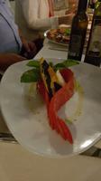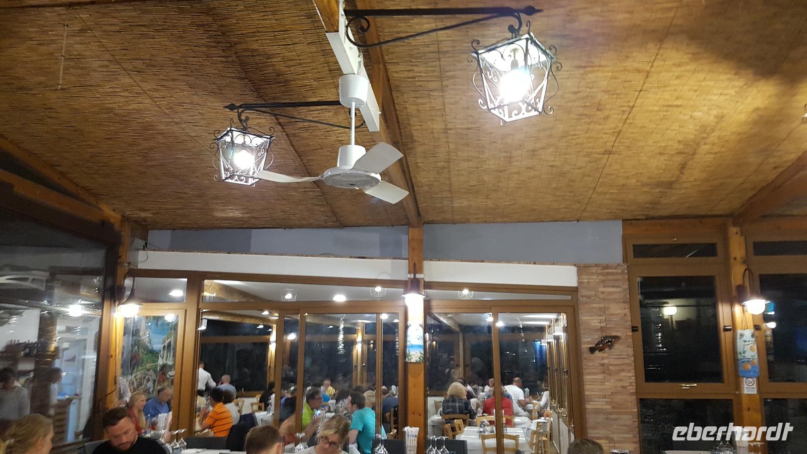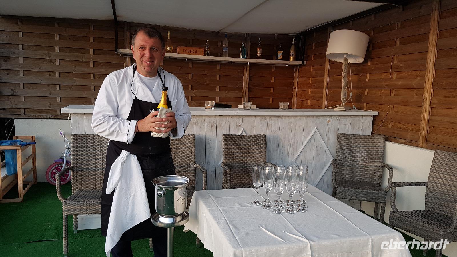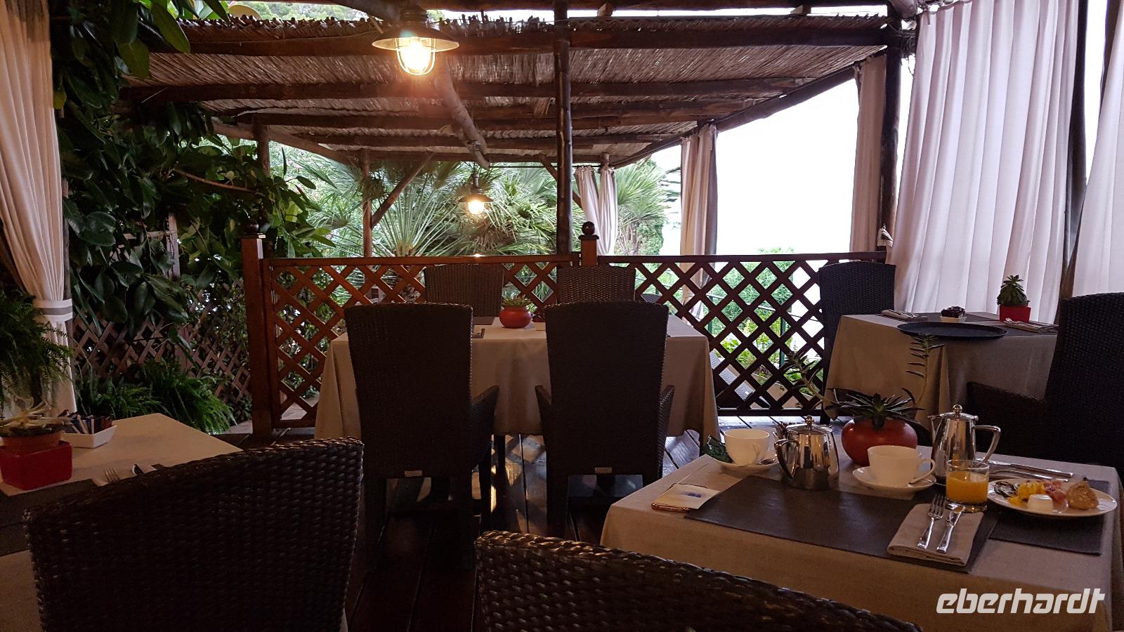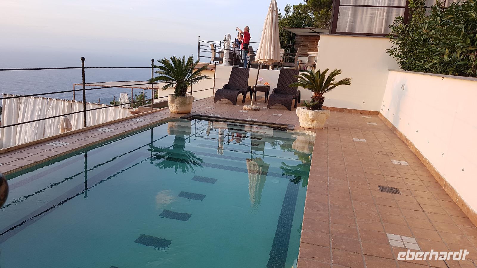 Die Villa Lysis, auch Villa Fersen - nach ihrem Erbauer und Besitzer - genannt, hat eine exponierte Lage hoch oben mit Blick zur Marina Grande. Der junge und reiche Fersen kam 1904 nach Capri und wohnte zunächst im Hotel Quisisana. Noch im selben Jahr begannen die Bauarbeiten zur Villa, die er nach dem jungen Athener Lysis benannte. Er verbrachte in der Villa zusammen mit seinem jungen Freund Nino Cesarini seine besten Jahre und setzte seinem Leben freiwillig ein Ende mit im Champagnerglas aufgelösten Kokain. Die Villa wurde von der Gemeinde Capri restauriert und ist nun seit 5 Jahren wieder zu besichtigen. Die Stuckarbeiten, der Opiumraum, das Bad und die herrliche Aussicht sind eine Besichtigung wert. Wieder zurück in unserem Hotel, gingen einige Gäste noch einmal hinunter zum Meer an der Marina Piccolo. Fast 100 Höhenmeter waren dabei zu überwinden und nach dem Aufstieg freuten wir uns auf das Abendessen. Wir hatten im Ristorante Panorama reserviert, wo es sehr schmackhaftes Essen und äusserst charmante Kellner gab.