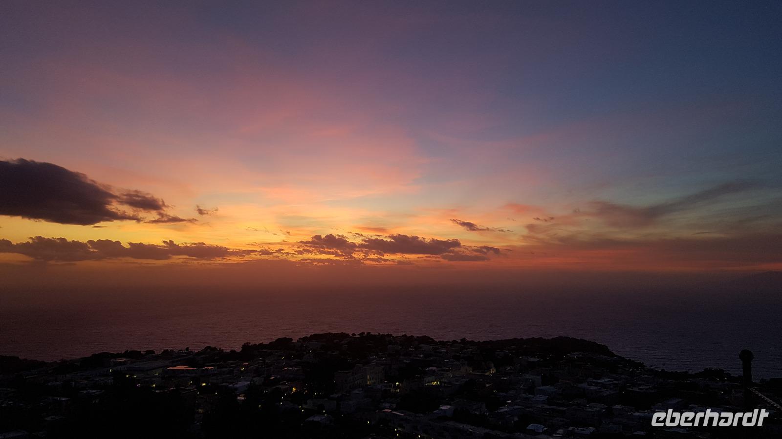 Wenn bei Capri die rote Sonne im Meer versinkt-diesen Höhepunkt gab es erst ganz am Ende unserer Reise, aber bis dahin waren schon viele Höhepunkte zu erleben auf dieser berühmten Insel im Golf von Ne