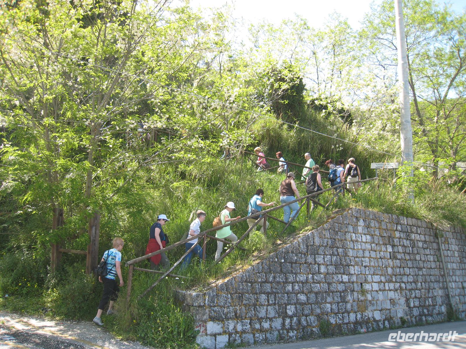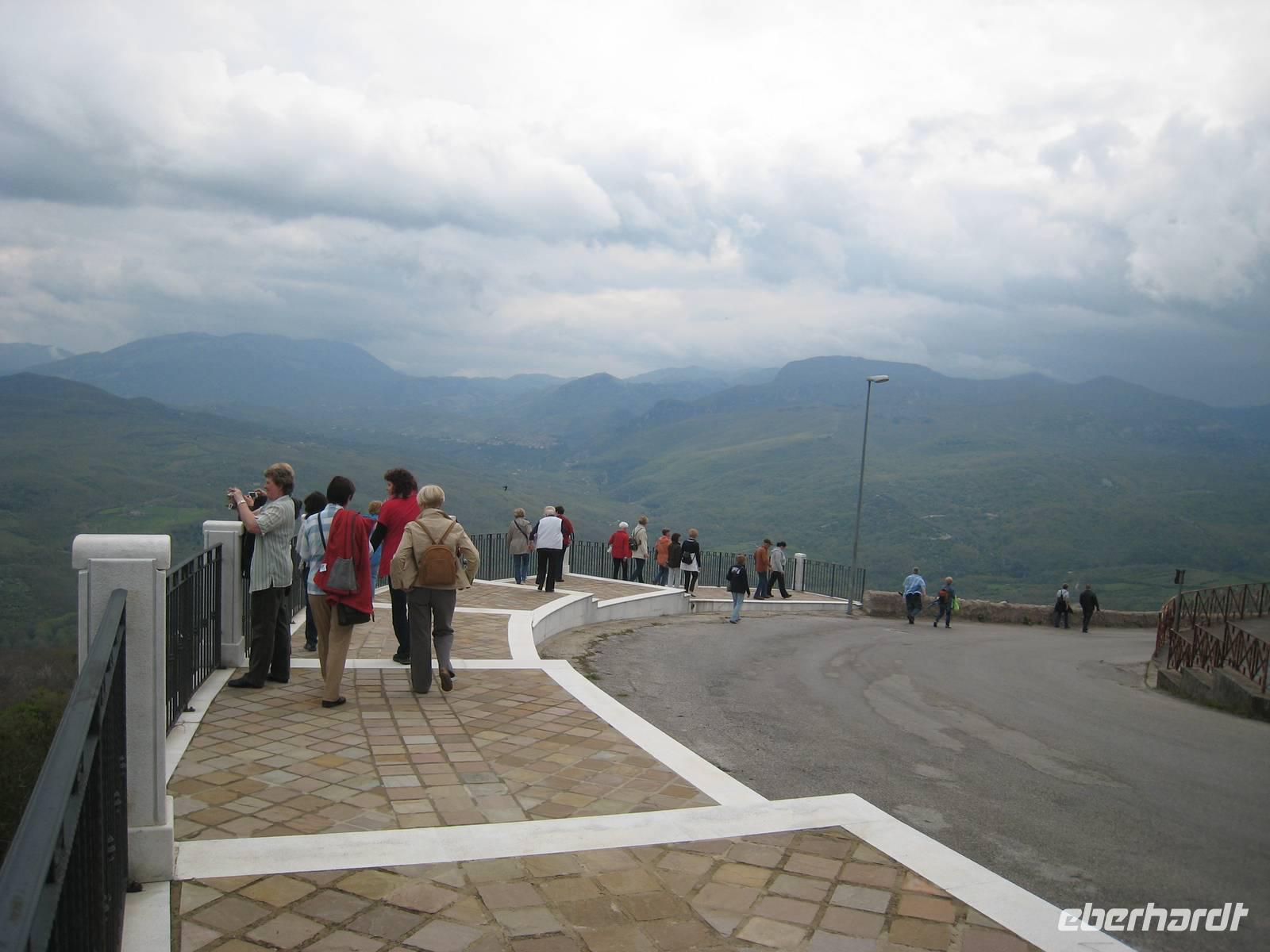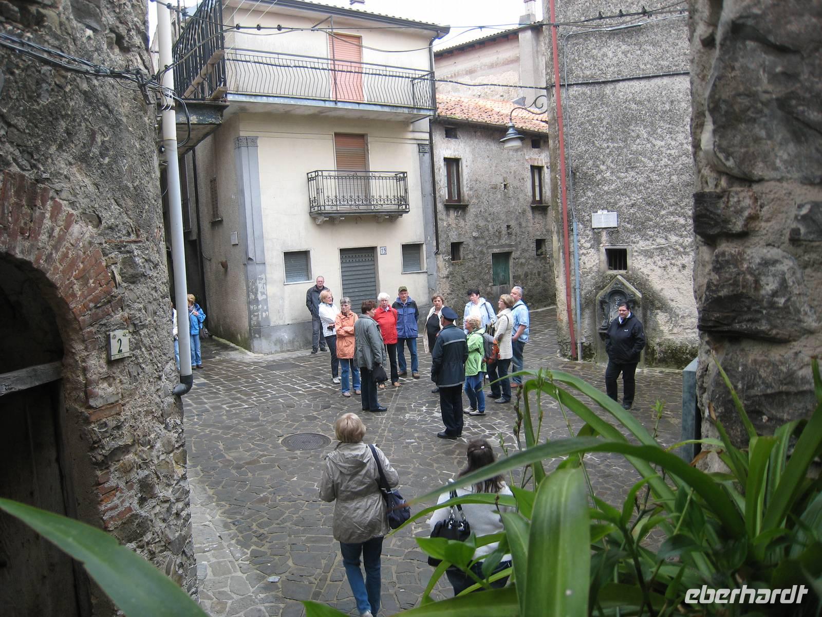 Nach dem Frühstück 9 Uhr starteten wir zur Cilento-Rundfahrt. Im Supermercato wurde zunächst für das Picknick eingekauft und dann führte die Route über Vallo della Lucania nach Stio. Dort besuchten wir ein kleines Museum und eine neu eröffnete renovierte Kirche und genossen der herrlichen Ausblick. Auf der Weiterfahrt sahen wir das Bergdorf Magliano Nuovo oben am Felsen wie ein Schwalbennest. Durch einen schmalen Durchgang erreichte unser Bus den Hügel und wir spazierten hinauf ins Dorf, hatten eine nette Begegnung mit einer alten Dame am Fenster - die uns zurief "Kinder geht in die Schule". Neugierig kam sie dann zu uns herunter und erkannte, daß wir dem Schulalter längst entwachsen waren. Ursula zeigte uns die Cilento-Berge und wir spazierten wieder hinunter. Weiter ging es über Castel s.Lorenzo, dem Ort mit dem großen Weinkontor, Roccadaspide, wo wir am Aussichtspunkt hielten und die Judasbäume aus der Nähe bewundern konnten, hinunter zu unserem Picknickplatz nahe einer alten Römerbrücke. Es gab Käse und Wurst aus der Region und einen guten Rotwein. Anschließend stellte sich jeder vor und auf der Rückreise war schon mächtig Stimmung im Bus. Unterwegs gab es noch eine Eis- und Kaffeepause und 18 Uhr im Hotel erwartete Tonino uns mit einer Weinprobe. Wir verkosteten 5 Sorten aus dem Cilento unterhaltsam präsentiert.