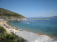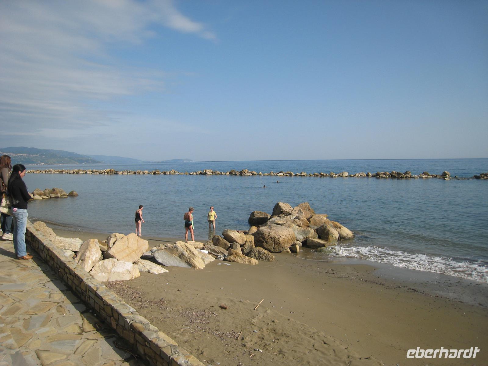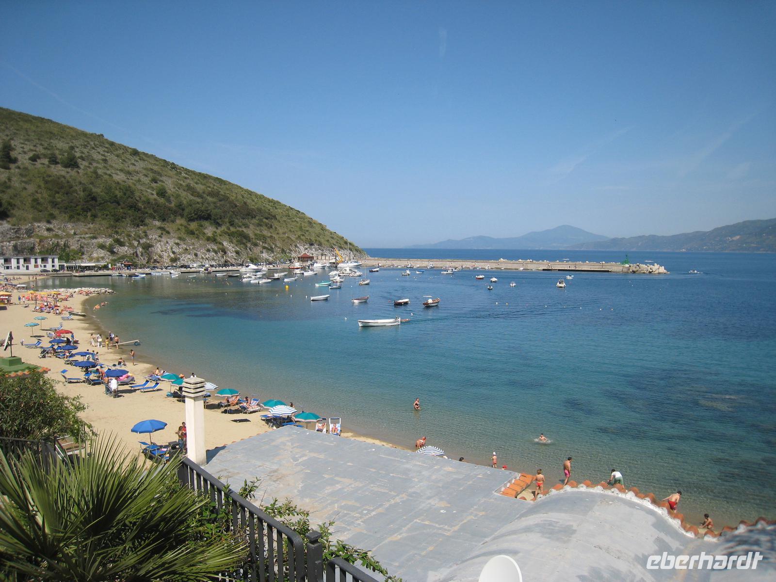 Inzwischen schien die Sonne wieder und wir spazierten mit Ursula durch den Hafen und die alten Gassen von Acciarola. Zurück im Hotel war die Regen vergessen und die Strandsachen kamen zum Einsatz. Es wurden sogar Liegen für uns aufgestellt.