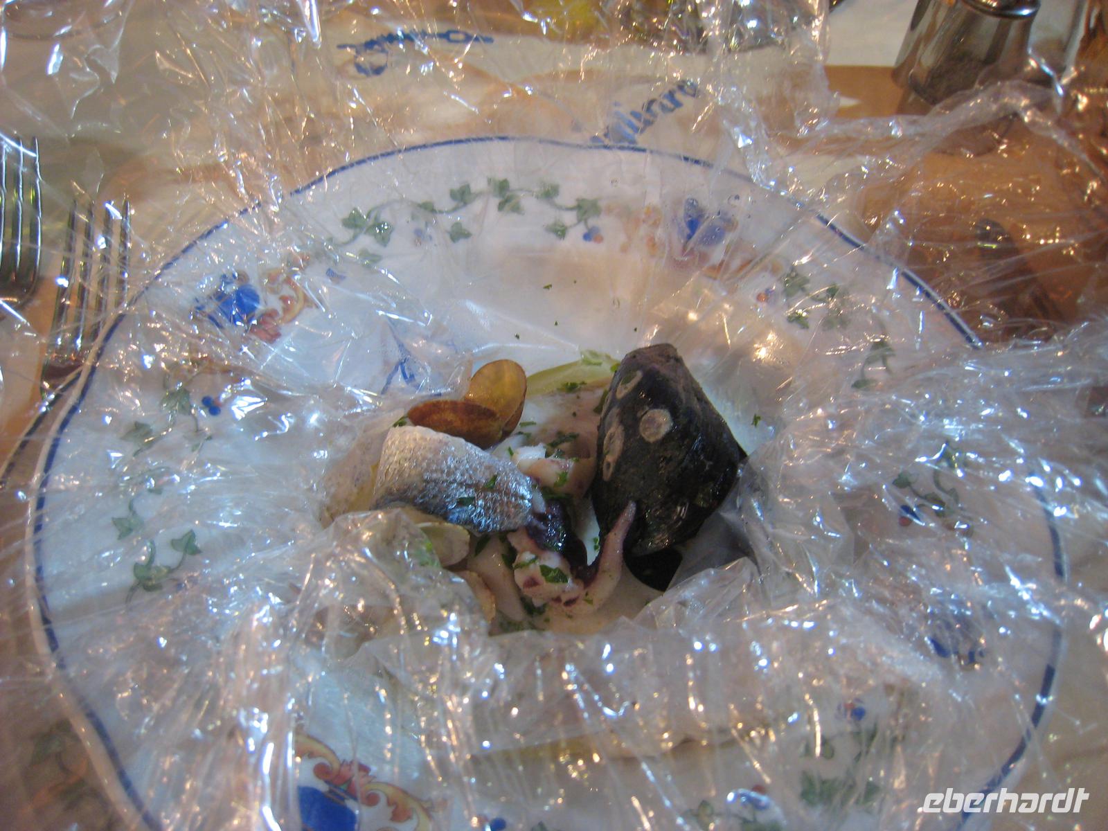 Frohen Mutes starteten wir mit unseren Regenschirmen zur Küstenfahrt. In S.Maria di Castellabate machten wir 2 Stunden Pause zum Shoppen, Kaffeetrinken usw und der Regen wollte nicht aufhören. Mit dem Bus fuhren hinauf nach Castellabate, um die Aussicht zu genießen. Inzwischen waren alle naß und so beschlossen wir, ein gemütliches, trockenes Plätzchen für das Mittagessen zu suchen. Wir fanden es in Acciarola am Meer und bekamen dort eine Auswahl an verschiedenen Speisen und Getränken zu einem äußerst günstigen Preis.
