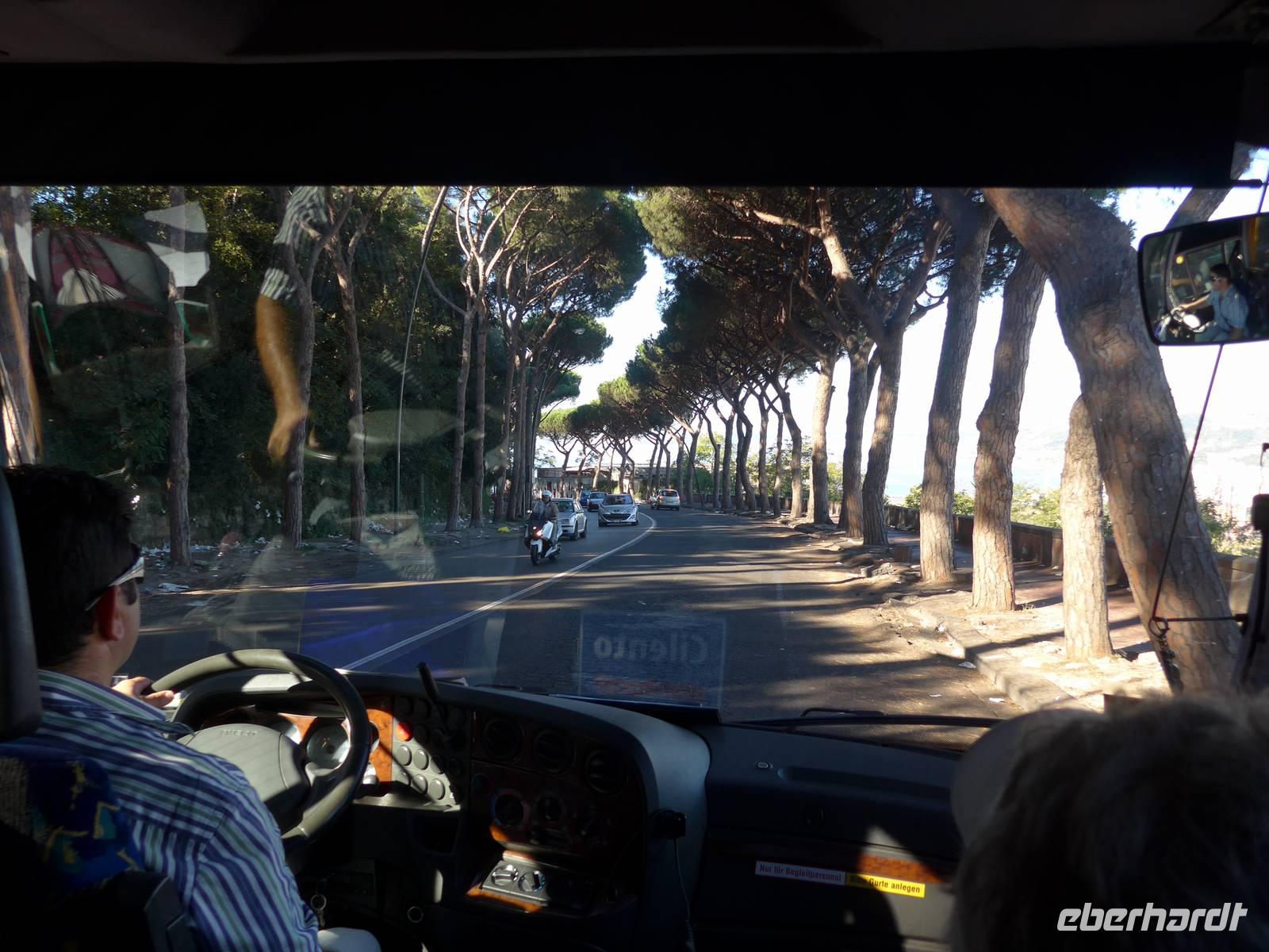 Gleich nach Mitternacht begann für viele die Abholung von zu Hause, denn 5 Uhr trafen wir uns bereits in Berlin Tegel. Alle waren pünktlich und das Einchecken bei Air Berlin ging zügig. Noch im Dunkeln bei einem tollen Mondschein bestiegen wir unser Flugzeug, das uns in 2 Stunden Flugzeit nach Neapel brachte. Dort empfing uns die Sonne und Ursula, unsere Reiseleiterin im Cilento. Sie rief unseren Bus mit Fahrer Antonio und hatte gleich eine Überraschung für uns.