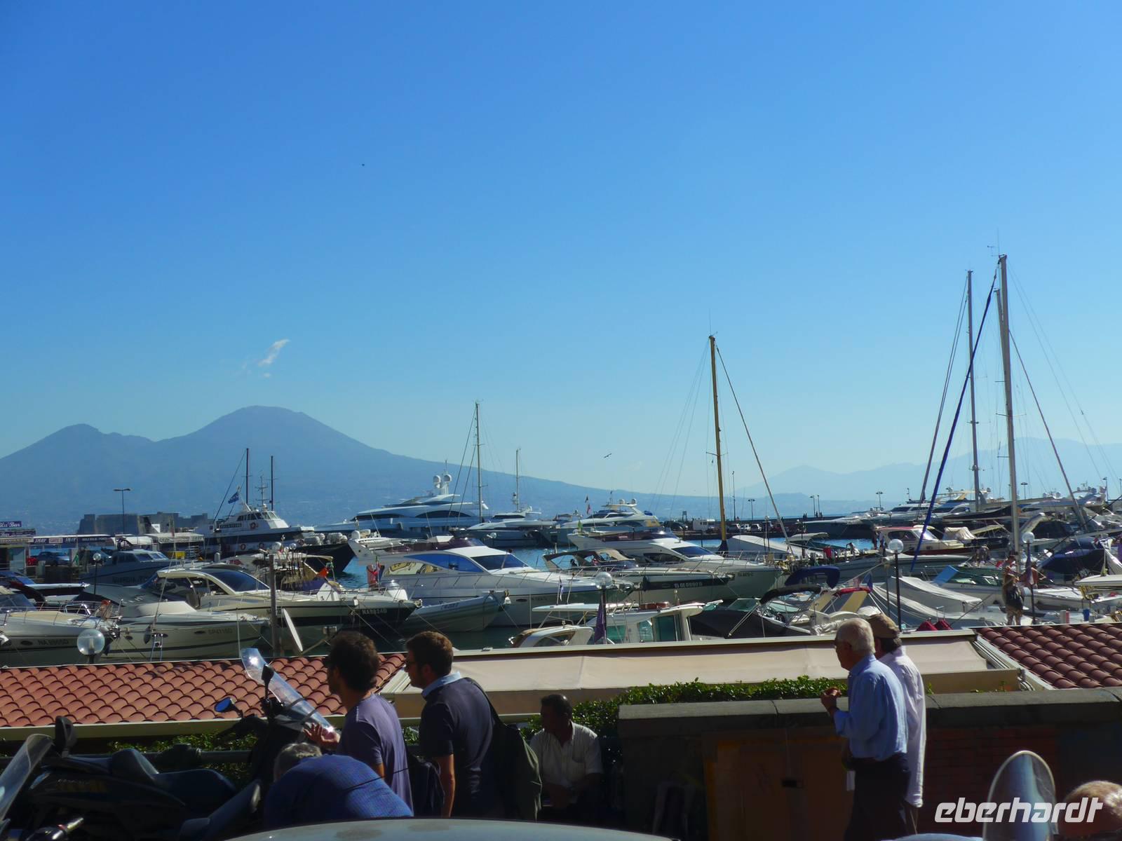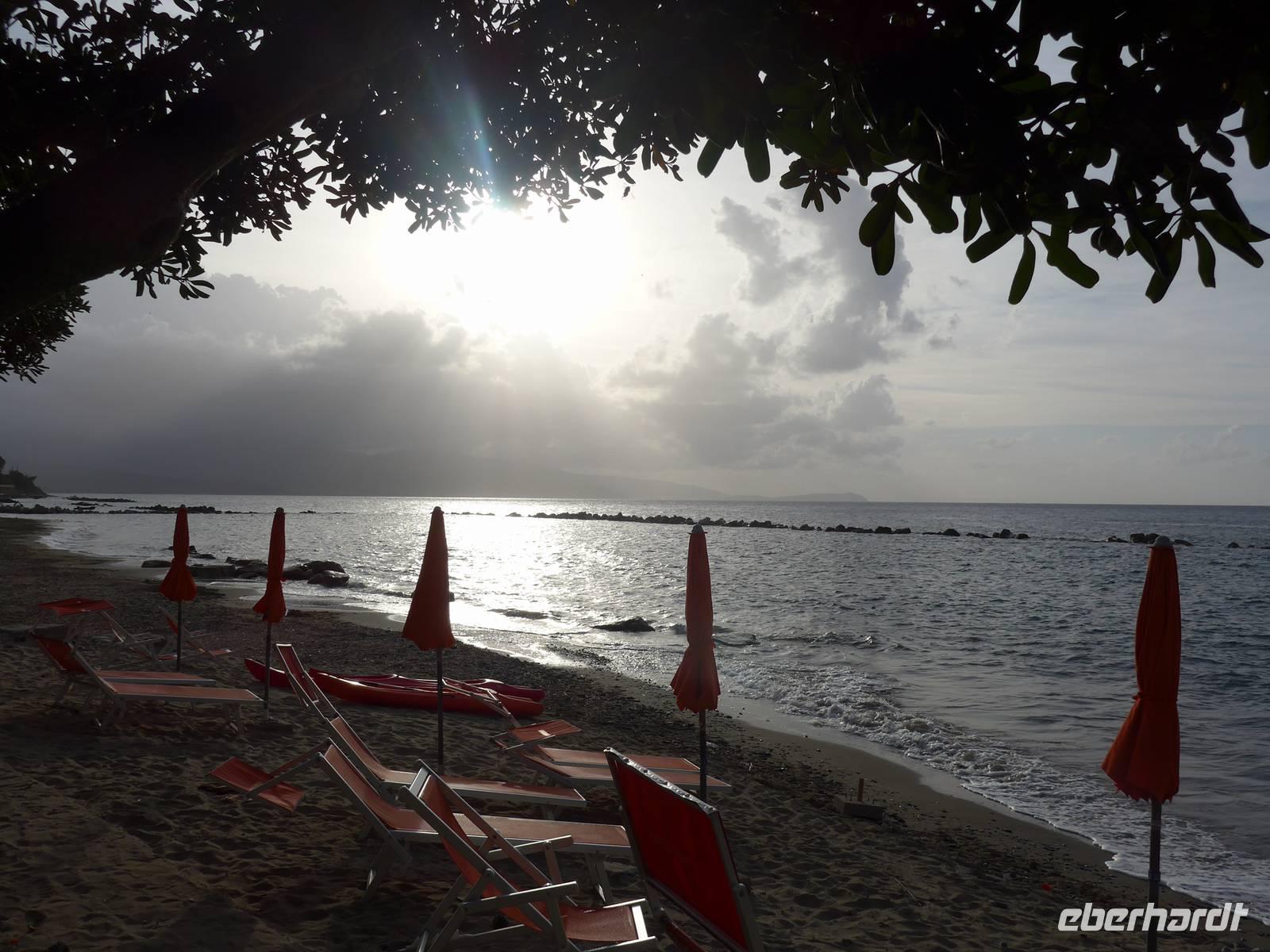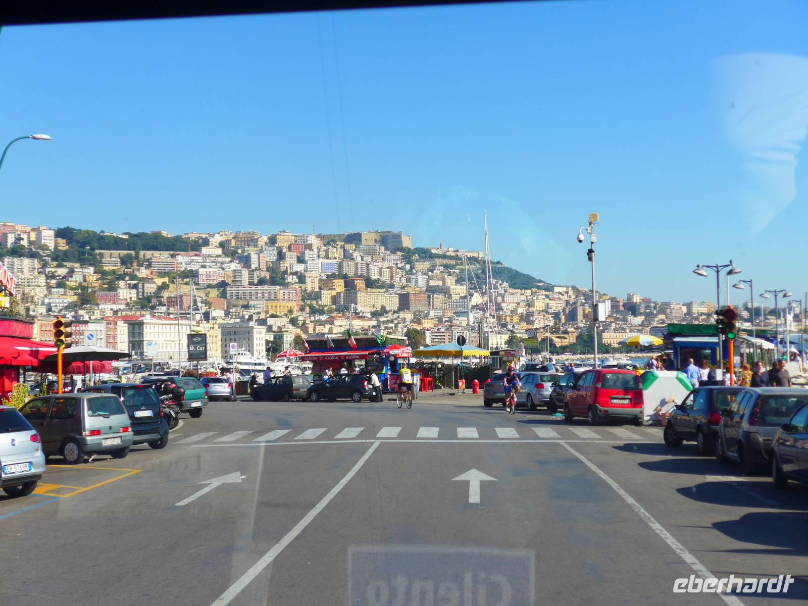 Es ging nach Neapel zu einer kurzen Stadtrundfahrt. Bei verschiedenen Fotostopps genossen wir die Ausblicke auf die Nachbarinseln Ischia, Procida, Capri und auf den Vesuv. Auf der Uferpromenade waren schon viele Menschen unterwegs. Dann ging es für uns auf der Autobahn weiter nach Salerno, wo wir am Hafen unsere Mittagspause machen wollten. Leider war das Zentrum gesperrt wegen eines Marathon-Laufs und so mußten wir wieder umdrehen und zur Autobahn zurück fahren. Unsere Pause fand nun auf einer Raststätte statt - leider. Eineinhalb Stunden fuhren wir dann noch auf einer aussichtsreichen Strasse bis zu unserem Hotel in Pioppi. Die Zimmer waren schnell verteilt, Badehandtücher organisiert und so nutzten wir den Nachmittag zum Baden und Sonnen am Strand. Der Urlaub konnte beginnen !