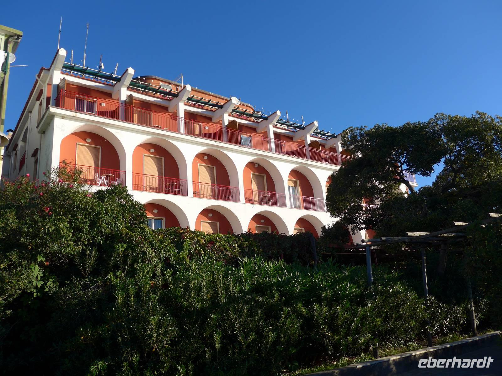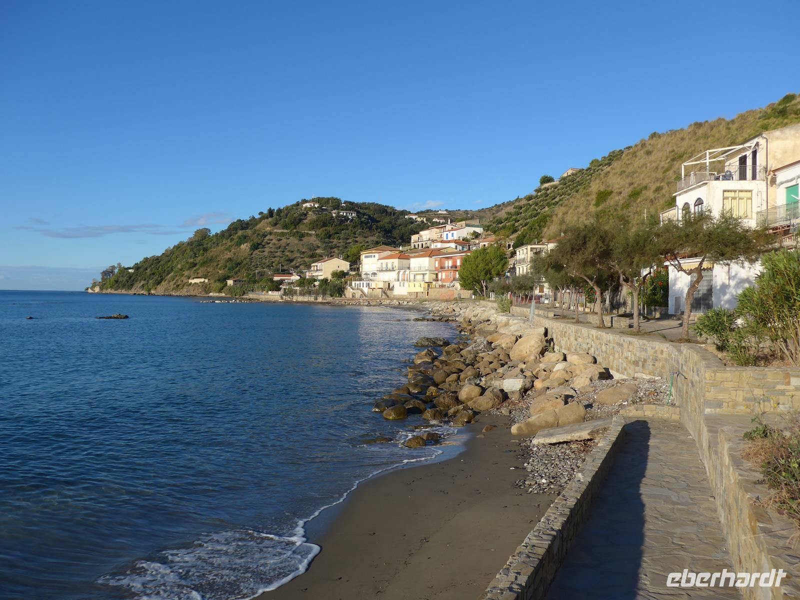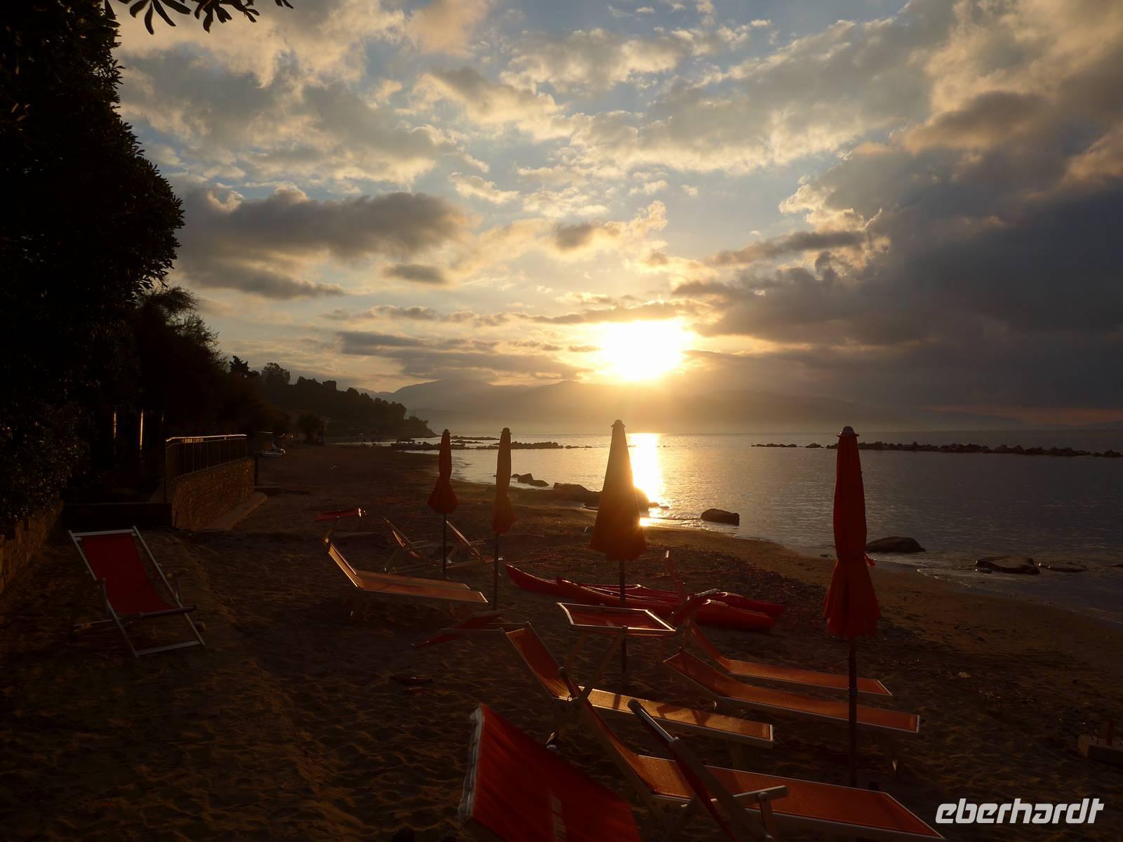 Es ging nach Neapel zu einer kurzen Stadtrundfahrt. Bei verschiedenen Fotostopps genossen wir die Ausblicke auf die Nachbarinseln Ischia, Procida, Capri und auf den Vesuv. Auf der Uferpromenade waren schon viele Menschen unterwegs. Dann ging es für uns auf der Autobahn weiter nach Salerno, wo wir am Hafen unsere Mittagspause machen wollten. Leider war das Zentrum gesperrt wegen eines Marathon-Laufs und so mußten wir wieder umdrehen und zur Autobahn zurück fahren. Unsere Pause fand nun auf einer Raststätte statt - leider. Eineinhalb Stunden fuhren wir dann noch auf einer aussichtsreichen Strasse bis zu unserem Hotel in Pioppi. Die Zimmer waren schnell verteilt, Badehandtücher organisiert und so nutzten wir den Nachmittag zum Baden und Sonnen am Strand. Der Urlaub konnte beginnen !