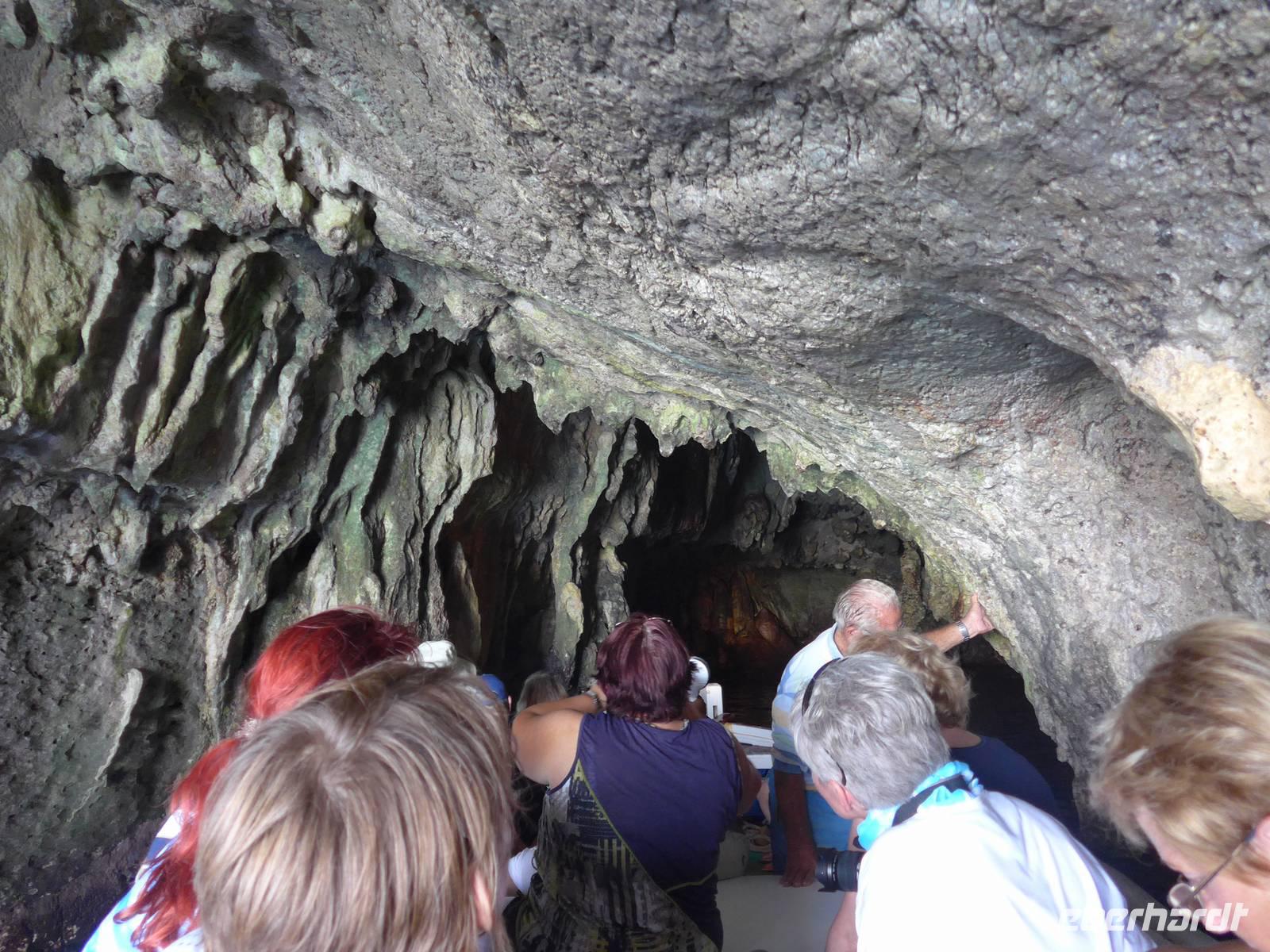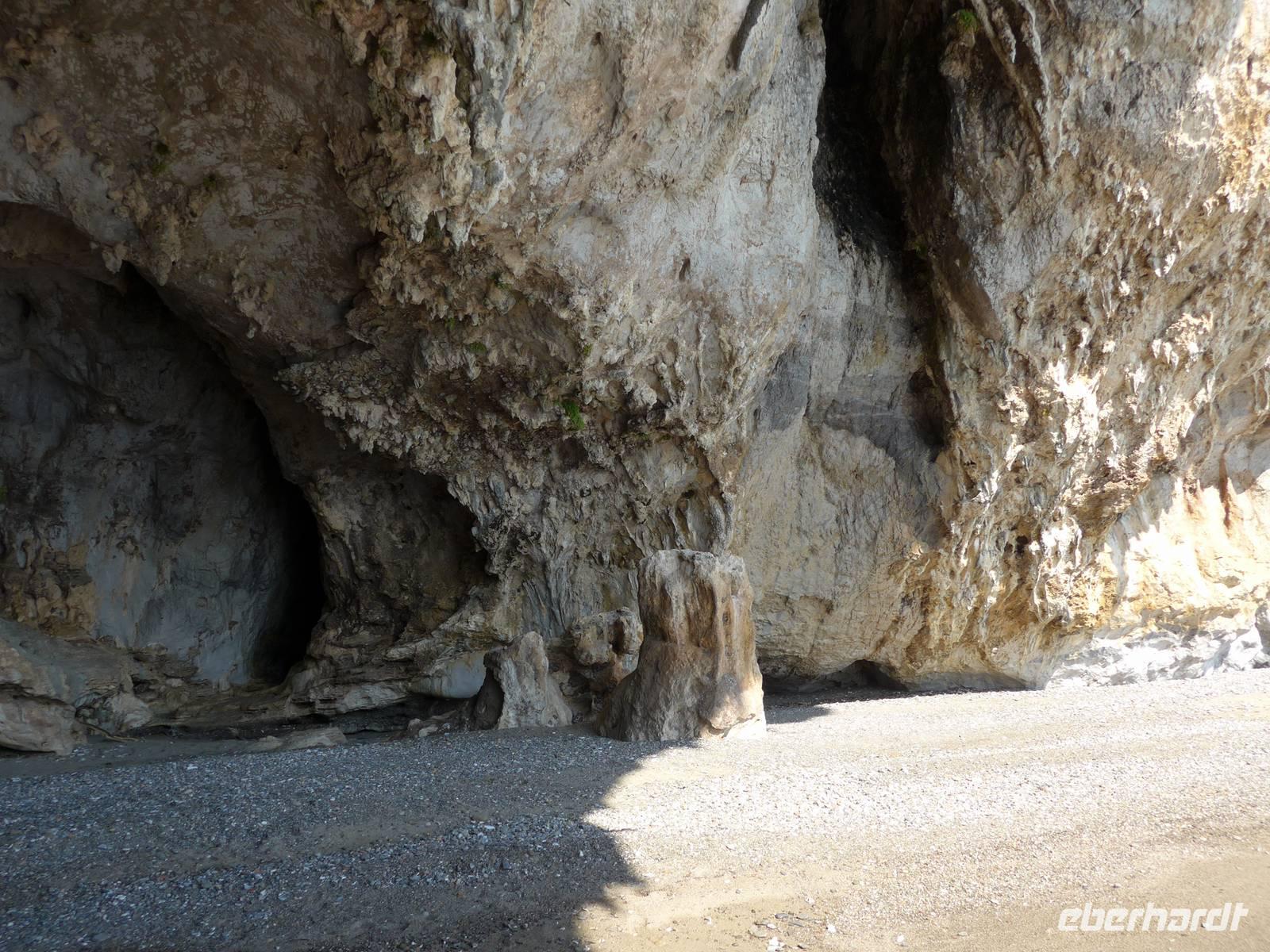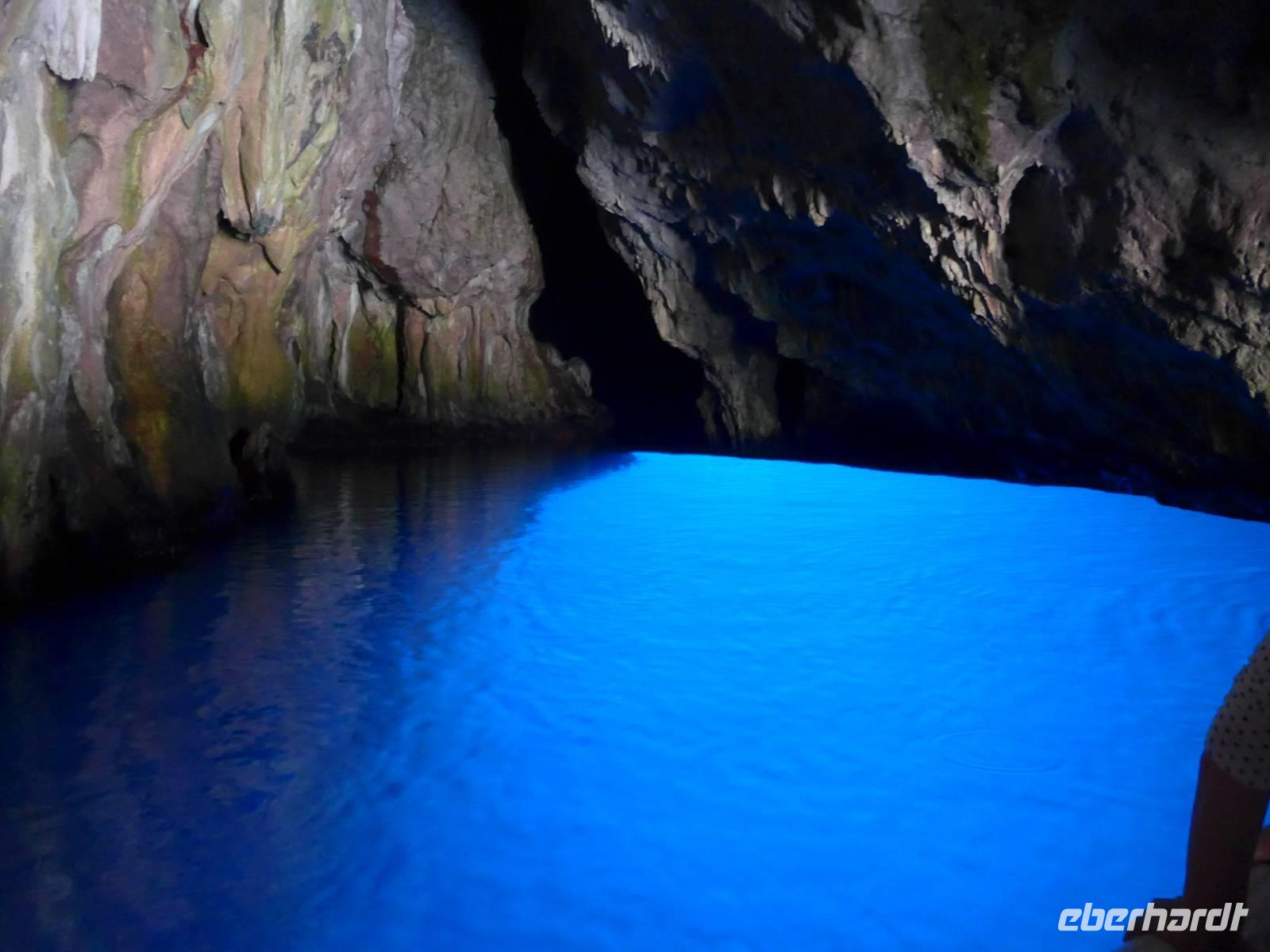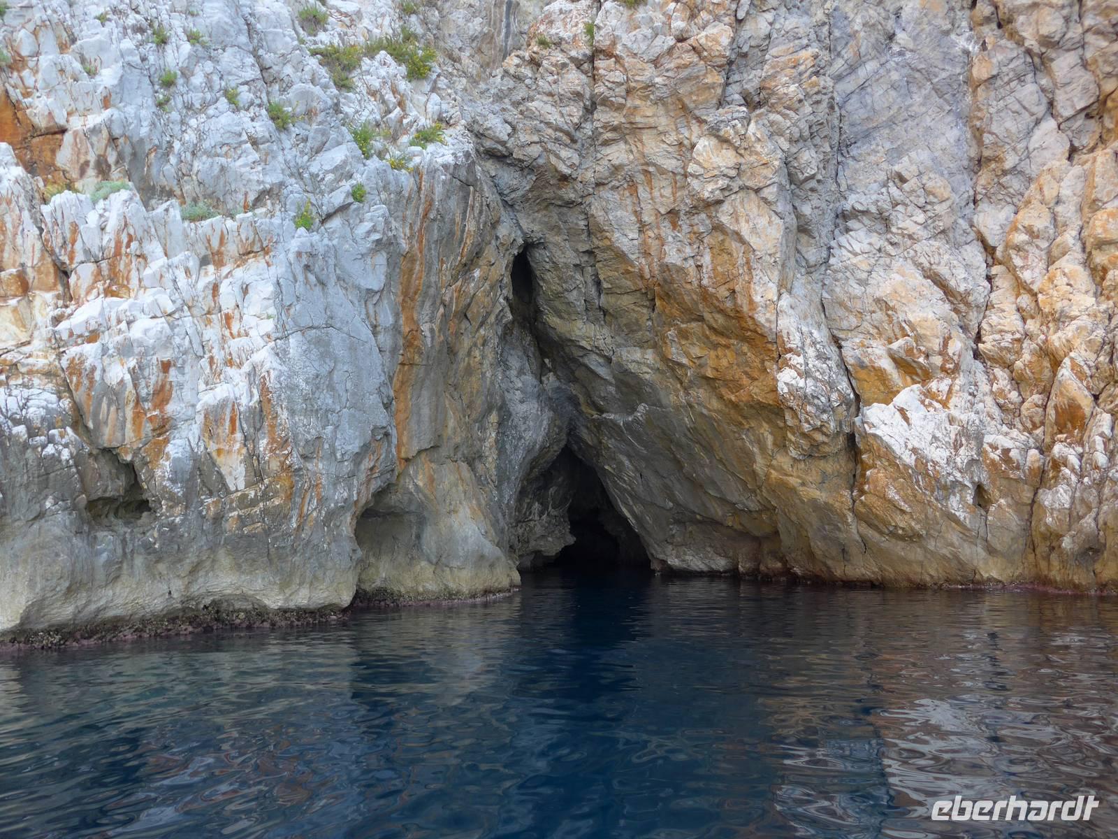 Es war tolles Wetter angesagt und so entschieden wir, gleich unseren Ausflug nach Palinuro zu machen. Auf der Fahrt dorthin hielten wir am Supermarkt, um Wasser zu kaufen. Dann nutzten wir die Schnellstraße bis San Severino und erkundeten dort, den Aufstieg in das alte nicht mehr bewohnte Dorf. Leider war die Treppe noch immer gesperrt und man konnte vermuten, daß sie gar nicht mehr hergerichtet werden soll. So fuhren wir durch die Mingardo-Schlucht, auch Teufelsschlund genannt, nach Palinuro. Ursula nahm unsere Menuewünsche für das Abendessen auf, denn Umberto kauft jeden Tag frisch ein und benutzt auch nur Frisches zum Kochen. Wir spazierten hinunter zum Strand und bestiegen ein Boot. Bei spiegelglatter See ging es nun hinaus aufs Meer, um das Kap von Palinuro. Es war traumhaft, warm und die Sonne kitzelte uns. Entlang der Steilküste gibt es viele Höhlen und wir fuhren zunächst in die Blutsgrotte, dann in die Silbergrotte - ganz was seltenes und wir konnten nicht glauben, daß unser Boot dort überhaupt hinein paßte. Weiter ging es in die Mönchsgrotte, Schwefelgrotte und bis zur Bucht des guten Schlafes. Zwischen Kaninchenfelsen und einer wunderschönen Badebucht hindurch gelangten wir zur Knochengrotte und zum Arco Naturale. Auf der Rückfahrt wartete der Höhepunkt der Bootsfahrt - die blaue Grotte. Sie war unbeschreiblich schön mit dem intensiv blauen Wasser. Gut und sicher brachte uns das Boot zum Strand zurück, wo wir unser vom Hotel vorbereitetes Picknick einnahmen. Das Programm des Tages war erfüllt, wir aber bei dem schönen Wetter noch voller Tatendrang.