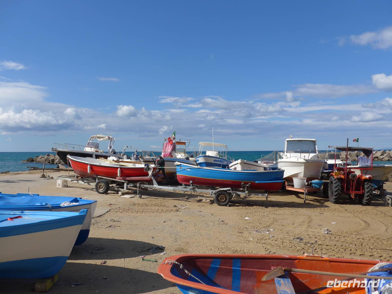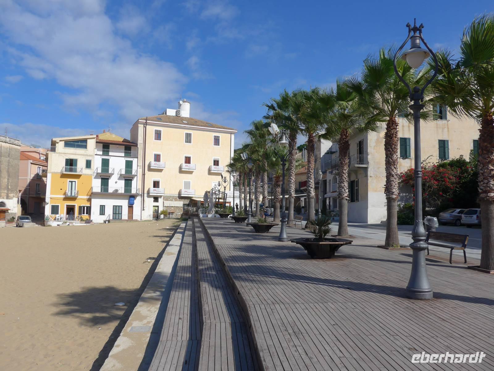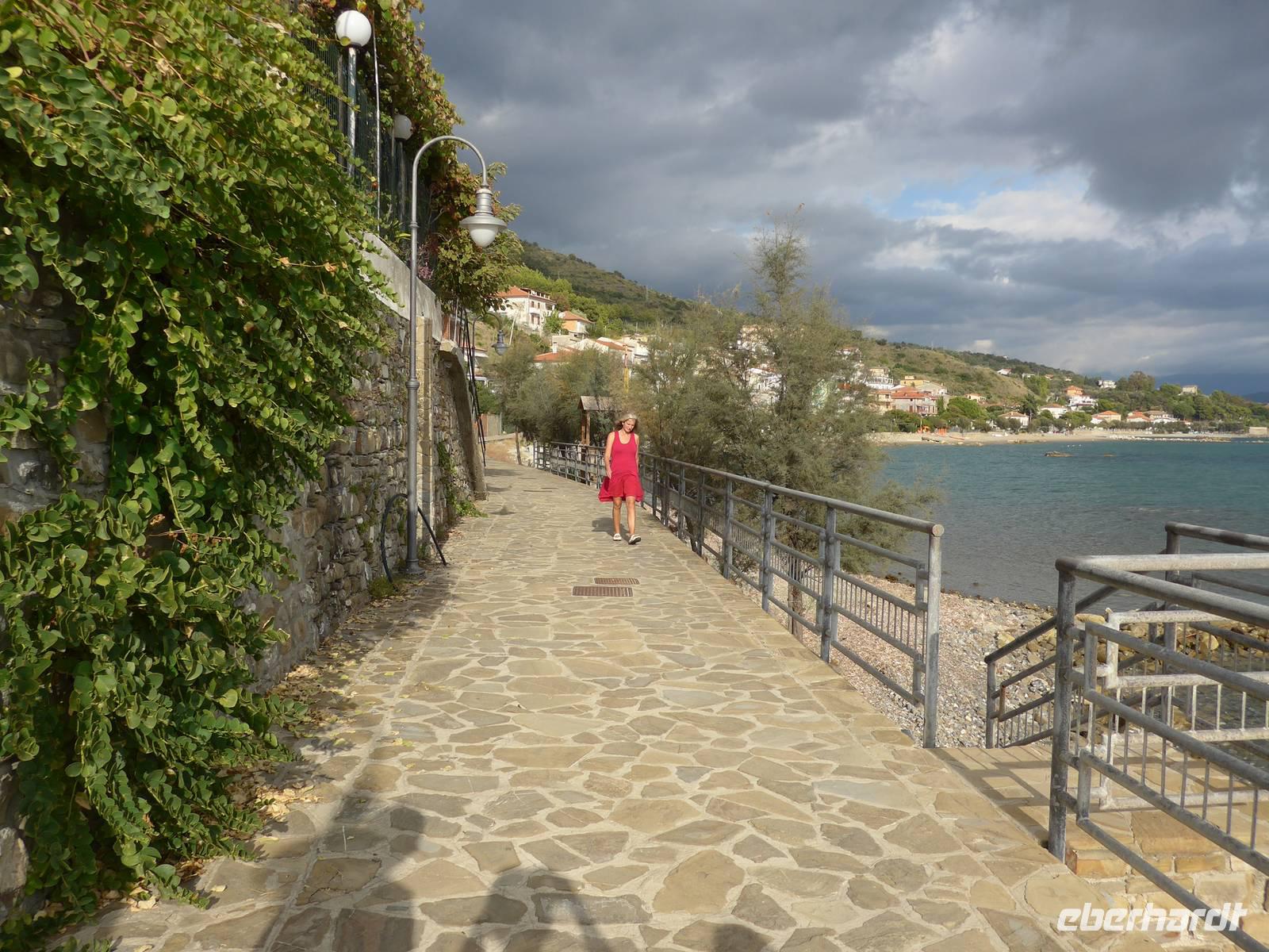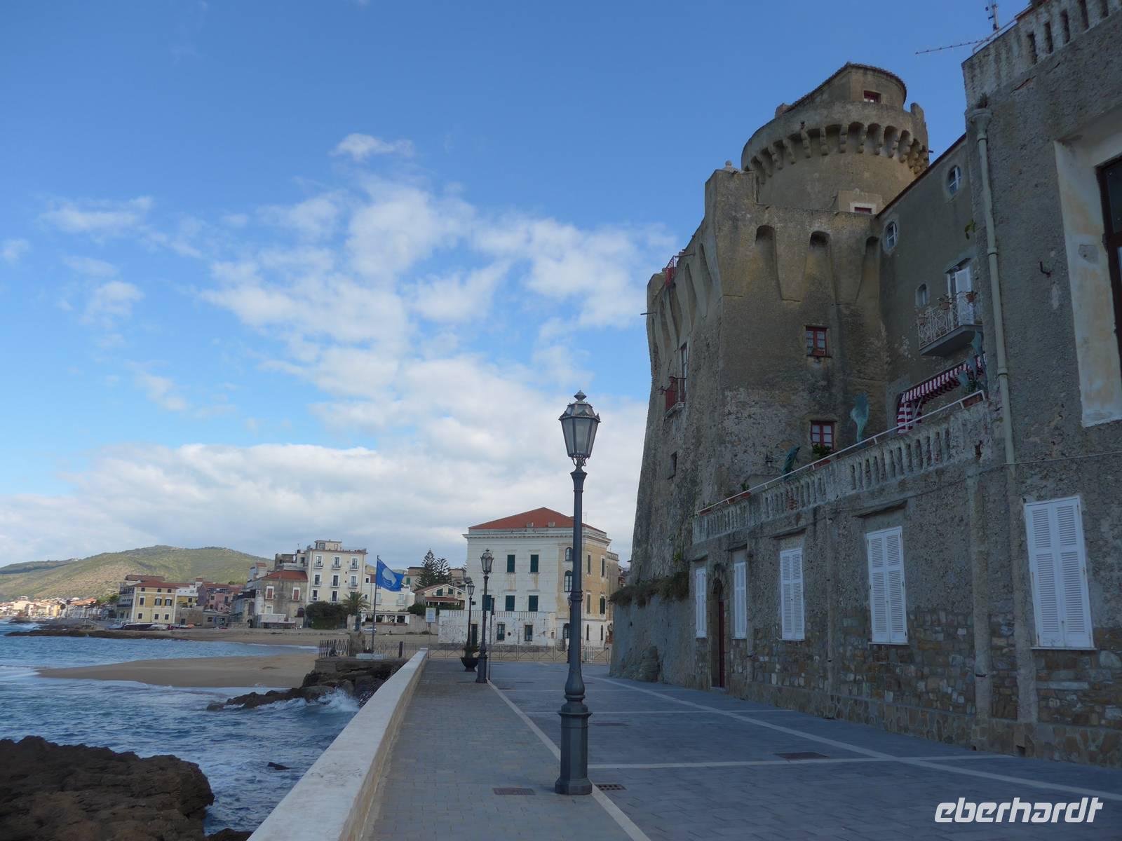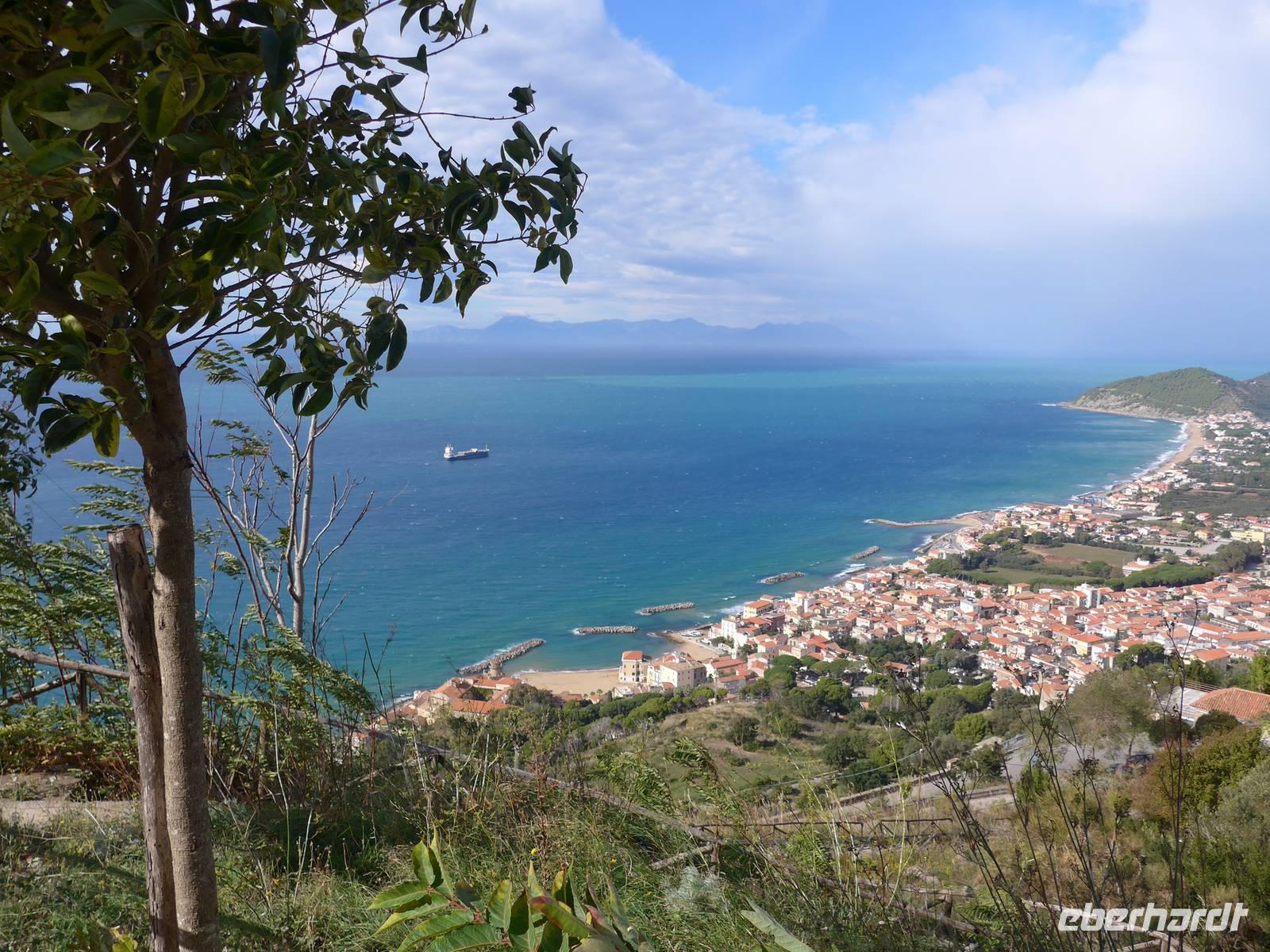Gleich am Morgen fuhren wir nach Casal Velino zum Wochenmarkt. Bauern der Region boten dort ihre Produkte an, Fleisch/Wurst- und Käsegeschäfte waren mit Ständen vertreten und Kleidung gab es in Hülle und Fülle. Wir kamen gleich mit den Bauern ins Gespräch und kauften für zu Hause ein. Dann fuhren wir nach Agropoli und weiter auf der Küstenstraße nach Santa Maria di Castellabate. Dort machten wir für 2 Stunden Pause. Traumhaftes Wetter mit Sonne und guter Fernsicht ließen uns den Ort genießen. Fast 300 Meter über dem Meer liegt Castellabate, das mittelalterliche Juwel. Von da oben war die Sicht noch grandioser. Mit Ursula spazierten wir durch den Ort, Schauplatz des Films "Willkommen im Süden", der den Ort noch berühmter machte. Vorbei an der Kirche durch zahlreiche enge Gassen stiegen wir nach unten, wo es nochmals einen Aussichtsplatz gibt. Unser Bus brachte uns wieder hinunter auf die Küstenstrasse und vorbei an San Marco nach Acciaroli. Die Sonne hatte die Luft gut erwärmt und so gingen wir gemütlich über die Hafenmole und durch die Gassen der Stadt mit Endziel Eiscafe. In der Sonne sitzend ließen wir den herrlichen Ausflug ausklingen. Die Ruhe der Nachsaison hat einen besonderen Charme und so wären wir gern noch etwas länger dort sitzen geblieben. Aber wir wollten ja noch das Mittelmeermuseum besuchen. Unser kleiner, wendiger Bus konnte uns direkt am Cafe abholen und wir fuhren auf der Küstenstrasse direkt am Meer zurück nach Pioppi.