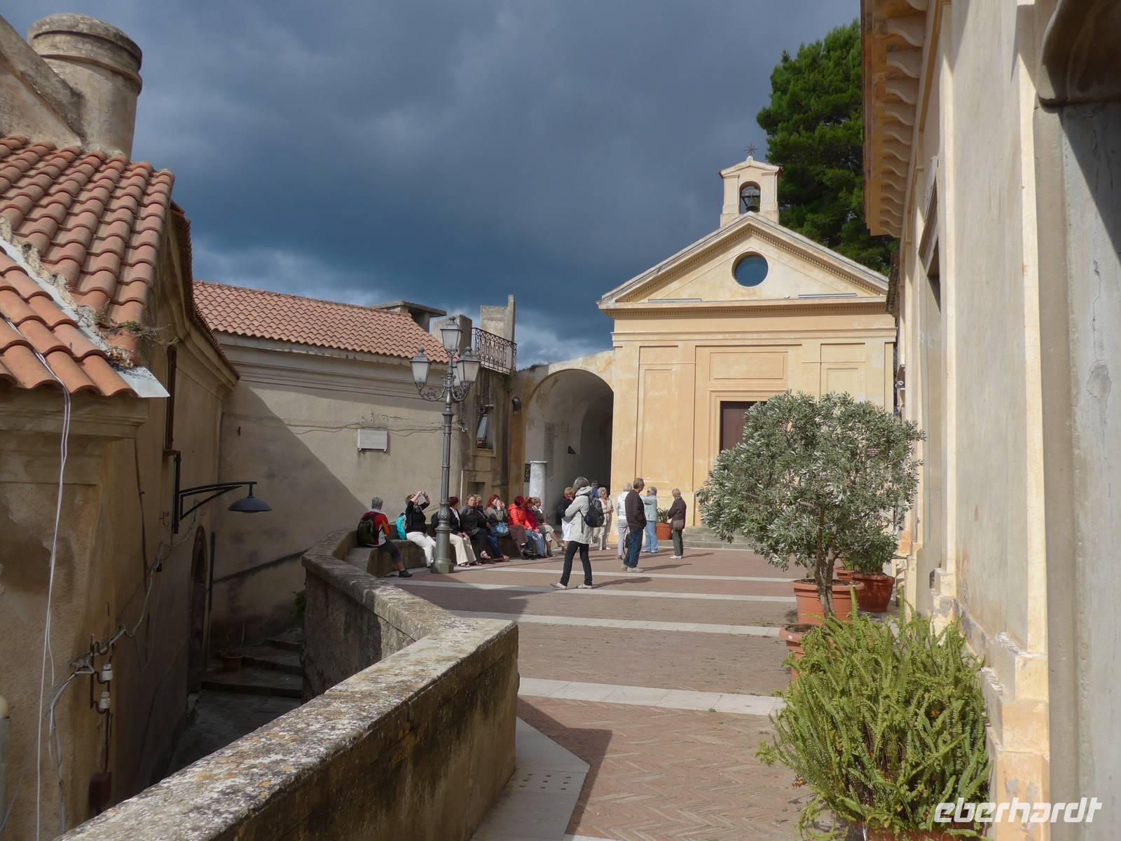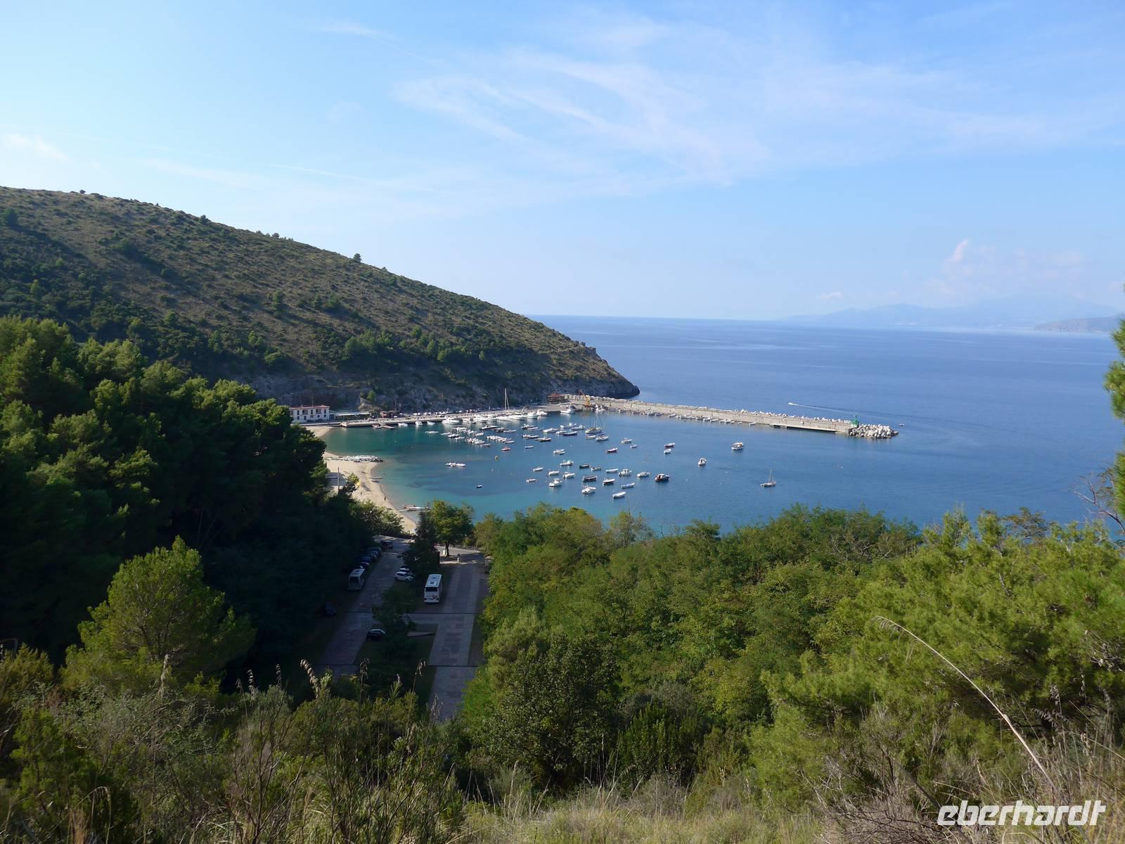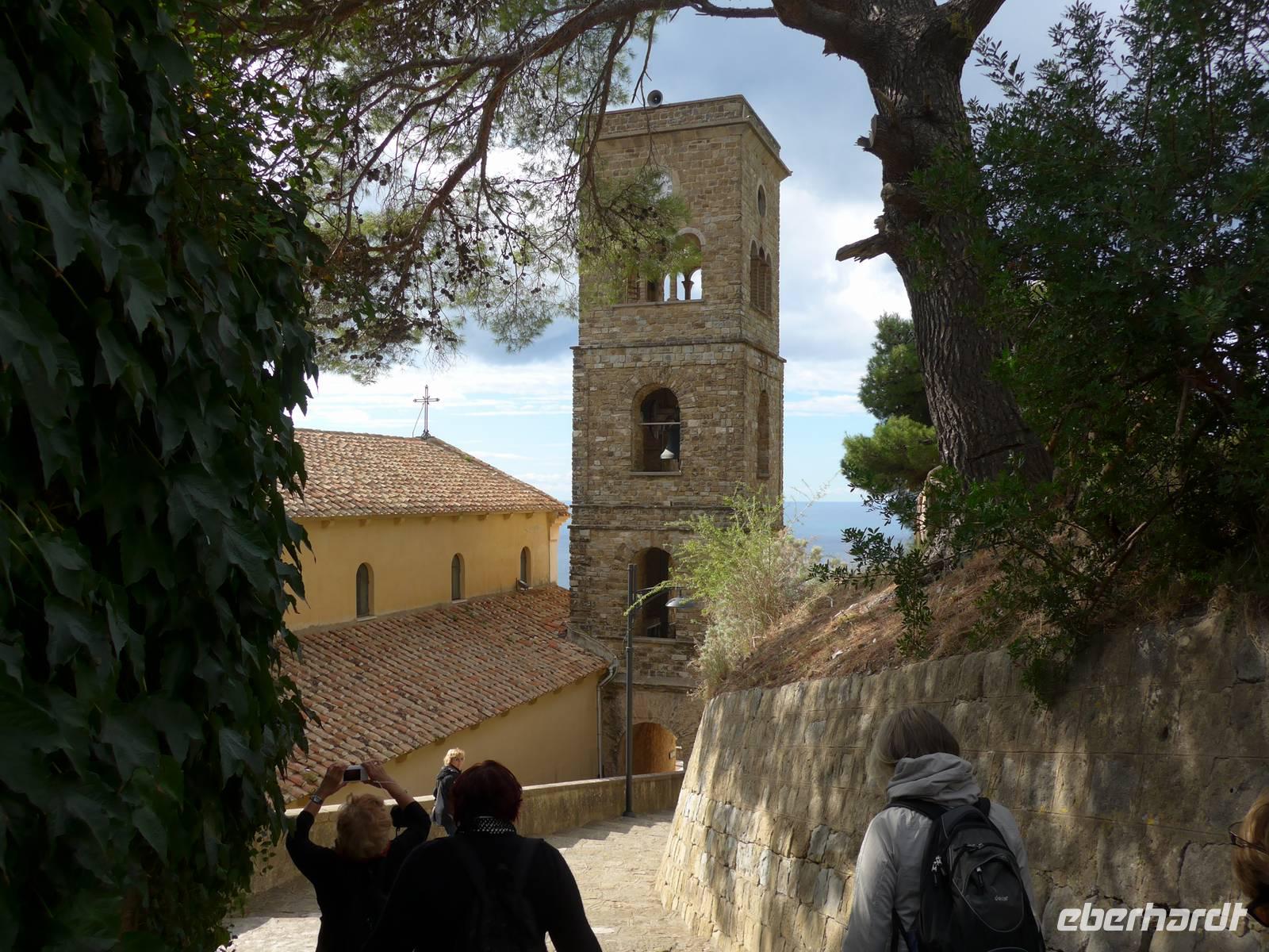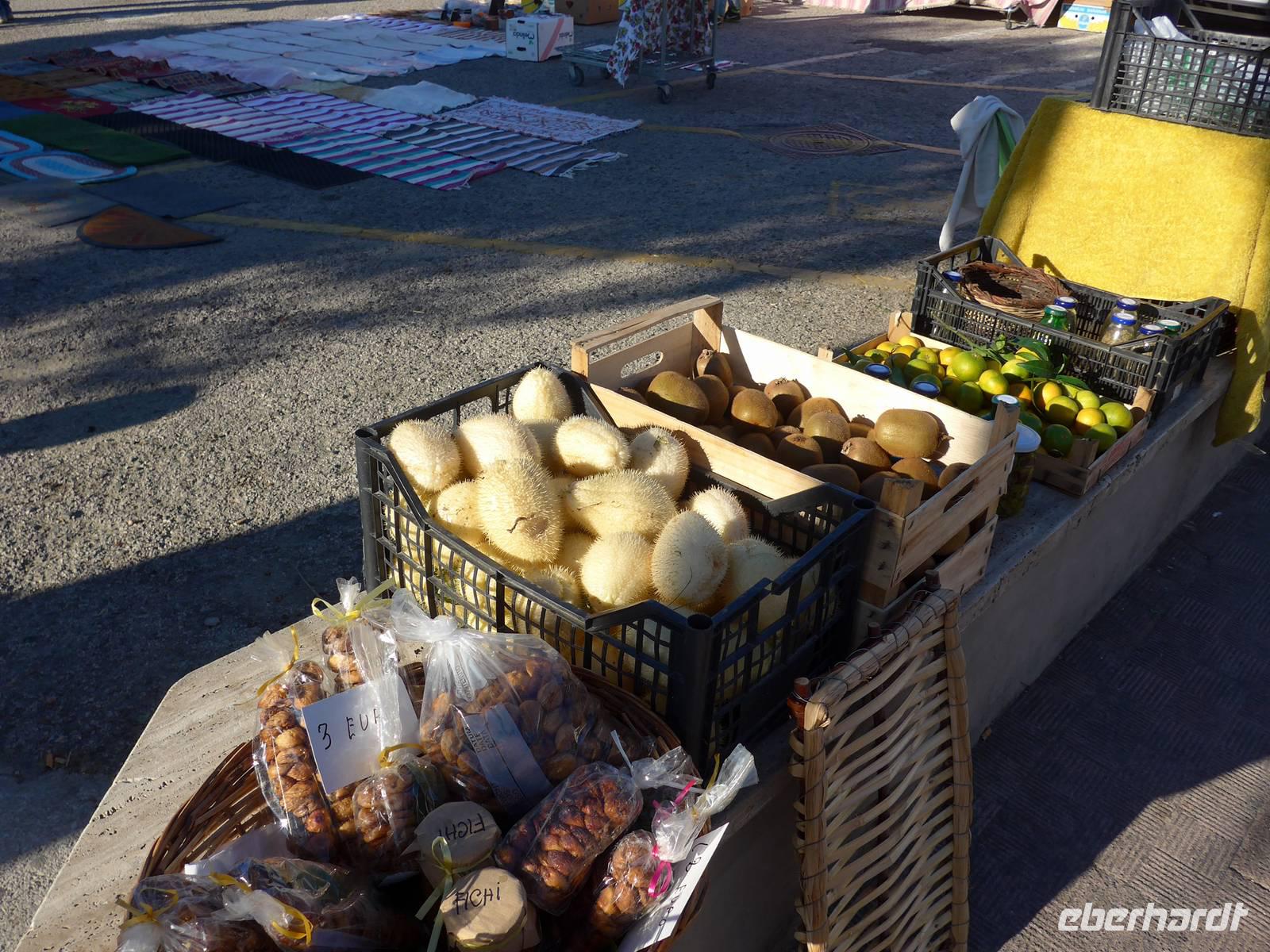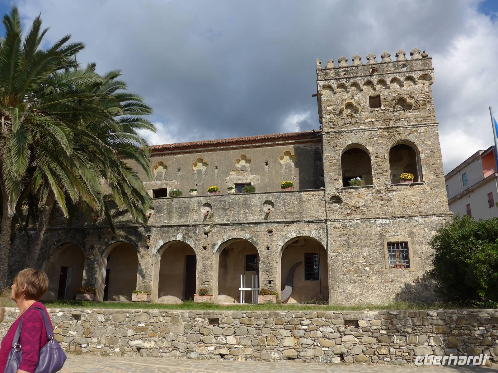 Gleich am Morgen fuhren wir nach Casal Velino zum Wochenmarkt. Bauern der Region boten dort ihre Produkte an, Fleisch/Wurst- und Käsegeschäfte waren mit Ständen vertreten und Kleidung gab es in Hülle und Fülle. Wir kamen gleich mit den Bauern ins Gespräch und kauften für zu Hause ein. Dann fuhren wir nach Agropoli und weiter auf der Küstenstraße nach Santa Maria di Castellabate. Dort machten wir für 2 Stunden Pause. Traumhaftes Wetter mit Sonne und guter Fernsicht ließen uns den Ort genießen. Fast 300 Meter über dem Meer liegt Castellabate, das mittelalterliche Juwel. Von da oben war die Sicht noch grandioser. Mit Ursula spazierten wir durch den Ort, Schauplatz des Films "Willkommen im Süden", der den Ort noch berühmter machte. Vorbei an der Kirche durch zahlreiche enge Gassen stiegen wir nach unten, wo es nochmals einen Aussichtsplatz gibt. Unser Bus brachte uns wieder hinunter auf die Küstenstrasse und vorbei an San Marco nach Acciaroli. Die Sonne hatte die Luft gut erwärmt und so gingen wir gemütlich über die Hafenmole und durch die Gassen der Stadt mit Endziel Eiscafe. In der Sonne sitzend ließen wir den herrlichen Ausflug ausklingen. Die Ruhe der Nachsaison hat einen besonderen Charme und so wären wir gern noch etwas länger dort sitzen geblieben. Aber wir wollten ja noch das Mittelmeermuseum besuchen. Unser kleiner, wendiger Bus konnte uns direkt am Cafe abholen und wir fuhren auf der Küstenstrasse direkt am Meer zurück nach Pioppi.