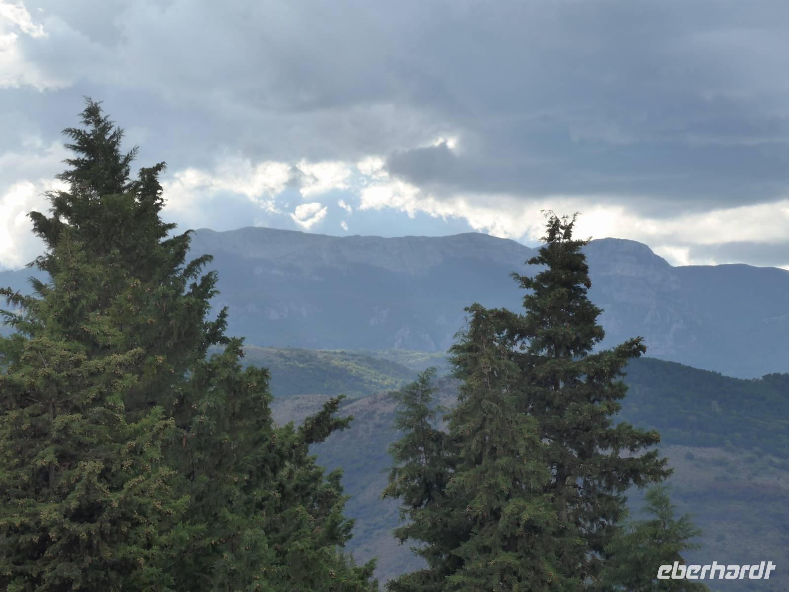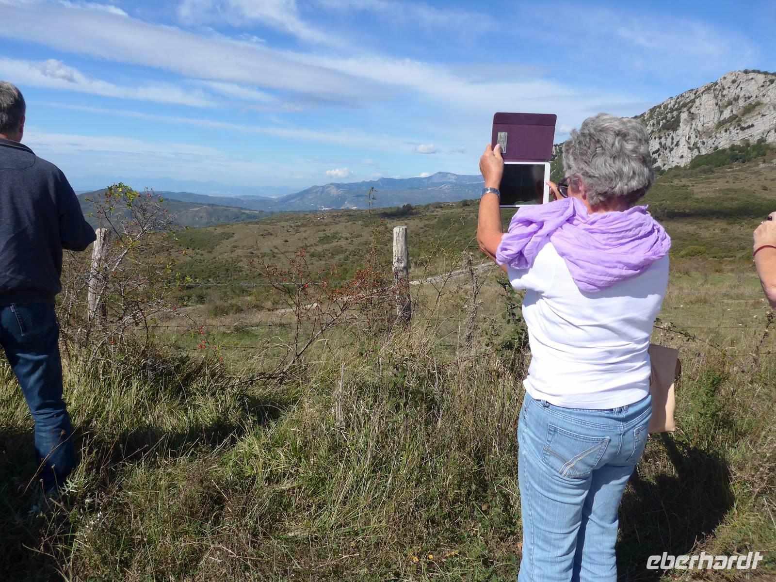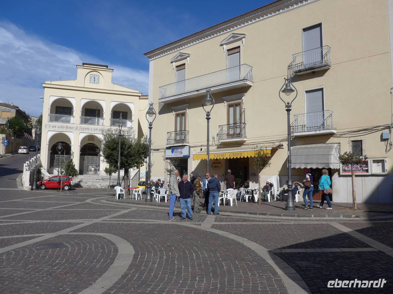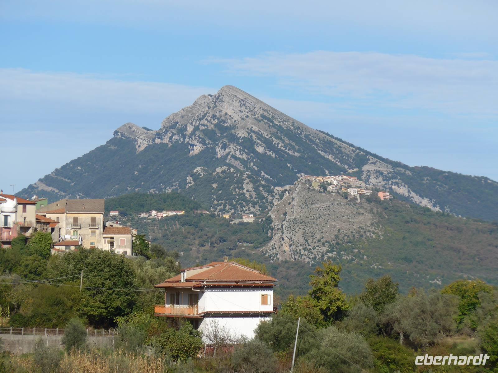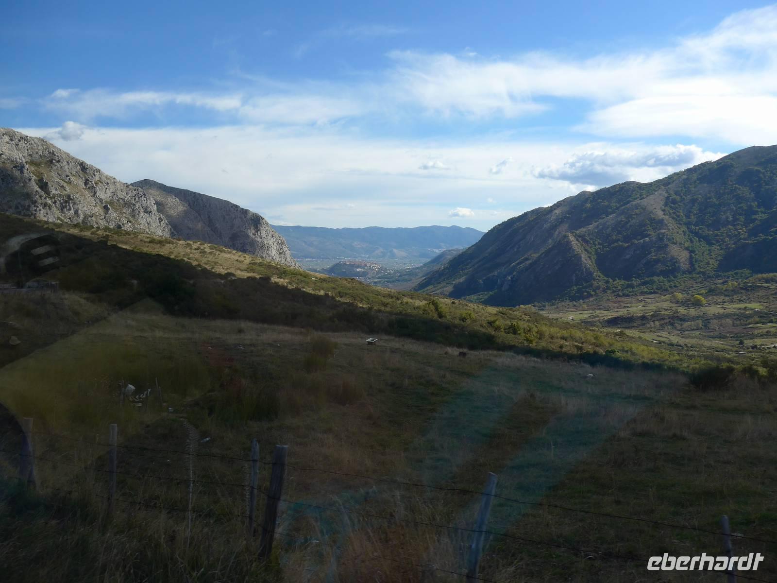 Der Weg nach Padula am anderen Ende des Cilento-National-Parks führte uns wieder durch die Bergwelt des Cilento. Die Luft war klar, die Sonne schien, nur ein wenig kühler als an den Vortagen war es. Unsere erste Pause machten wir im Grünen in der Nähe von Campora mit tollem Blick hinauf zum Bergdorf Magliano Nuovo. Die Strasse ging ständig bergauf und oben in Piaggine hielten wir zur WC- und Kaffeepause. Danach ging es immer noch weiter hinauf zum Paß mit Ausblicken bis zum Golf von Salerno und zur Amalfiküste. Wir stiegen aus und ich spendierte einen Limoncello und Hochzeitsgebäck aus dem Cilento. Und natürlich hielten wir alles in einem Gruppenfoto fest. Die Landschaft da oben ganz in der Nähe des höchten Berges des Cilento war traumhaft und nur ungern stiegen wir wieder in unseren Bus. Nach kurzer Fahrt über eine Hochebene tat sich der Blick auf hinunter in das Diano-Tal mit unserem Ziel Padula. Wir kamen an der Bischofsstadt Teggiano mit 11 Kirchen oben am Hügel vorbei und querten das Diano-Tal. Am Parkplatz der Kartause nahmen wir einen kleinen Mittagsimbiß und spazierten dann hinauf zur Kartause.
