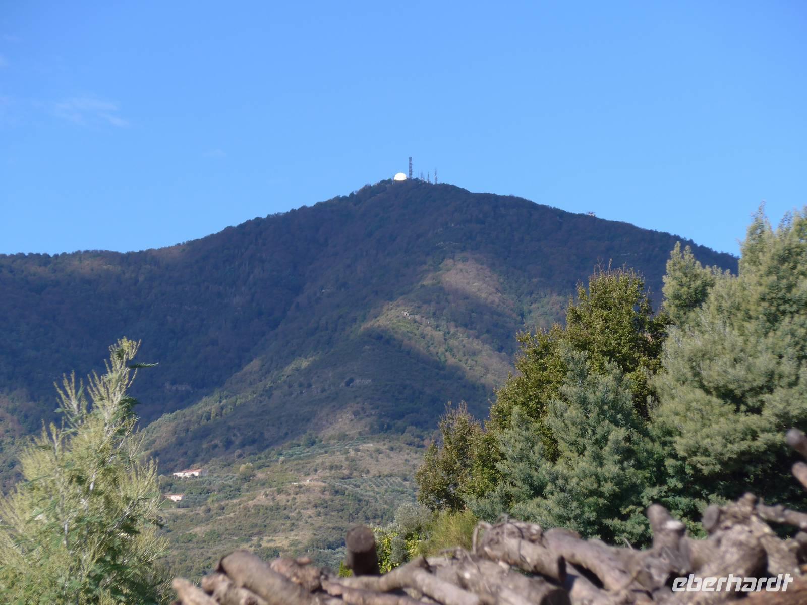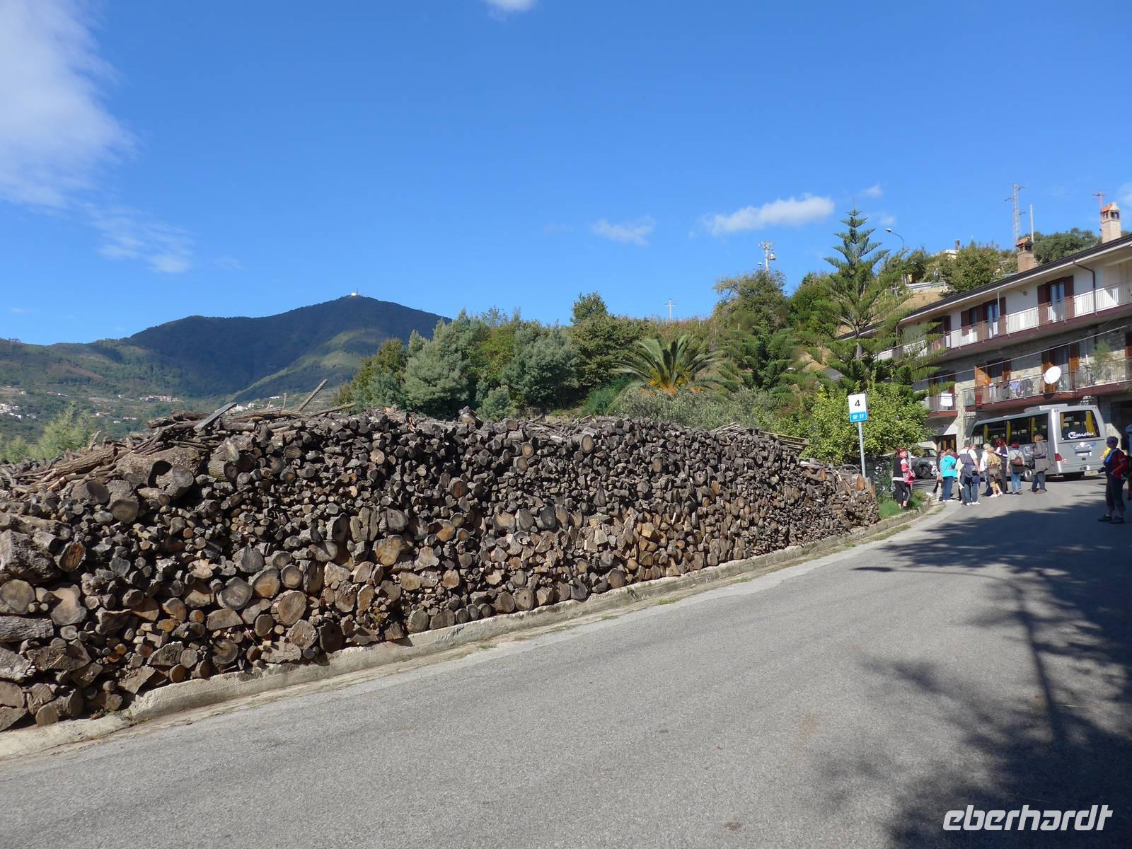 Ein kleiner, wendiger Bus hat große Vorteile. Er brachte uns auf sehr schmalen und steilen Straßen immer bergan, durch Kastanienhaine bis auf eine Höhe von 1130 Meter. Der Monte Stella ist ein allein stehender Berg nahe der Küste und so hatten wir von oben einen grandiosen Ausblick in alle Richtungen. Während alle die Aussicht genossen, richteten Maura, Ria und Fahrer Massimo das Picknick her. Ein langer Holztisch wurde gedeckt und es gab Tomatensalat mit Zwiebeln und vielen Gewürzen, Mozarella und Brot. Der zweiten Gang war ein Auflauf bestehend aus Aubergine, Tomatensose und Schafskäse. Wir hatten den Gipfel des Monte Stella fast für uns allein, machten nochmals ein Gruppenfoto und verabschiedeten uns von Massimo, unserem Fahrer der letzetn 6 Tage. Die Rückfahrt zum Hotel dauerte eineinhalb Stunden und bescherte uns zum Abschied nochmals herrliche Aussichten auf den Cilento bei Sonnenschein. Den restlichen Nachmittag nutzten wir nochmals für ein Bad im Meer, zum Kofferpacken und für einen Spaziergang auf der Strandpromenade. Jeder bkam seine Flasche Olivenöl und die bestellten und handsignierten Kochbücher wurden ausgegeben. Am Abend feierte man in Pioppi das Alici-Fest und so wurden Stände aufgebaut und Holz für ein Lagerfeuer aufgetürmt.