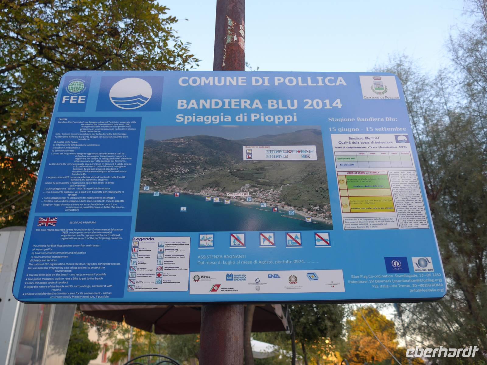 Unser Urlaubsort Pioppi hat 300 Einwohner, eine Strandpromenade und ist 2014 wieder mit dem Blauen Band für besonders sauberes Meerwasser ausgezeichnet worden. Im Ortszentrum steht der Palazzo Vinciprova aus dem 17. Jahrhundert. In diesem Palast ist das Mittelmeermuseum mit Aquarien im Erdgeschoß und einer Ausstellung zur Mittelmeerdiät im Obergeschoß untergebracht. Wir spazierten gemütlich über die Strandpromenade dorthin. Ursula zeigte uns in einem offenen Becken im Museum die Tiere, die wir beim Schwimmen im Meer sehen können. In den Aquarien bestaunten wir einen Octopus, Seeanemonen, Krebse und verschiedene Fische. Nach dem Besuch der Austellung zur Mittelmeerdiät und dem Wirken von Ancel Keys bedankten wir uns bei Ursula und verabschiedeten uns von ihr.