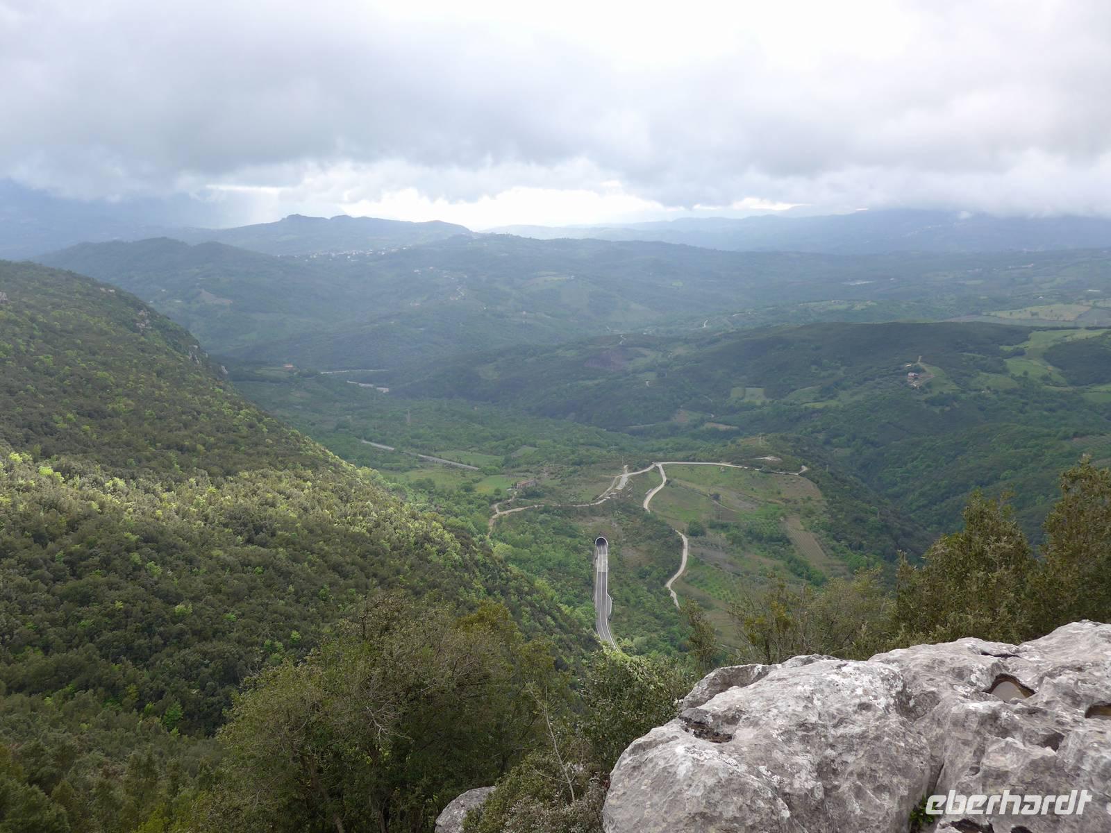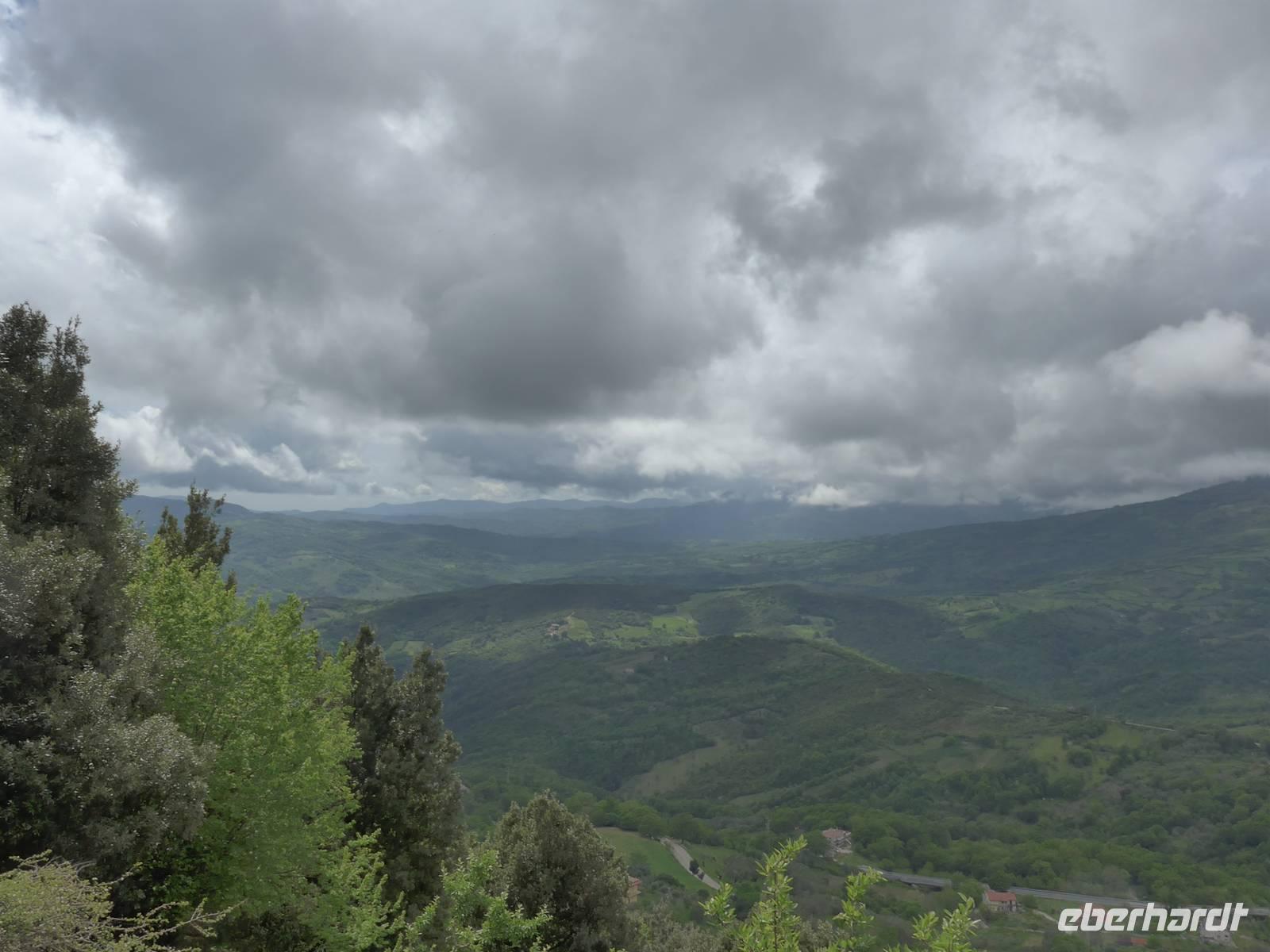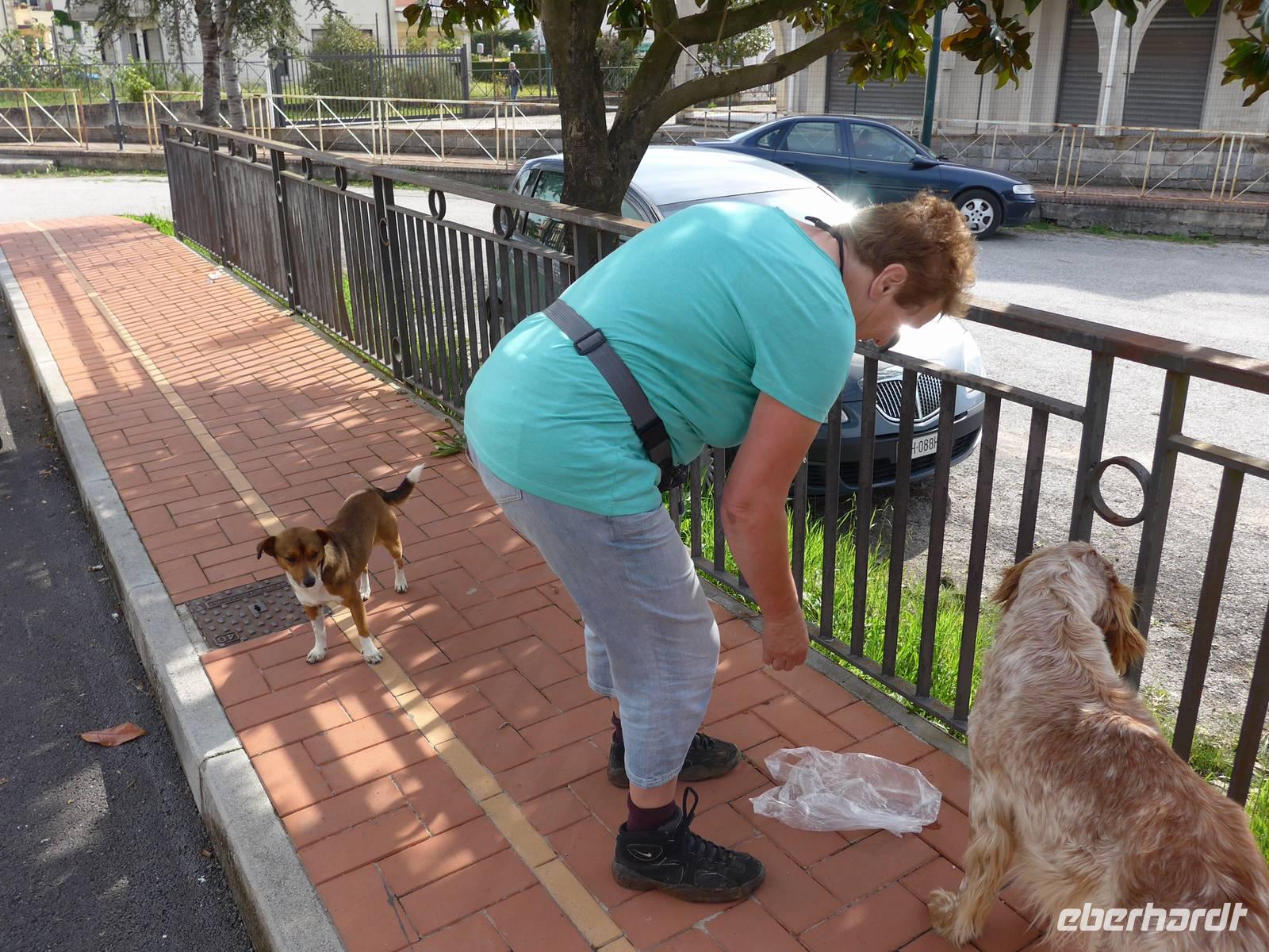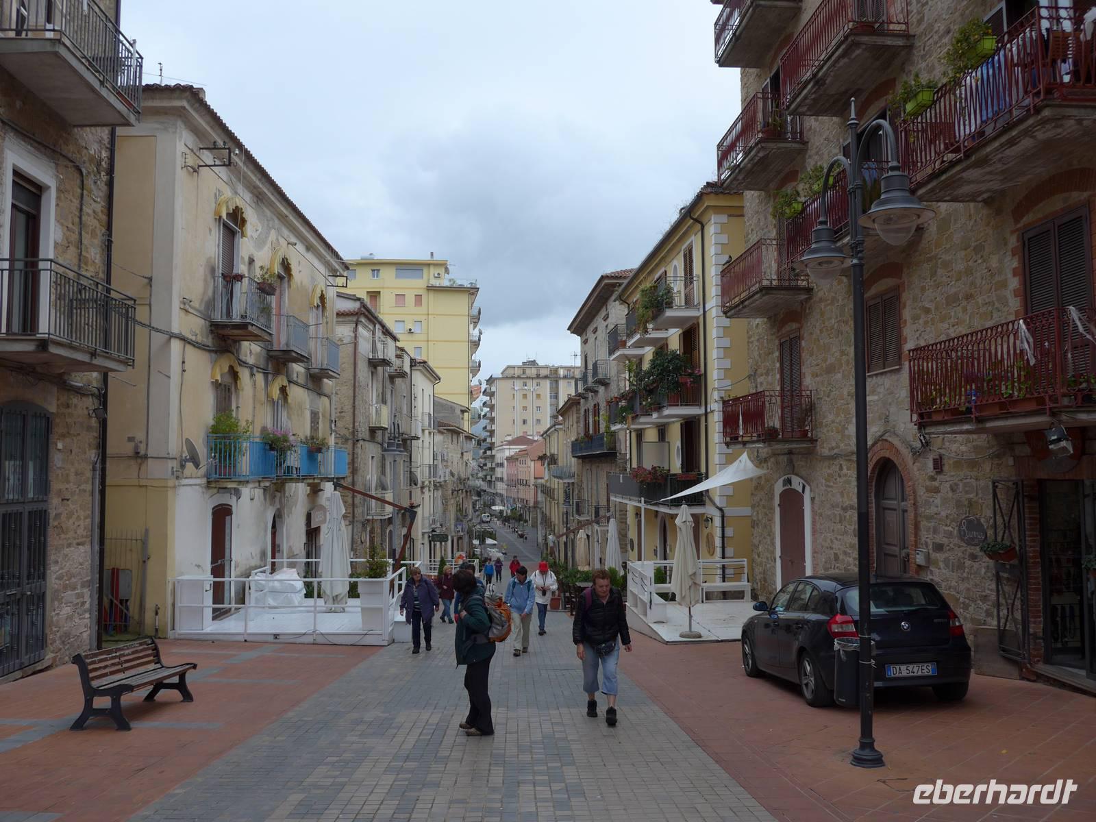 Vor unserer Abfahrt besuchten wir kurz den Fischladen gegenüber unserem Hotes. 1-2mal am Tag liefern die Fischer des Ortes frischen Fisch und was nicht verkauft wird, geht auf den Großmarkt nach Salerno. Unsere Fahrt nach Padula führte bei starkem Regen über die Schnellstrasse bis nach Sapri und weiter im Dianotal nach Padula. Dort war schon viel los als wir ankamen, weil am 1.Mai der Eintritt in die Kartause frei war. Nach kurzer Wartezeit durften wir hinein und Ursula machte mit uns eine ausführliche 2-stündige Führung. Der riesige Gebäudekomplex war beeindruckend, obwohl nur 24 Mönche dort wohnen konnten. Die Unterkünfte der Mönche bestanden aus mehrern Zimmern und einem Garten. Nur Sonntags durften sie 4 Stunden miteinander sprechen. Das Kloster hatte viele berühmte Persönlichkeiten als Gäste aufgenommen. Nach der Führung schien wieder die Sonne und wir konnten die schneebedeckten höchsten Berge um den Monto Sacro sehen. Danach machten wir unsere Mittagspause in einer Pizzeria mit einheimischer Wurst und Käse sowie 2 Pizzastücken. Bei Sonnenschein fuhren wir durch das Dianotal zurück nach Caselle in Pittari und wanderten auf einem alten Pilgerweg über Treppen steil hinauf zur Grotte des heiligen Michele. Wir müßten den Weg mit den dort weidenden Kühen teilen. Schon unterwegs und oben an der Grotte hatten wir tolle Ausblicke ins Tal und auf die Gipfel des Cilento. Zurück in Caselle di Pittari nahmen wir noch einen Kaffee und trafen unsere Gäste, die im Städtchen geblieben waren. Auf gleicher Strecke fuhren wir zurück ins Hotel. Zum Abendessen verwöhnte uns Umberto mit Lasagne und 4 verschiedenen Pizzen.