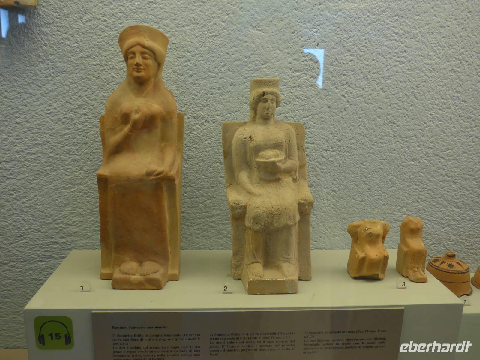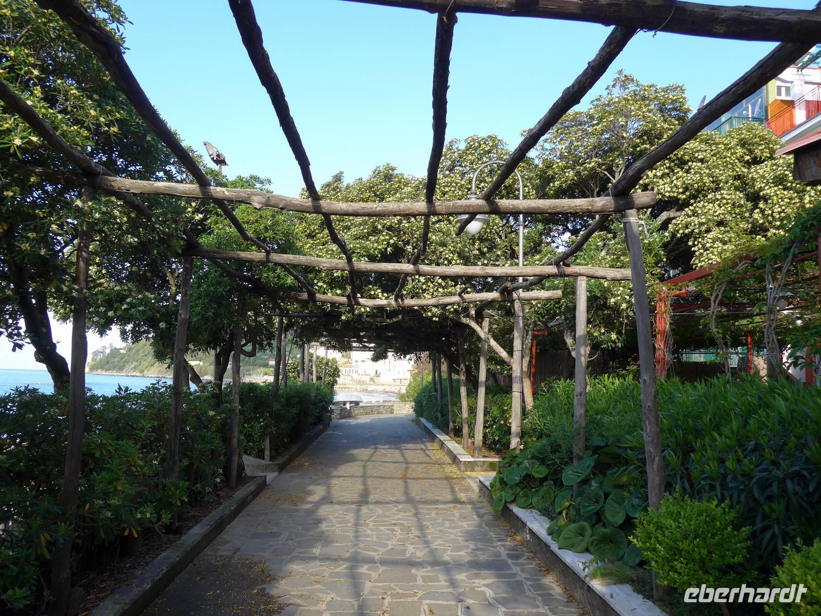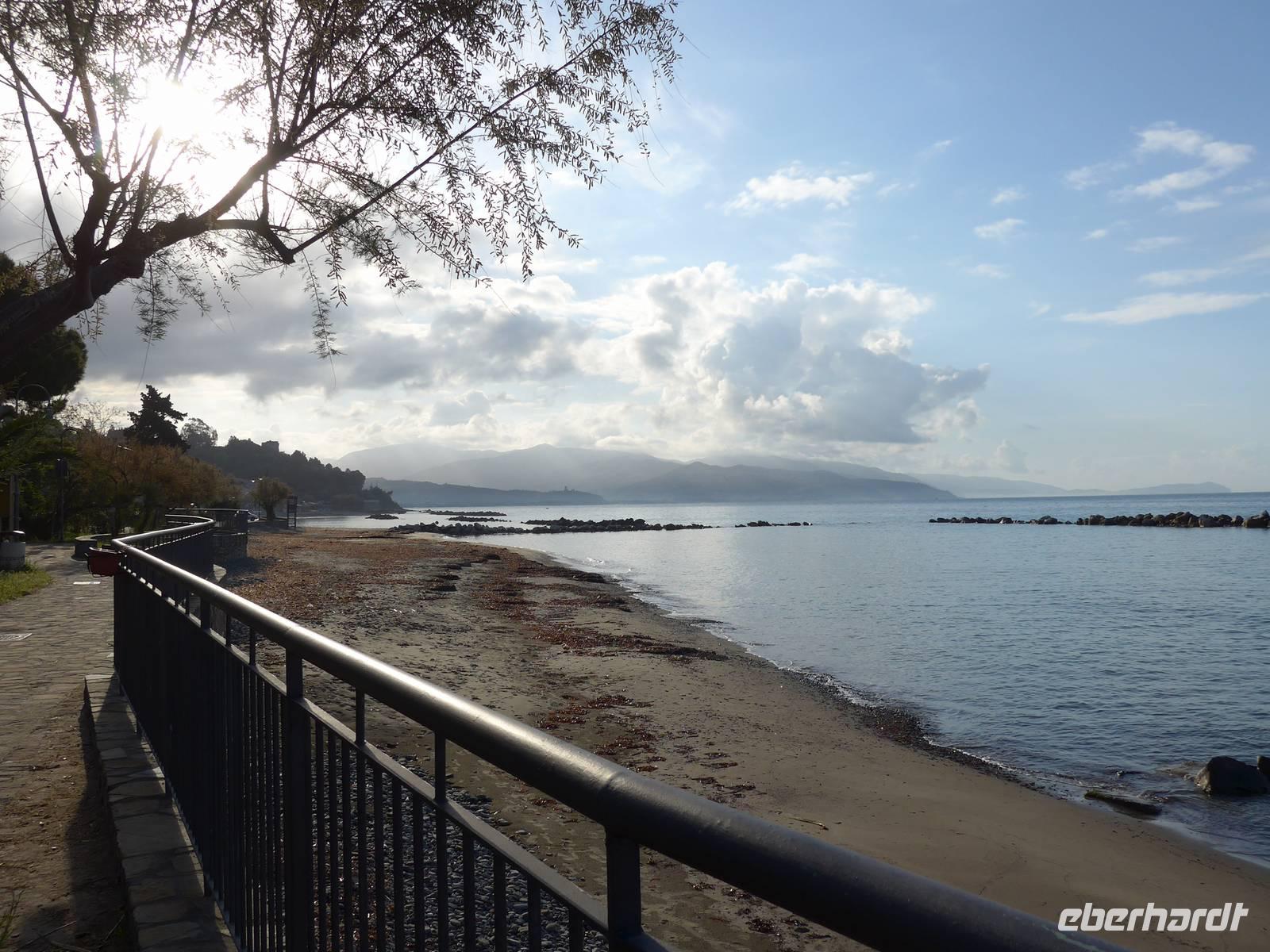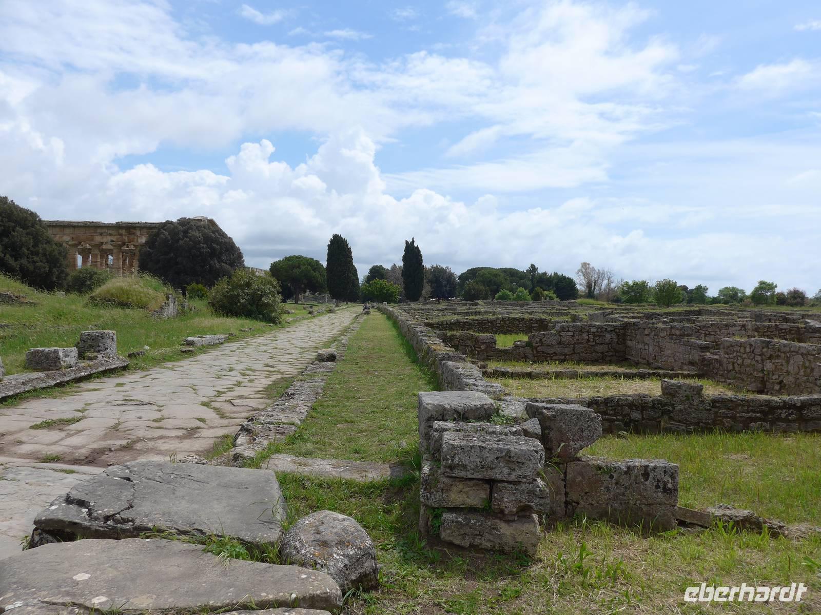 Durch den starken Regen der letzten Tage war unser Weg zur Punta Tresina unbegehbar und so fuhren wir auf der Küstenstrasse nach San Marco. Unsere Wanderung begann am Hafen und führte zur Punta Licosa und auf gleichem Weg zurück. Es ging eben hin und alle konnten mit wandern. Wir kamen vorbei an herrlichen Anwesen und genossen unseren Aufenthalt an der Punta Licosa in der Sonne. Ein Hubschrauber der Carabinieri drehte eine Ehrenrunde über uns und die Besatzung hatte sichtlich Freude an so vielen Damen. Nach der Wanderung brachte uns der Bus nach Santa Maria di Castellabate und wir gingen gemeinsam auf dem Corso Matarazzo quer durch die Stadt bis zur Kirche am Meer. Den Rückweg nutzte jeder für Einkäufe und ich besorgte als Mittagsimbiß Gebäckstücke und Nespoli zum Probieren. Wir fuhren weiter nach Paestum, wo uns Adele zu einer Führung erwartete. Sie begann mit den Ausgrabungen im Freien und wir sahen u.a. den Ceres-Tempel, das Parlament, das Amphitheater, den Poseidon-Tempel und die Basilika. Im Museum zeigte sie uns viele wertvolle Ausgrabungsstücke und als Höhepunkt das Grab des Tauchers. Ihr Vortrag war kurzweilig und gut verständlich. Uns blieb danach noch eine Stunde Freizeit in Paestum für Einkäufe, Kaffee und Eis. Im Hotel in Pioppi machte Tonino 18 Uhr mit uns eine Weinprobe. Wir verkosteten aus dem Cilento 3 Weissweine und 2 Rotweine bei gutem Käse und Brot. Leicht beschwingt gingen wir danach zum Abendessen.