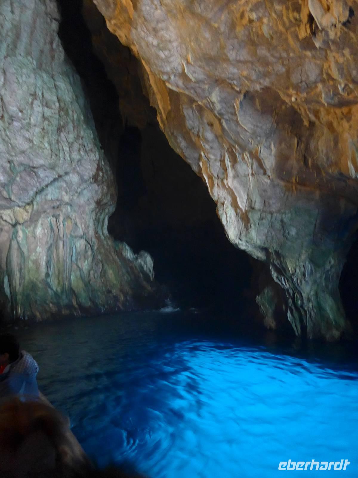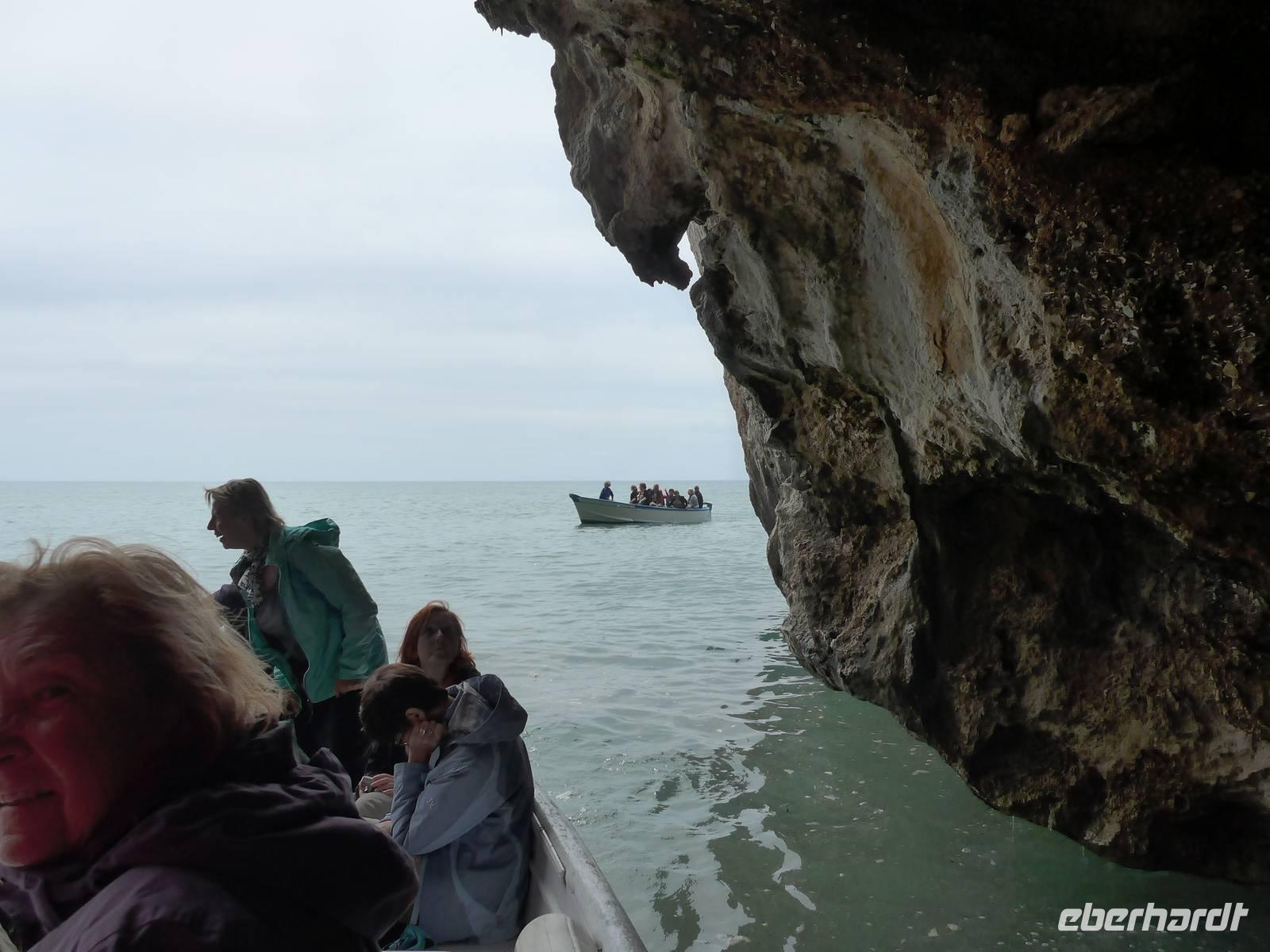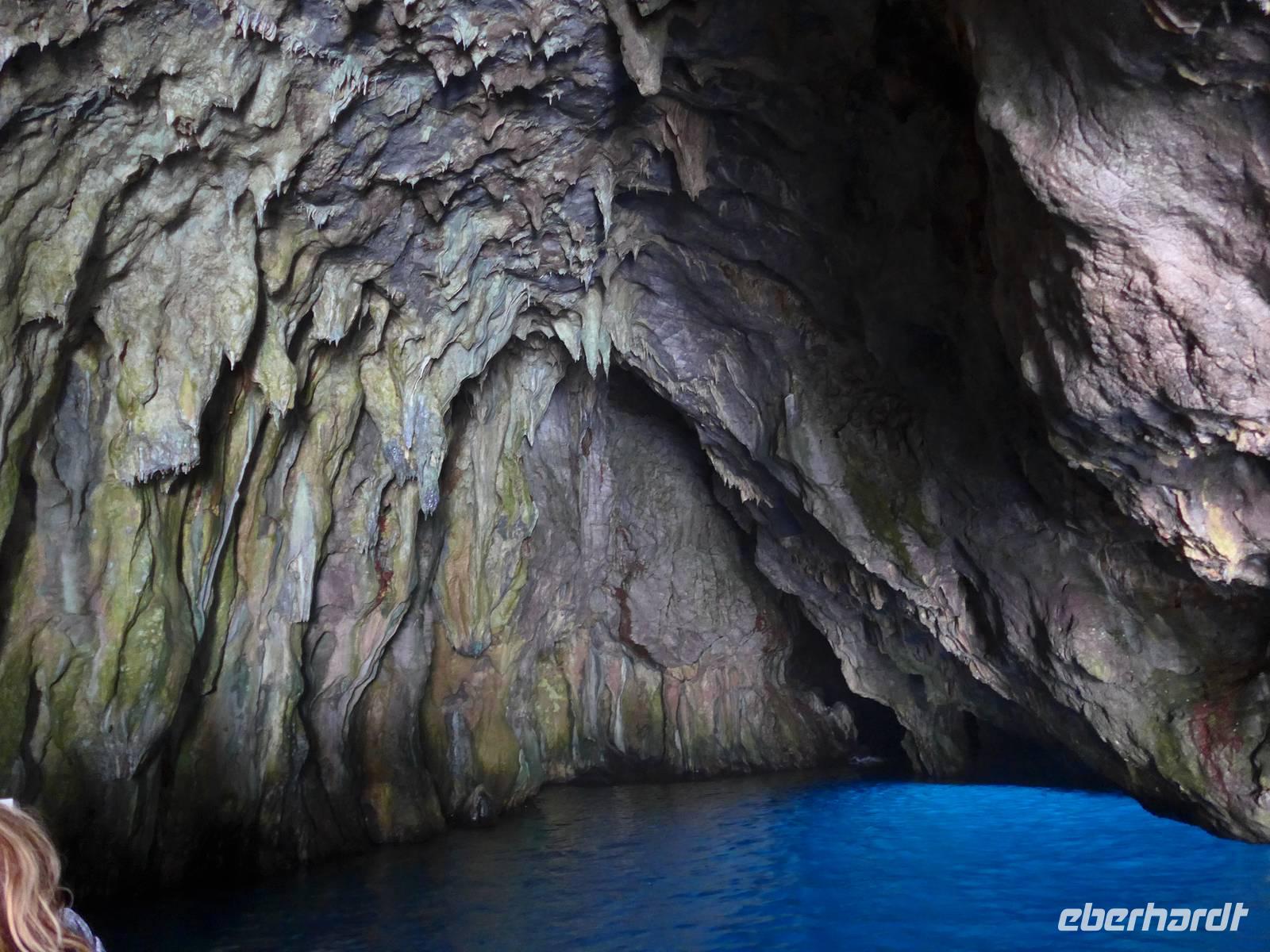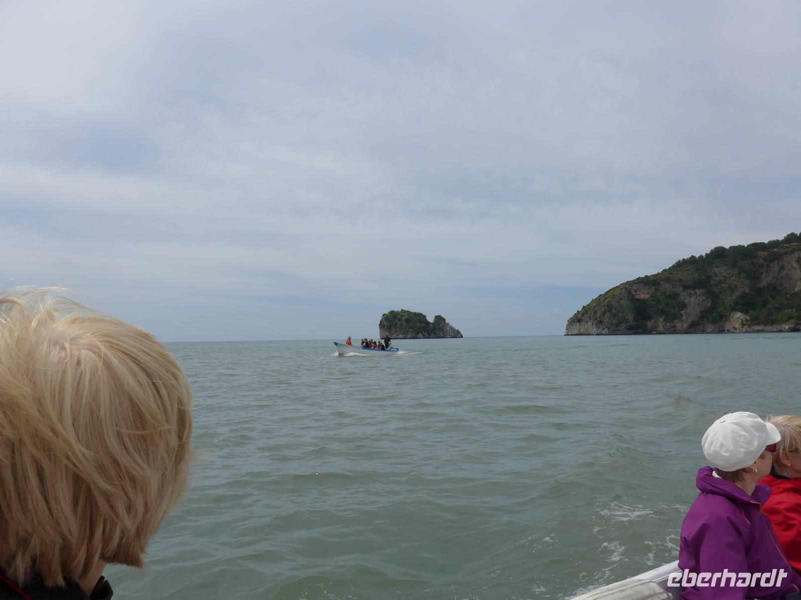 Nach kurzer Fahrt erreichten wir den Wochenmarkt im Nachbarort Casalvelino. Wir kauften ein und lernten die kleinen Händler aus der Region und deren Produkte kennen. Auf der Weiterfahrt nach Palinuro gab uns Ursula ihr Rezept für Limoncello und erzählte über die Geschichte der Pizza. Unterwegs im Mingardotal machten wir einen Halt, um die verlassene Stadt San Severino zu fotografieren. Bei Ankunft in Palinuro begannen wir gleich mit der Bootsfahrt um das Kap und zu den Grotten. Wir fuhren mit 2 kleinen Booten und konnten wegen des hohen Wasserstandes nur in die Blaue Grotte hineinfahren. In die Schwefelgrotte, Mönchsgrotte und Knochengrotte konnten wir nur hineinschauen. Vorbei am Kaninchenfelsen ging unsere Fahrt bis zum Arco Naturale und an der Küste wieder zurück nach Palinuro. Am Strand stärkten wir uns bei einem Picknick. Dann begann unsere Wanderung hinauf auf die Felsen am Kap Palinuro. Einige Gäste blieben unten am Strand. Von oben hatten wir wieder grandiose Ausblicke auf die Felsen am Kap, die wir schon vom Boot aus sahen und auf die gesamte Küste. Wir wanderten durch riesige Gräser und mußten uns den Weg wieder mit den Kühen teilen. Unterwegs sahen wir farbenfrohe Zistrosenwurzelwürker, Parasiten, die die Wurzeln der Zistrosen befallen, ihnen aber nicht schaden. Unten am Meer nahmen die Wanderer noch einen Kaffe und Eis und dann ging die Fahrt zurück nach Pioppi. Bei Sonnenschein badeten noch einige im Meer.