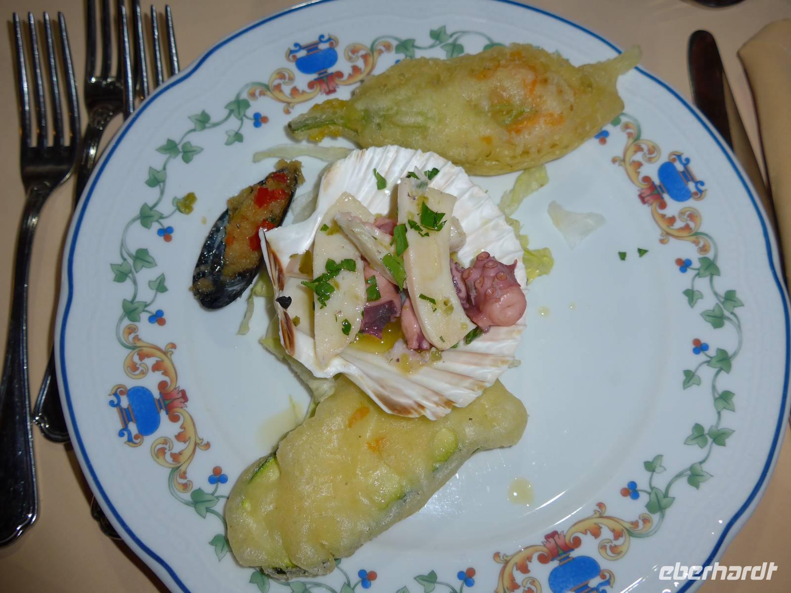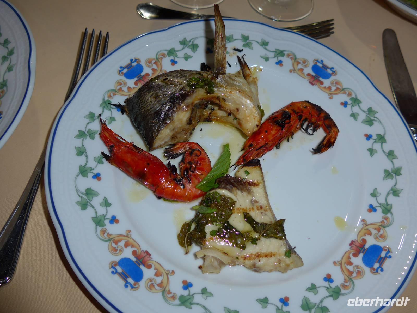 Beim Abschiedsessen im Hotel verwöhnte uns Umberto nochmals mit verschiedenem Fisch und zum Nachtisch mit einer selbstgemachten Torte. Wir verabschiedeten uns von Ursula und dem Hotelpersonal und gingen schlafen.