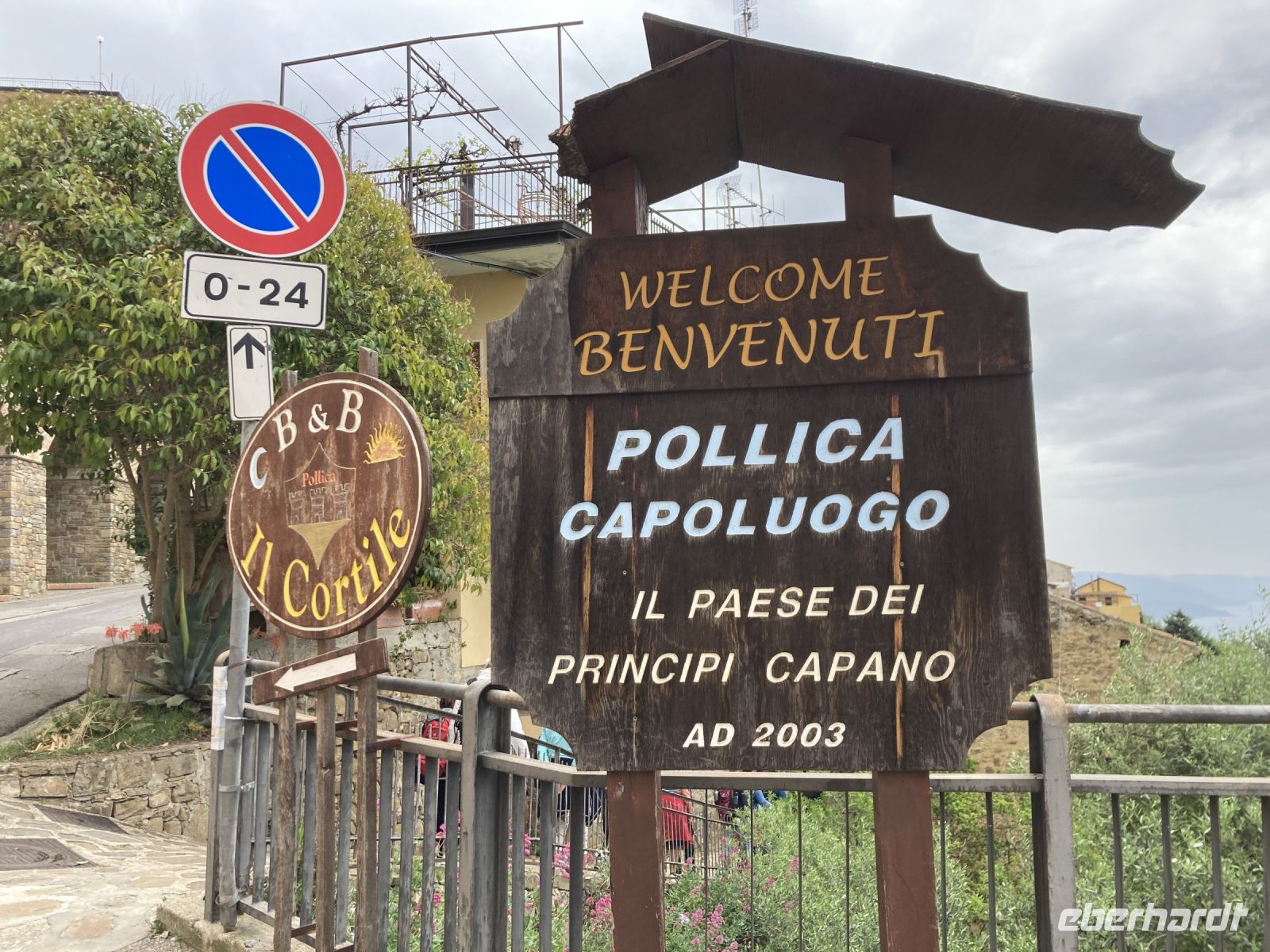 Unser Auftakt für den Nationalpark Cilento ist eine Wanderung entlang der Küste. Wir lernen hier nun Enzo kennen, der mit uns in den kommenden Tagen die Wanderungen unternehmen wird. Beim Ausgangspunkt unserer Wanderung öffnet auch noch der kleine Lebensmittelladen seine Pforten und wir können uns noch mit Getränken und kleinen Leckereien versorgen. Dann geht es auch schon los. Eines wird schnell deutlich. So viele Zitronen, wie wir sie auf der Sorrentinischen Halbinsel gesehen haben, finden wir hier nicht. Dafür gibt es hier Oliven und Feigen. Und natürlich viele Wildkräuter. Auf unserem Weg weist uns Enzo immer wieder auf die verschiedenen Pflanzen hin. Wir dürfen einige Umwege laufen, da die Eigentümer kurzerhand die Grundstücke mit Zäunen versehen. Leider gibt es hier nicht die Regel, dass Wanderer das Grundstück passieren dürfen. Tatsächlich begegnen wir während all unseren Wanderungen im Cilento keiner anderen Wandergruppe. Und auch die Einzelaktive können wir an einer Hand abzählen. Welch Kontrast zum Götterweg! Enzo zückt hie und da seine Gartenschere und befreit den Weg von Zweigen. Landschaftspflege beim Wandern. Nach dieser schönen Route setzt nun der kleine Hunger ein. Wir fahren zum Weingut Marini, wo uns die Signora einiges zum hier produzierten Wein erzählt. Es bleibt natürlich nicht bei der Theorie. Wir verkosten drei Weine und lassen und die "Häppchen" dazu schmecken. Abschließen möchten wir den Tag mit einer Stippvisite in Agropoli. Vieles deutet auf eine griechische Gründung hin, doch auch für die Byzantiner gibt es Anhaltspunkte. Gesichert ist, dass die Sarazenen im 9. Jahrhundert eine Festung errichteten. Durch das Stadttor aus dem 16. Jahrhundert betreten wir die Altstadt, die noch einen sehr ursprünglichen Charme versprüht, musikalische Einlage inklusive.