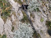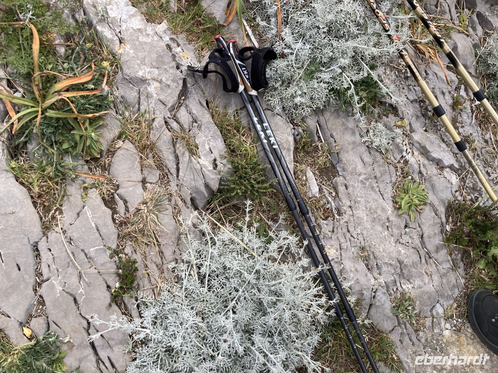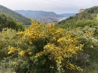 Gemeinsam laufen wir noch ein Stück nach oben. Der Weg wird nun zur Teststrecke. Wir schauen in die Bucht, wo wir einen Steinbruch entdecken. Unser Ziel ist der Gipfel des Monte S.Constanzo. Und hier teilt sich nun die Gruppe. Die eine Hälfte wählt den Saumweg mit Elisabeth. Die andere Hälfte läuft mit mir den schon gegangenen Weg zurück, um dann den Pilgerweg einzuschlagen. Wir erreichen die Kirche recht entspannt über die Steintreffen oder Straßenkehren. Tatsächlich sind wir etwas früher oben und packen schon unser Panino aus. Neugierde und vor allem der kleine Hunger lässt uns schon einmal unsere Brötchen anknabbern. Die Gruppe um Elisabeth erreicht die Kirche eine Viertelstunde später. Der Ausblick von hier oben ist wunderbar und war der Mühe Wert. Selbstverständlich schmecken die Panini nun allen. Allerdings weht doch ein ziemlich kühler Wind, weshalb wir nun gemeinsam den Abstieg starten. Die Aussicht auf einen Limoncello beflügelt noch einmal die Beine. Mit unserem Bus geht es nun zum Hotel zurück. Was für ein schöner Auftakt für die Wanderreise.