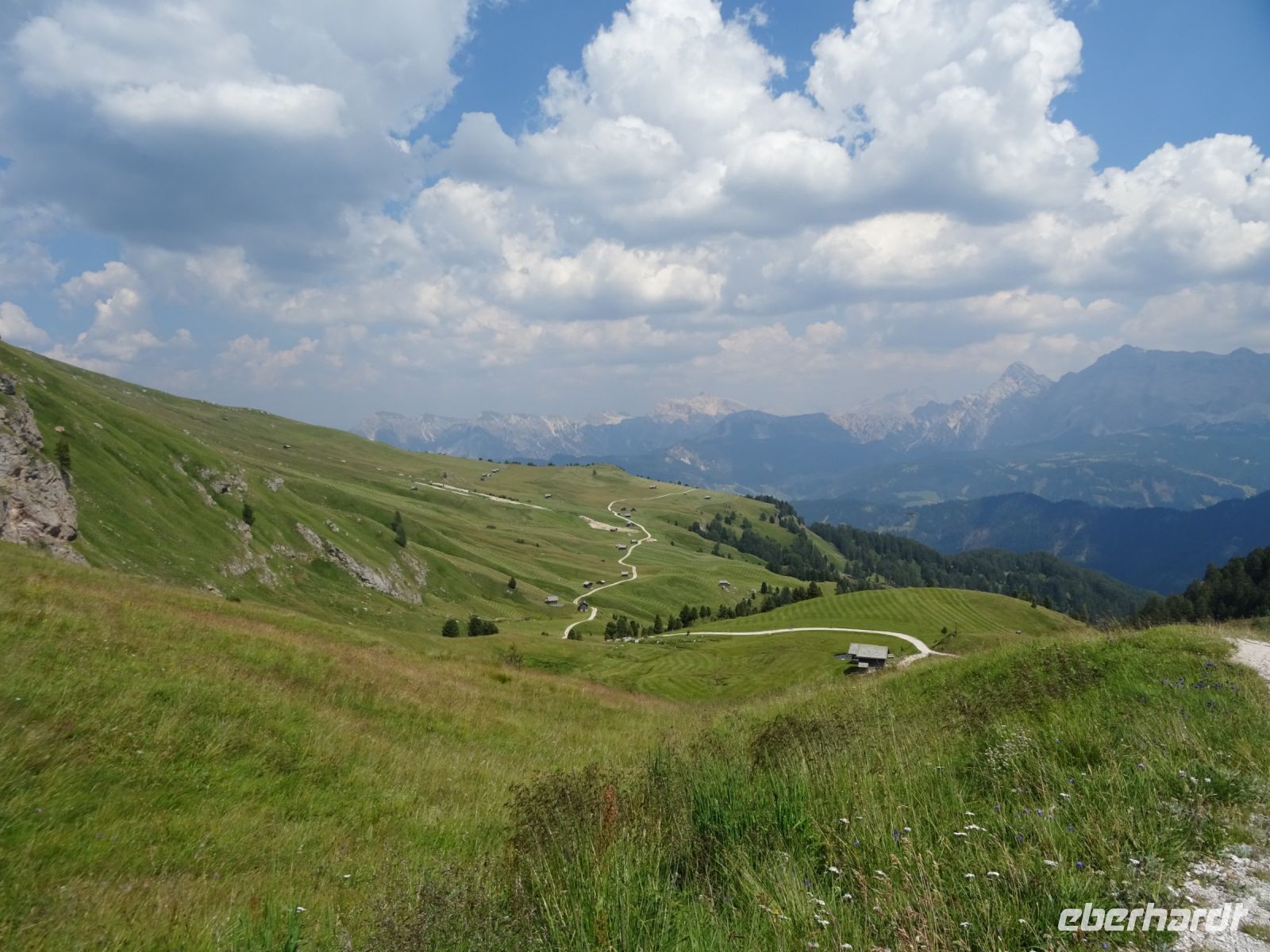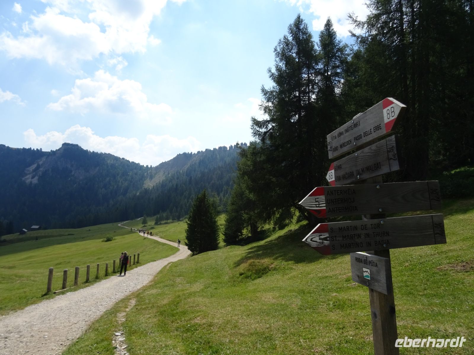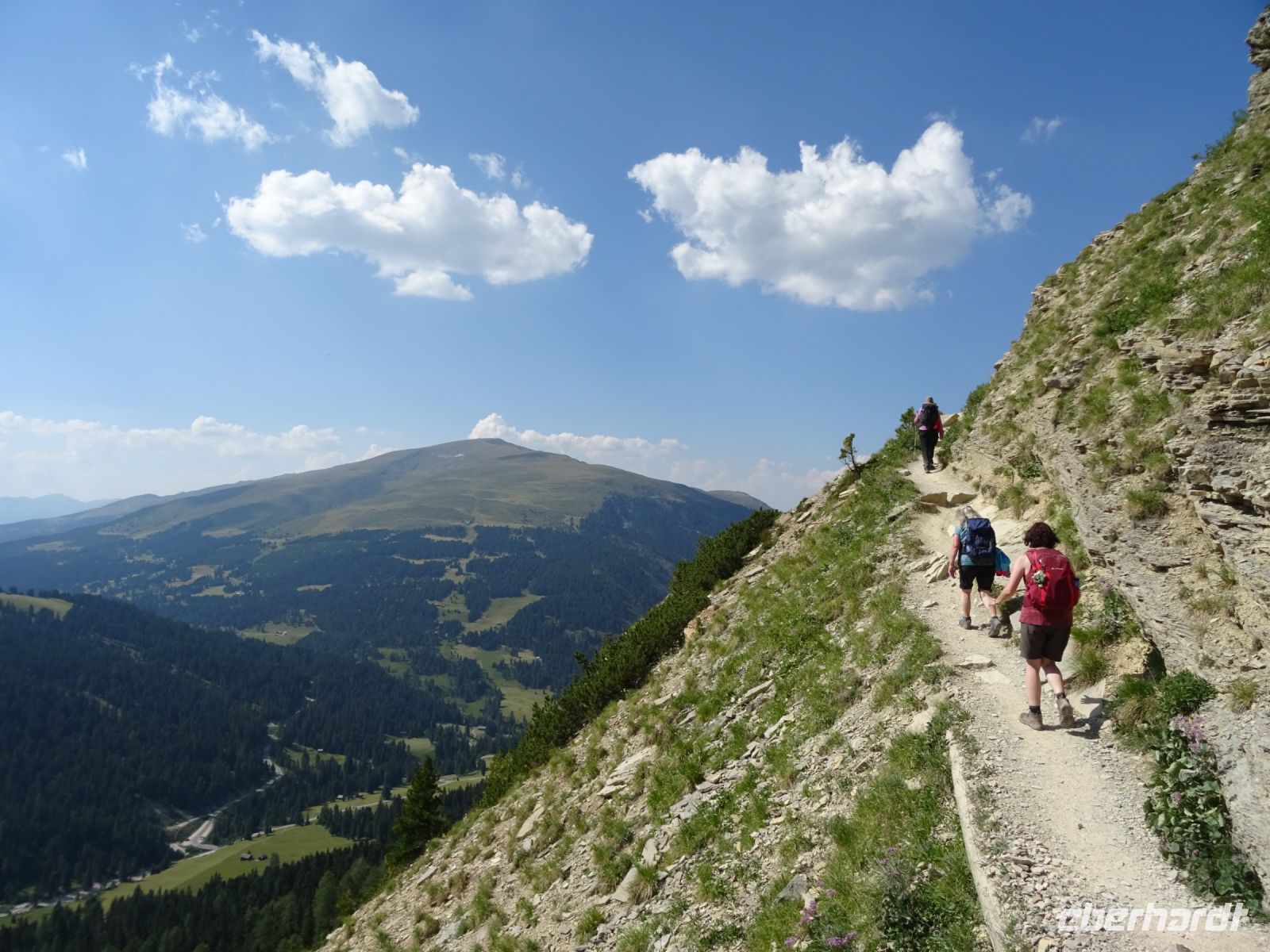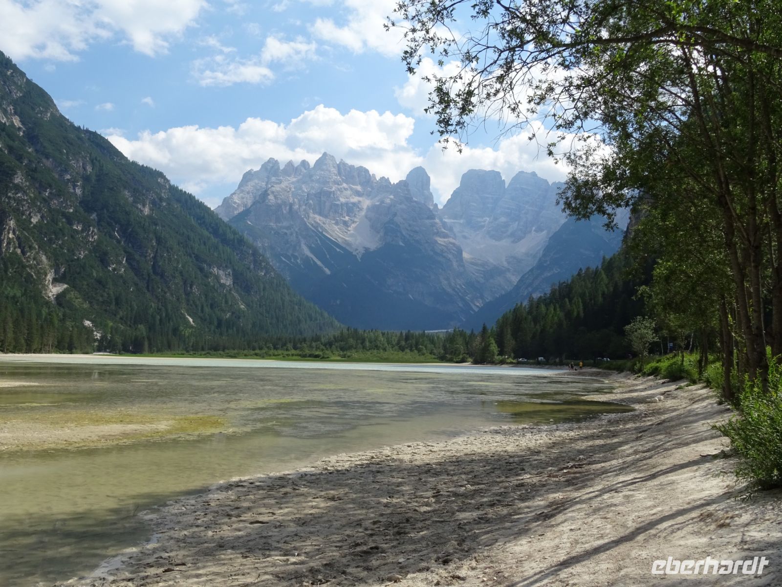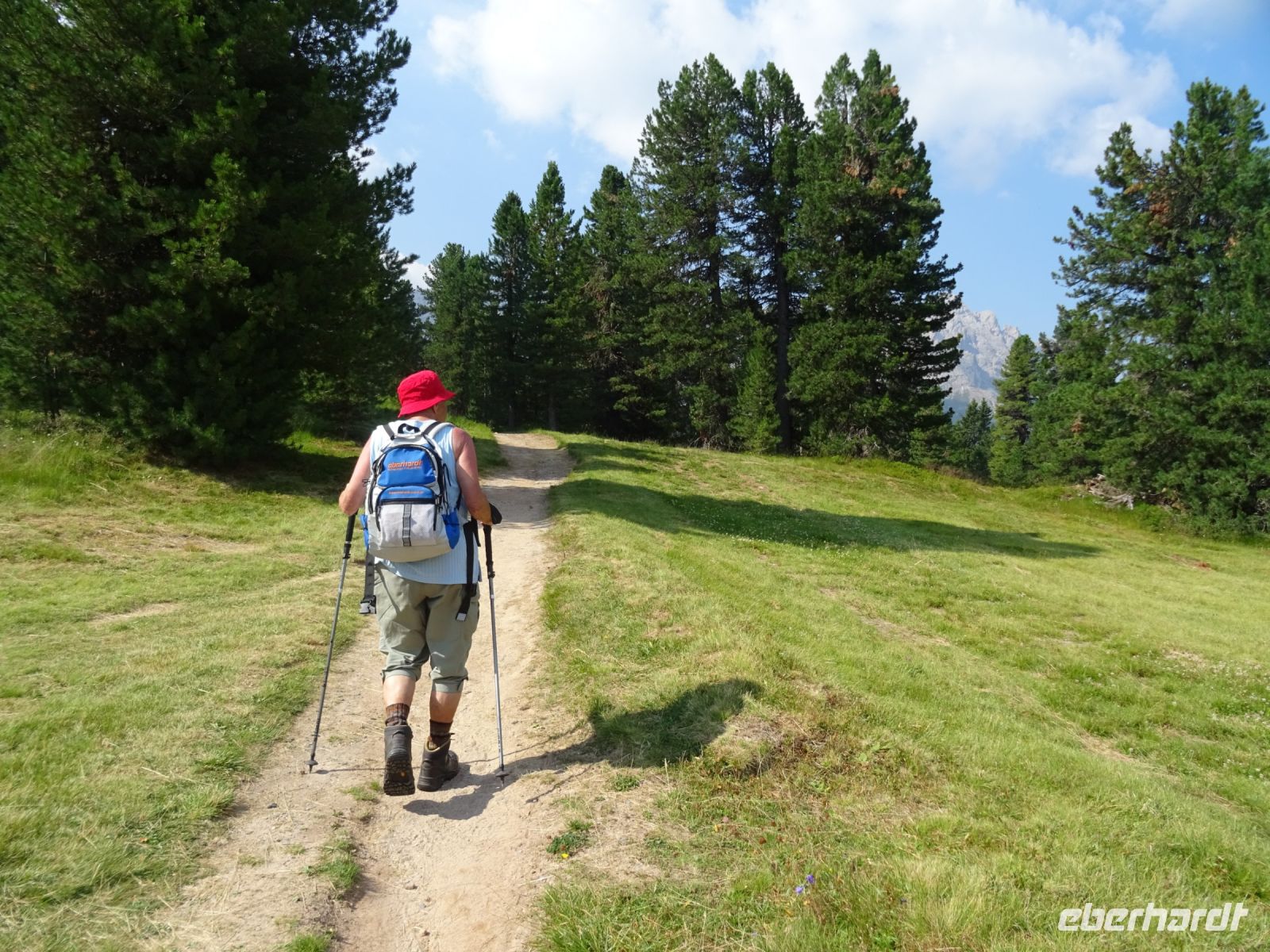 Minuten wieder an der Bergeralm auf 1600 Höhenmetern. Weiter führt uns der Weg nach gut zwanzig Minuten weiter zur Schwörz Alm, deren fantastisches Panorama wir für eine ausgiebige Jause und einem kühlen Radler nutzen. Immer wieder schweift unser Blick in das Antholzer Tal und die umliegende Berglandschaft. Auch den Seekofel – der Hausberg der gestrigen Tour am Pragser Wildsee - können wir in der Ferne erkennen. Weiter geht es nun nicht denselben Weg zurück, sondern wir entscheiden uns den relativ neu angelegten 2-Täler-Trail über das Biathlonzentrum bis zum Antholzer See zu marschieren. Wir sehen die übriggebliebenen Schäden der Mure, die erst Ende Juni das Antholzer Tal heimgesucht hat. Riesige Geröllmassen sind das Tal hinabgestürzt und haben auch den Wanderweg teilweise zerstört. Aber die Forstwirtschaft hat innerhalb kürzester Zeit die Schäden größtenteils beseitigt, so dass unser Weg passierbar ist und wir auf dem Weg zu unserem Tagesziel entlang des Antholzer Bachs immer wieder tolle Panoramen genießen konnten. Links die gewaltigen Geröllmassen und vor uns die sanften Berge des Antholzer Tals. Am Biathlonzentrum angekommen genießen wir nun die tolle Kulisse am Antholzer See und erfrischen uns entweder im See oder belohnen uns mit einem leckeren Eiskaffee. Wieder geht ein toller Tag zu Ende und voller neuer Eindrücke chauffiert uns Ricco zu unserem Hotel zurück.