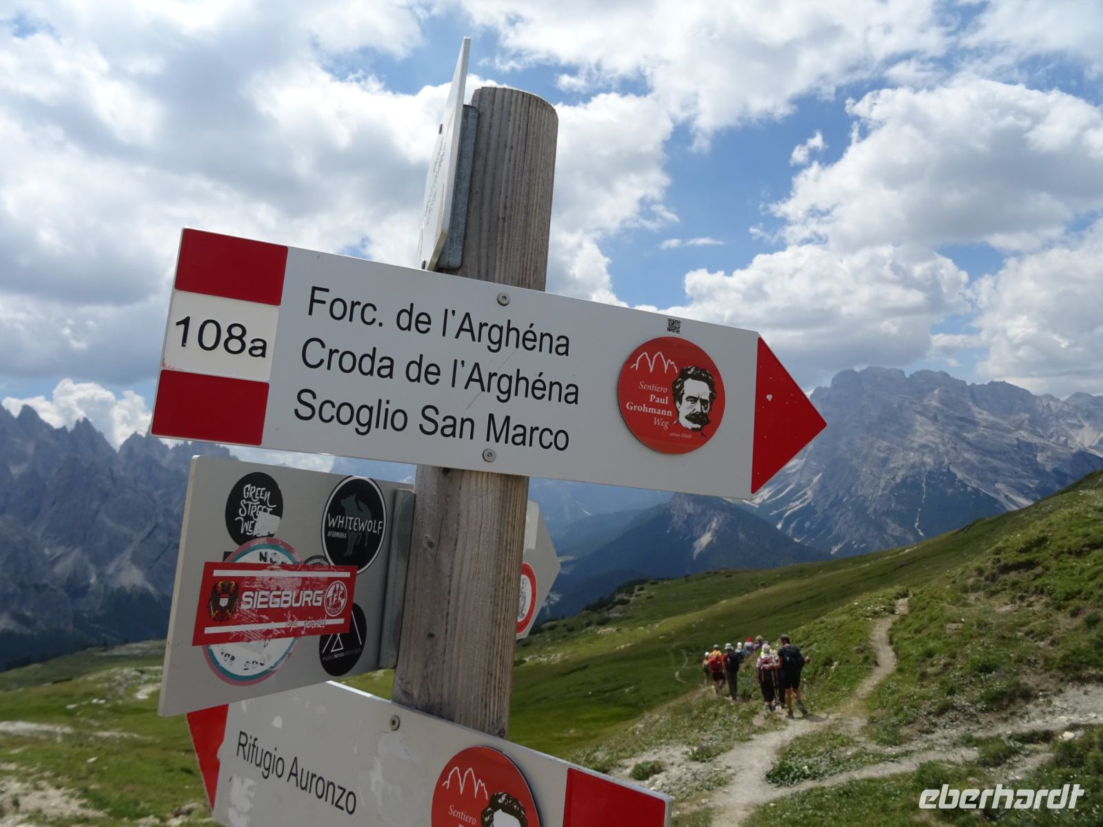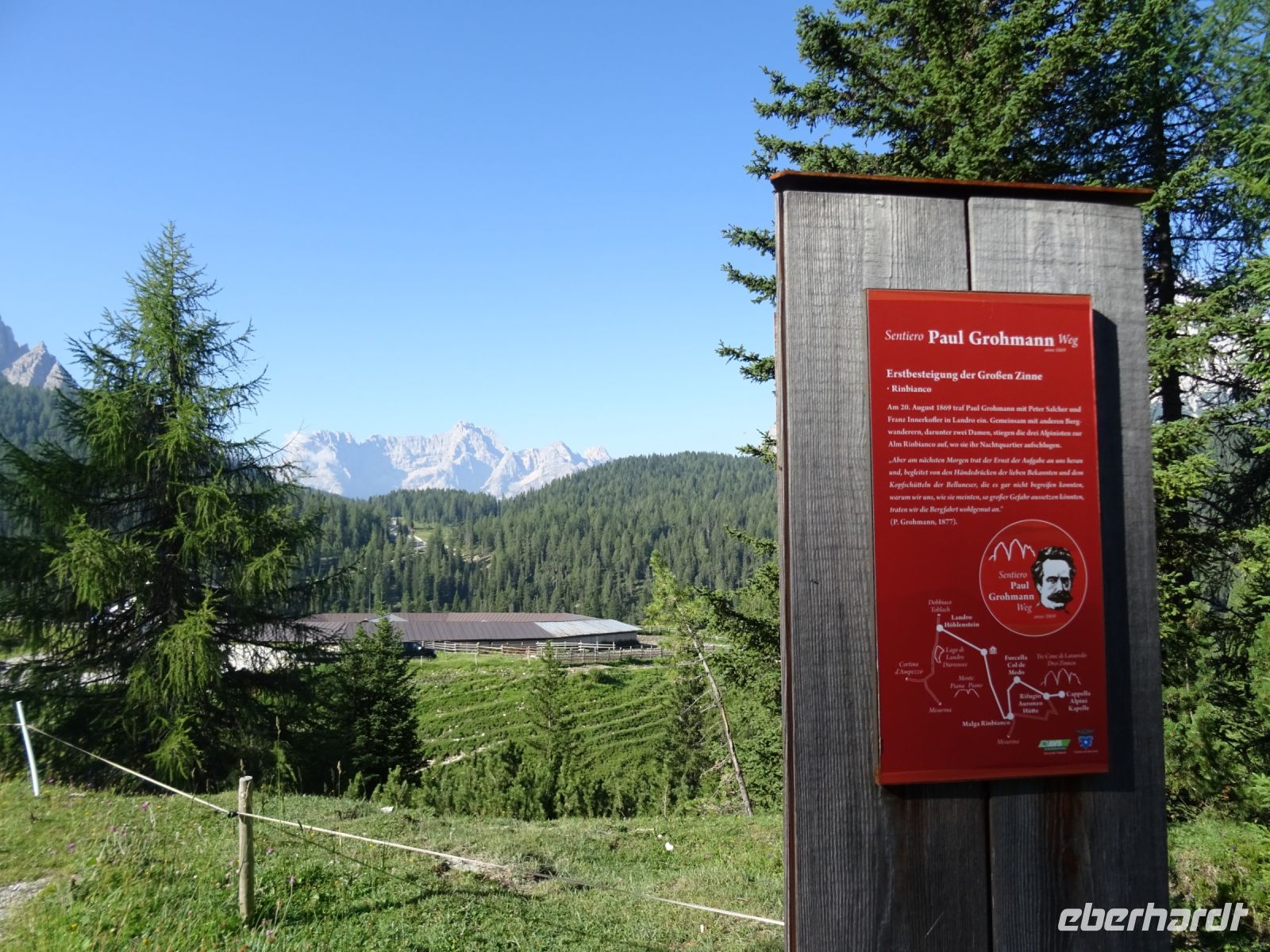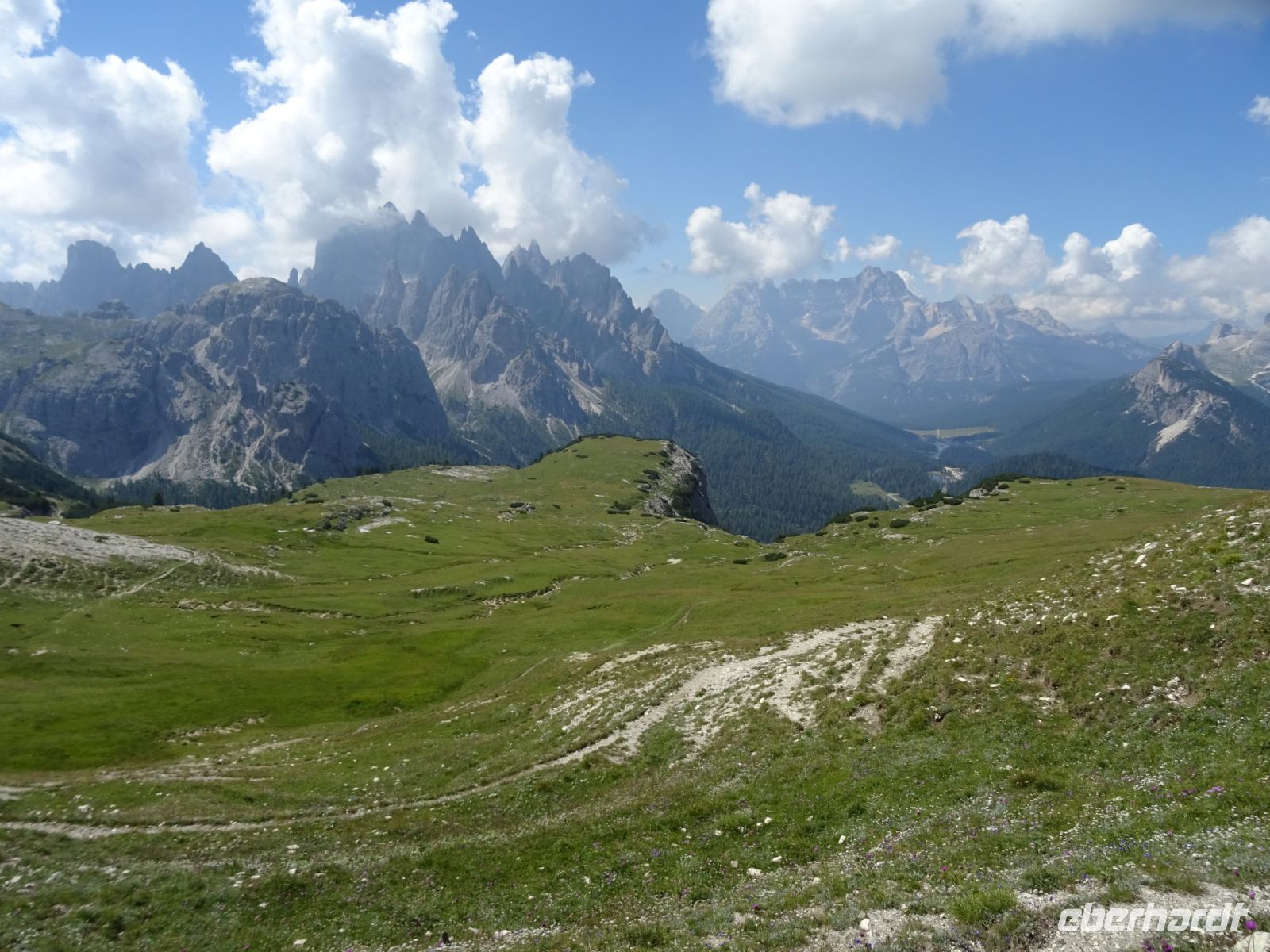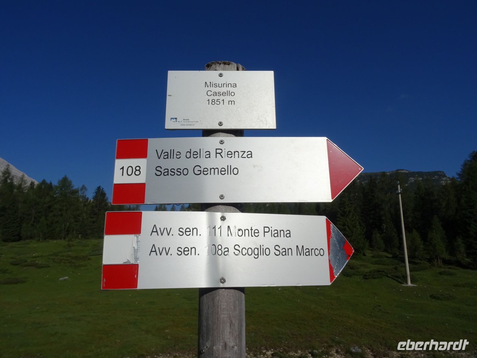 Mit den ersten Sonnenstrahlen schnüren wir unsere Wanderschuhe und packen unseren Rucksack, um mit Irmi bereits um sieben Uhr morgens mit dem Bus in die Sextener Dolomiten zu fahren. Aus der Erfahrung des letzten Jahres, nehmen wir das zeitige Aufstehen in Kauf um noch vor den ersten italienischen Touristen an den Drei Zinnen zu sein. Frühstück und Kaffee gibt es im Bus und so vergeht die Stunde Fahrtzeit wie im Flug. Die Drei Zinnen sind das Wahrzeichen der Dolomiten und somit ein beliebtes Ausflugsziel für Groß und Klein. Wir bewegen uns heute aber etwas abseits vom Trubel und beginnen unsere Tour auf circa 1900 Metern am Lago d’Antorno. Auf einem wenig begangenen Steig wandern wir von der Rinbiancoalm zur Forcella di Mezzo auf. Wir genießen die herrliche, morgendliche Ruhe, das Vögelgezwitscher und nehmen uns vor allem Zeit für die ersten, größeren Anstiege. Immer wieder pausieren wir, um das atemberaubende Panorama der Dolomiten aufzusaugen. Die Fotoapparate laufen jedenfalls heiß, denn vor dem tiefblauen Himmel wirken die Gipfel vom Monte Piano, der Cadini-Gruppe oder der Schusterspitze noch gewaltiger. Auf dem Hochplateau angekommen, legen wir erst einmal eine kleine Pause ein, bevor wir von dort weiter zur Langalm gehen und den gigantischem Blick auf die Nordwände der Zinnen bestaunen. Für ein paar Meter ist schon deutlich mehr Begängnis, aber immerhin ist die Mittagsrast in Sicht. Nach einer ausgiebigen Stärkung auf der Alm geht es zurück zur Forcella. Immer wieder lassen wir die Blicke zurück schweifen und sind stolz auf das was wir bereits geschafft haben. Der Abstieg geht nun etwas steiler und teilweise sehr uneben nach unten. Obacht ist angesagt und jeder nimmt sich ausreichend Zeit. Die Füße tragen uns wieder bis zum Ausgangspunkt unserer heutigen Tour. Unser Chauffeur Ricco erwartet uns bereits mit einem „kühlen Blonden“ und selbstverständlich stoßen wir bei einem Südtiroler Grappa auf diesen grandiosen, aber auch anspruchsvollen Tag an! Das leckere Menü im Hotel haben wir uns jedenfalls redlich verdient! Buona notte!