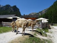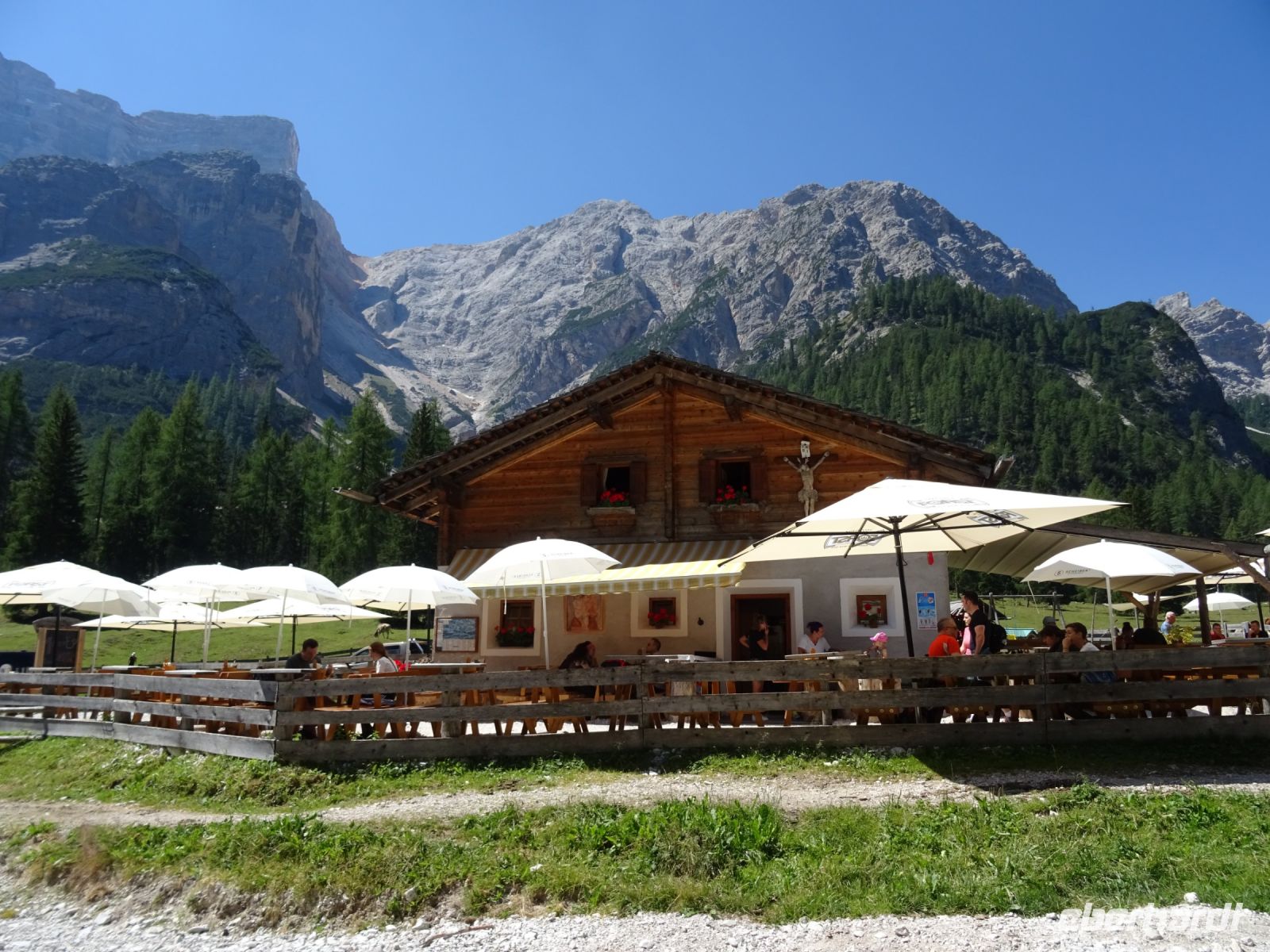 Rucksack gepackt und Wanderschuhe geschnürt laufen wir nun erst einmal zum Pragser Wildsee, der mit einer azurblauen Farbe leuchtet und die Fotoapparate glühen lässt. Wir bestaunen eine traumhafte Kulisse und pirschen uns neben den vielen anderen Besuchern entlang des Seeweges in Richtung Grünwaldalm vor. Immer wieder bleiben wir stehen und bestaunen das alpine Panorama mit dem Seekofel und seinem Spiegelbild im See. Auf dem Schotterweg zur Alm trennt sich Gott sei Dank die Spreu vom Weizen und wir genießen die herrliche Ruhe. Wir wandern noch etwas weiter bevor wir vom Kuhglockengeläut begleitet in der Grünwaldalm einkehren. Bei einer zünftigen Brettljause oder einem Kaiserschmarrn lassen wir uns die südtiroler Köstlichkeiten schmecken bevor wir wieder bis zum Pragser Wildsee wandern. Natürlich darf eine kleine Erfrischung nicht fehlen. Glücklich und zufrieden erreichen wir wieder unseren Ausgangspunkt und lassen den tollen Tag Revue passieren. Dieser endet landestypisch – denn das Hotel verwöhnt uns heute mit einem Südtiroler Menü.