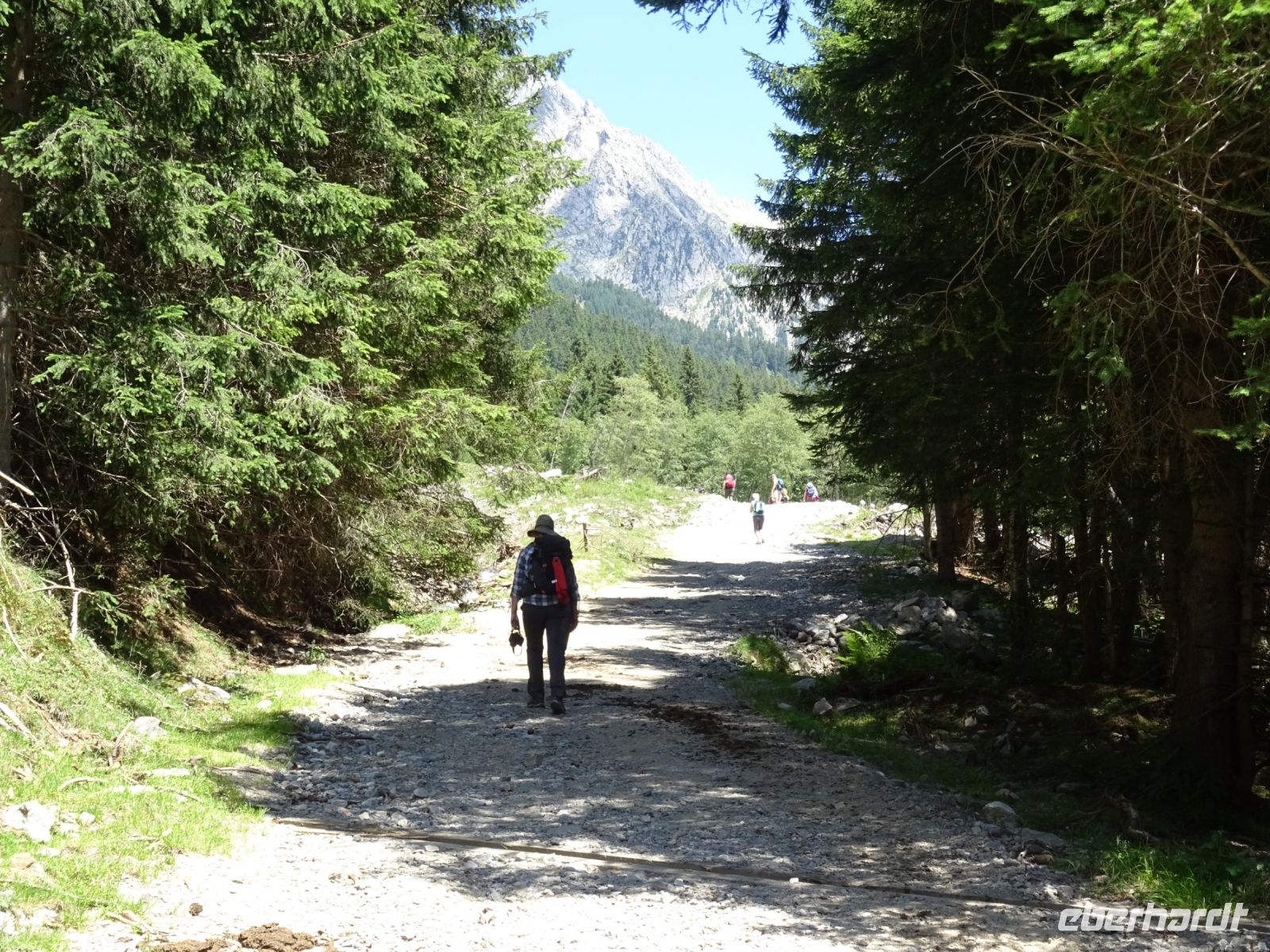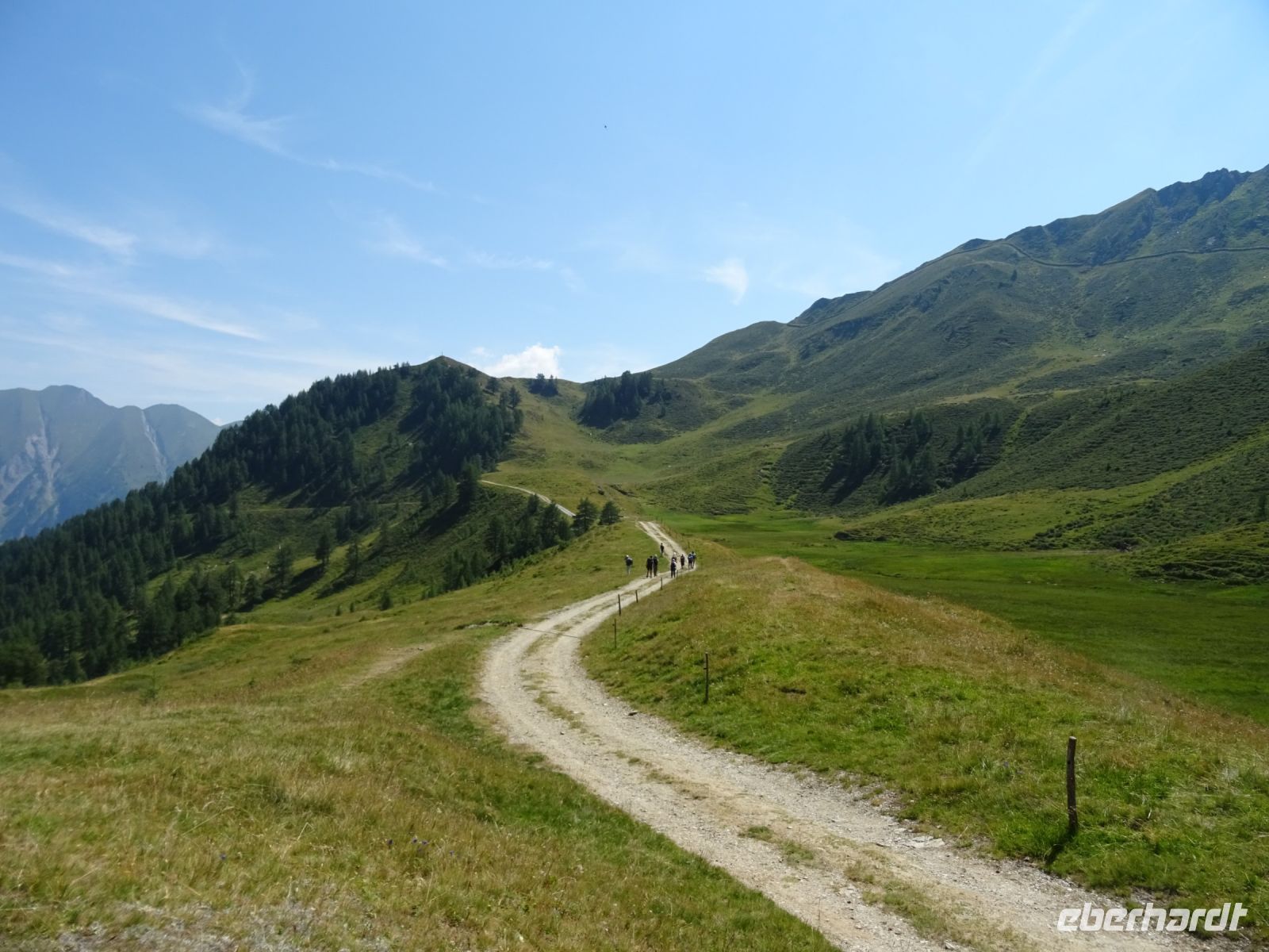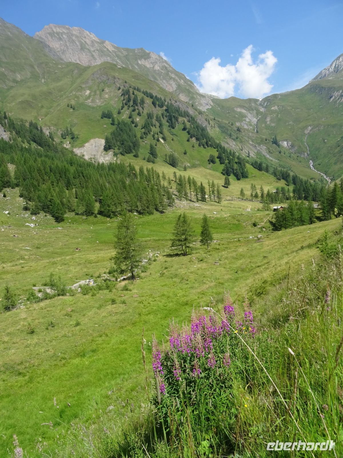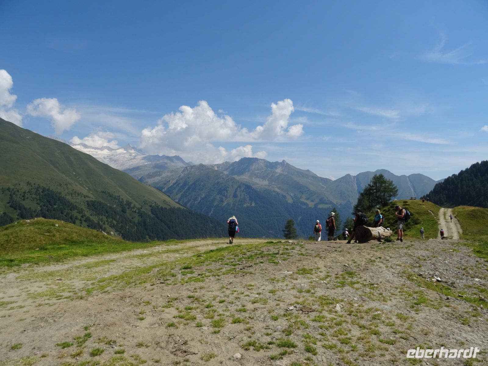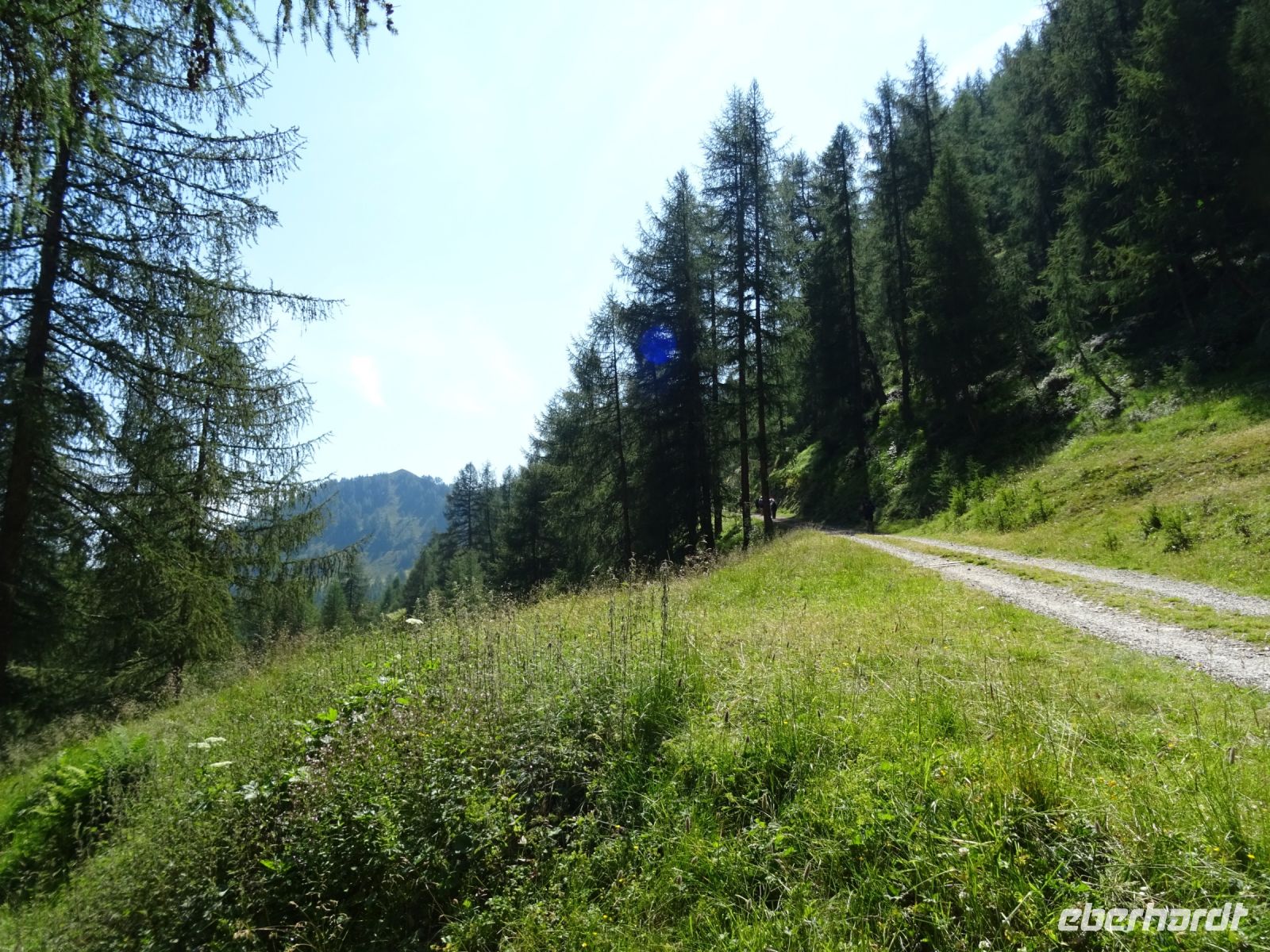 Zwar waren die Beine heute noch etwas müde vom gestrigen Tag, nichtsdestotrotz ruft auch heute wieder der Berg. Dieses Mal die Eggespitz im Ahrntal bzw. genauer im Lappacher Tal. Da für die kommenden Tage am Nachmittag Gewitter gemeldet sind, ziehen wir unsere Freitagstour vor. Nach gut einer Stunde sind wir nun in Lappach auf 1.439 m angekommen und werden mit zwei Taxen zum eigentlichen Ausgangspunkt der Tour chauffiert. Die weitere Zufahrt mit dem Bus ist leider nicht möglich. Nun laufen wir mit unserer Irmi durch die Klamm des Mühlwalder Baches in das Zösental hinauf. Nach der Mair-zu-Hof-Alm gelangen wir auf einem breiten, leicht ansteigenden Weg zu einer Hochfläche, den sogenannten Flemmsee, der leider durch die langanhaltende Trockenheit nicht mehr so Wasser durchtränkt ist, wie gewöhnlich. Aber dennoch können wir tolle Spiegelbilder bewundern und auch die umliegende Wiesenlandschaft sowie die Ausläufer