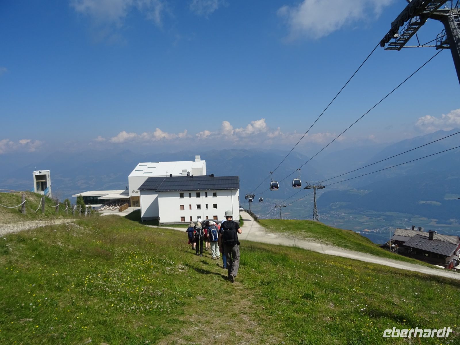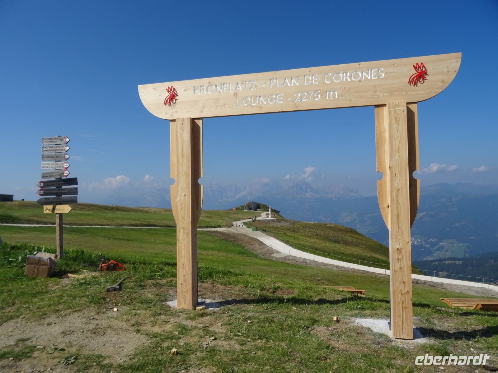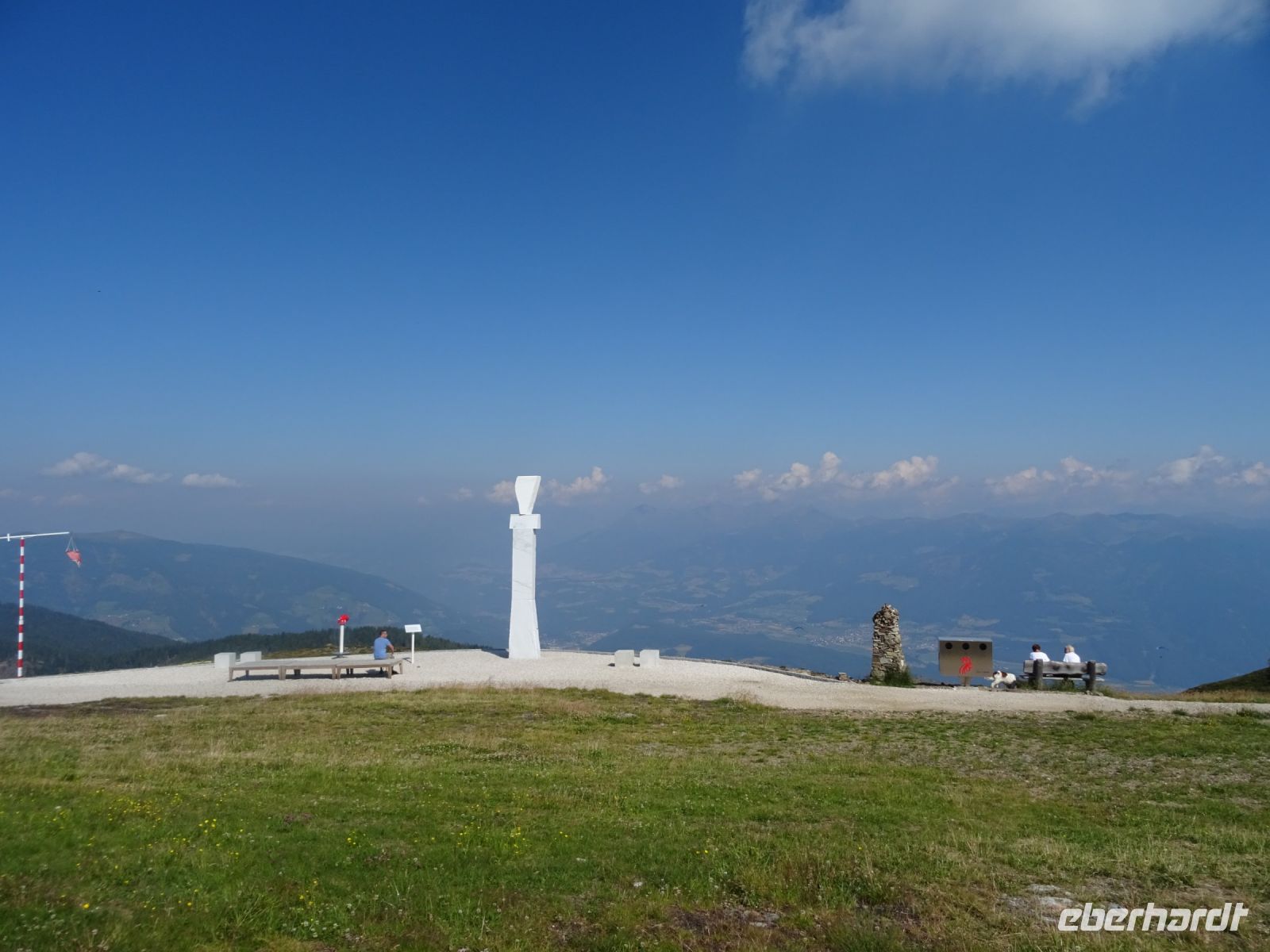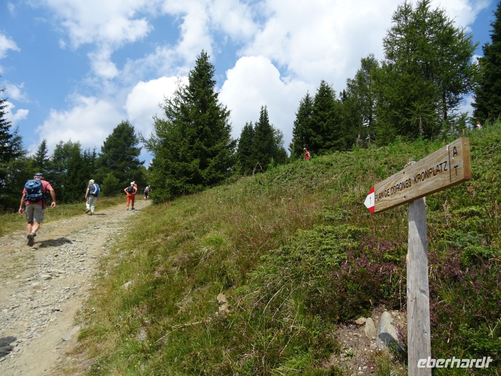 Trotz etwas diesiger Sicht freuen wir uns wieder über das Kaiserwetter und wandern als erstes entlang des Kronplatzrundweges und genießen die umgebene Landschaft. Auch unser morgiges Ziel, den Peitlerkofel, können wir in der Ferne erspäen. Nun ist es bis zu unserem Ausgangspunkt nicht mehr weit und bevor wir Messners „Krönung“ besichtigen, stärken wir uns wieder bei einer zünftigen Mittagsrast.