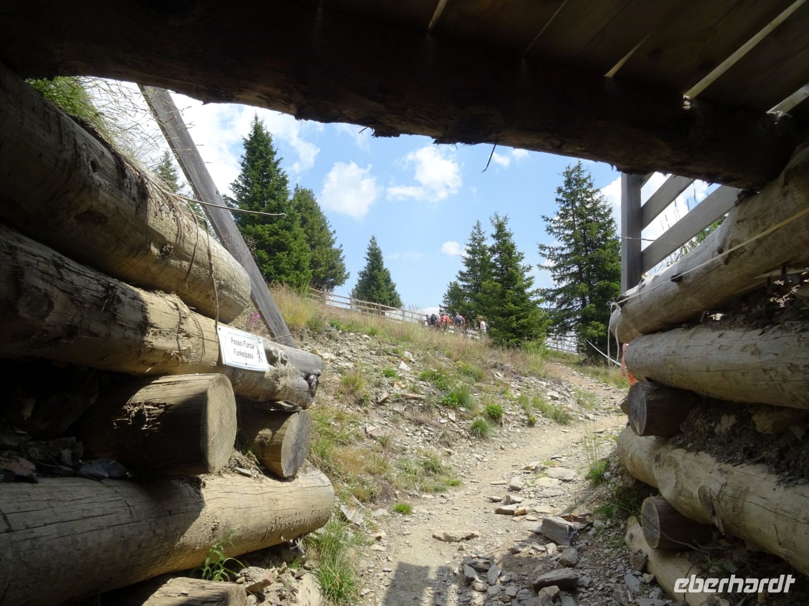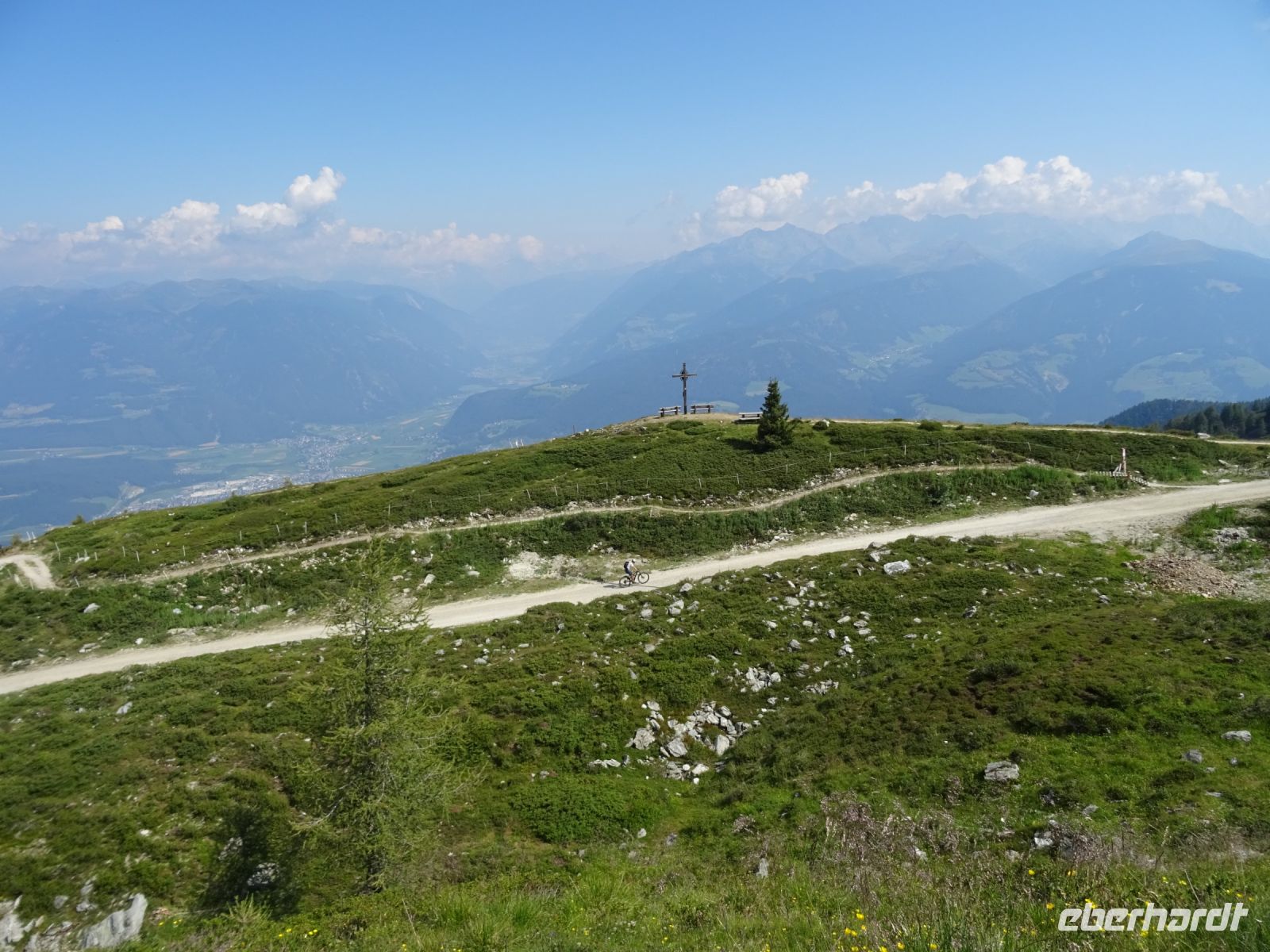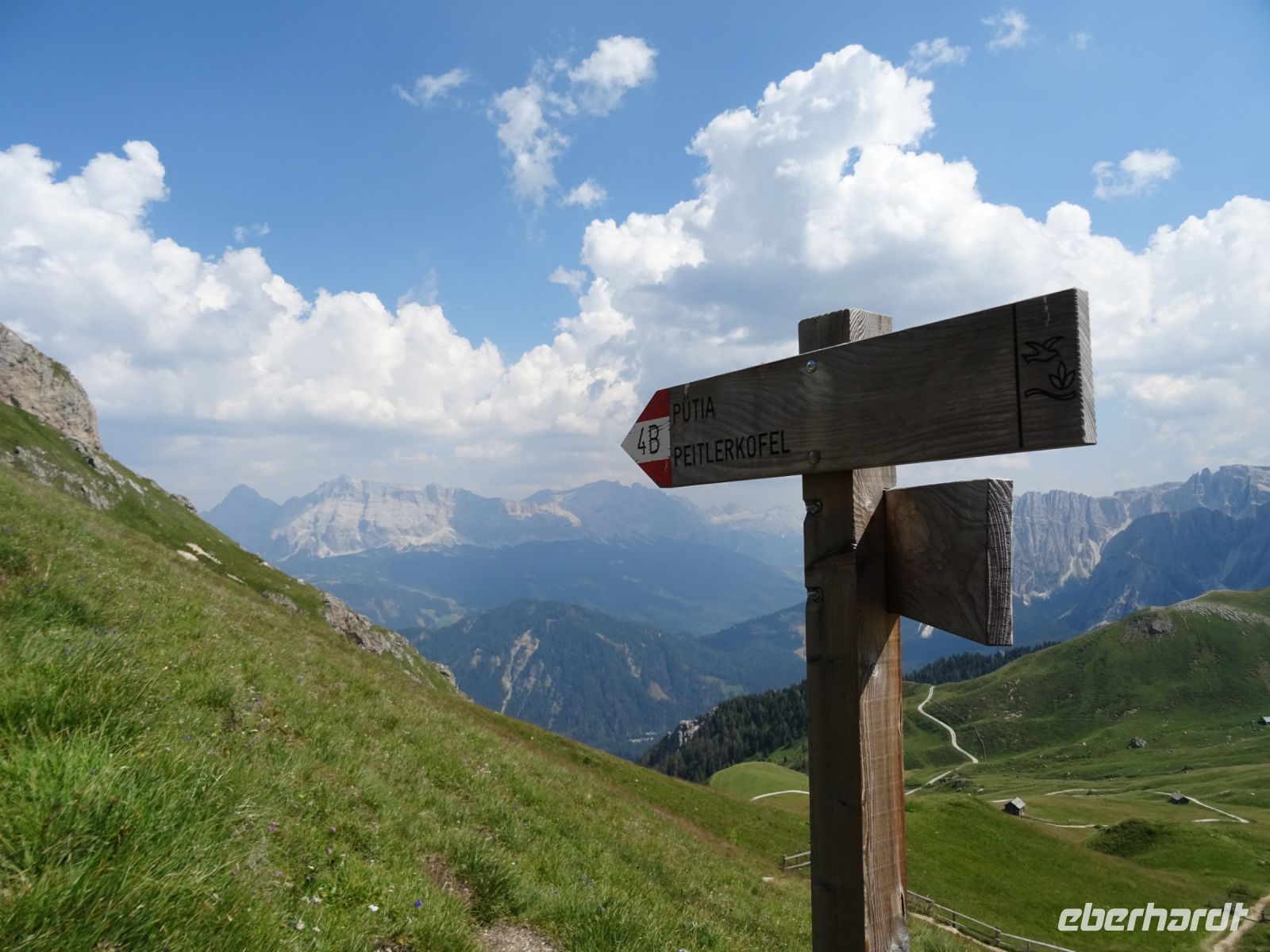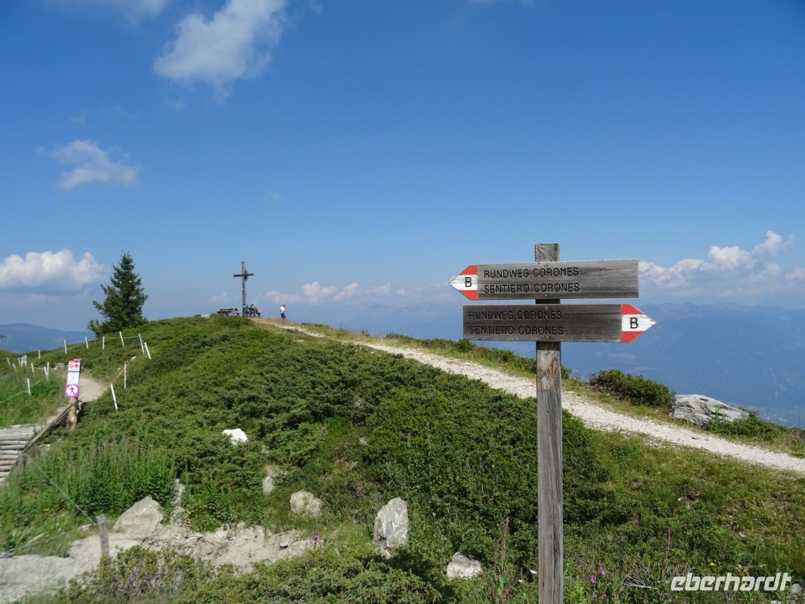 Trotz etwas diesiger Sicht freuen wir uns wieder über das Kaiserwetter und wandern als erstes entlang des Kronplatzrundweges und genießen die umgebene Landschaft. Auch unser morgiges Ziel, den Peitlerkofel, können wir in der Ferne erspäen. Nun ist es bis zu unserem Ausgangspunkt nicht mehr weit und bevor wir Messners „Krönung“ besichtigen, stärken wir uns wieder bei einer zünftigen Mittagsrast.