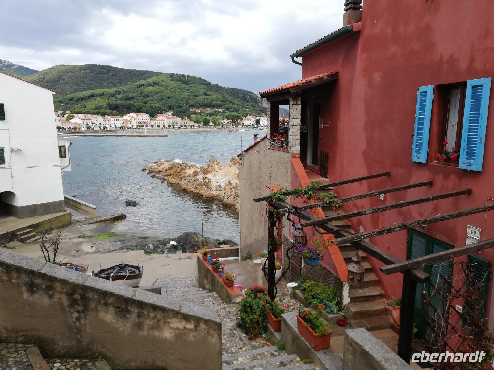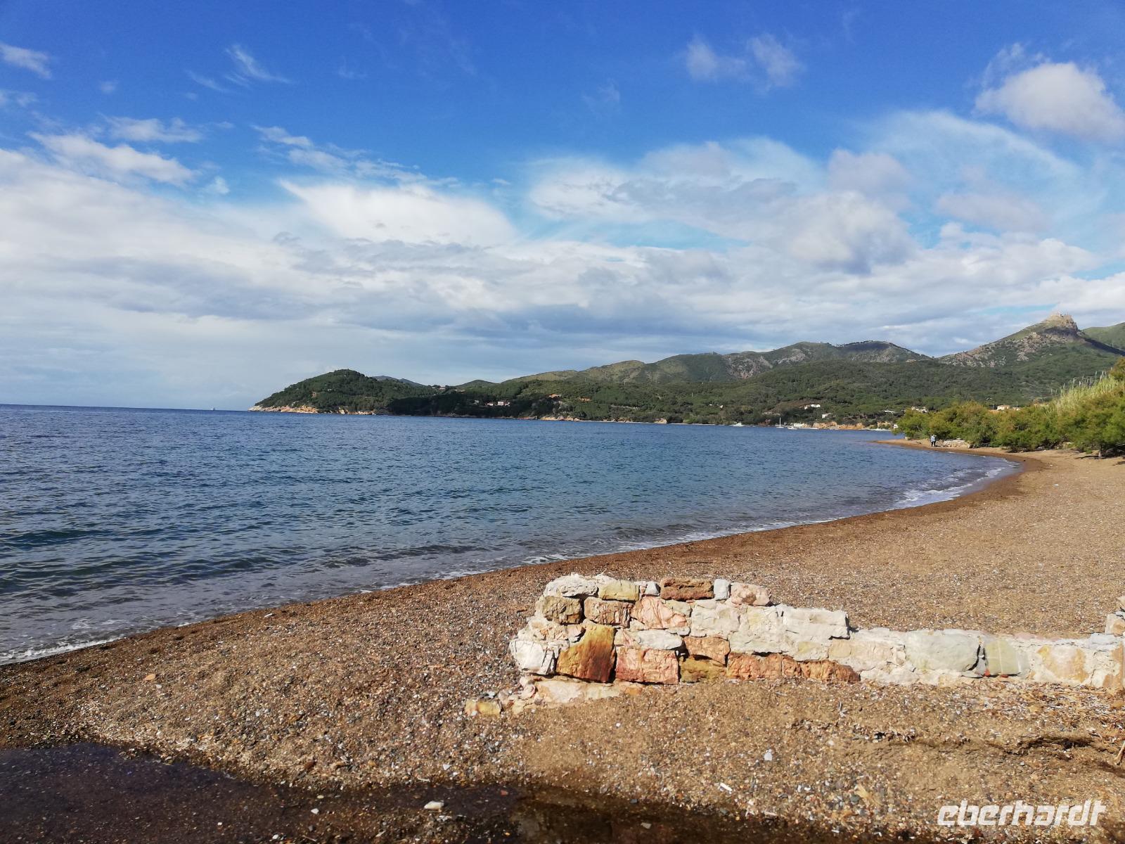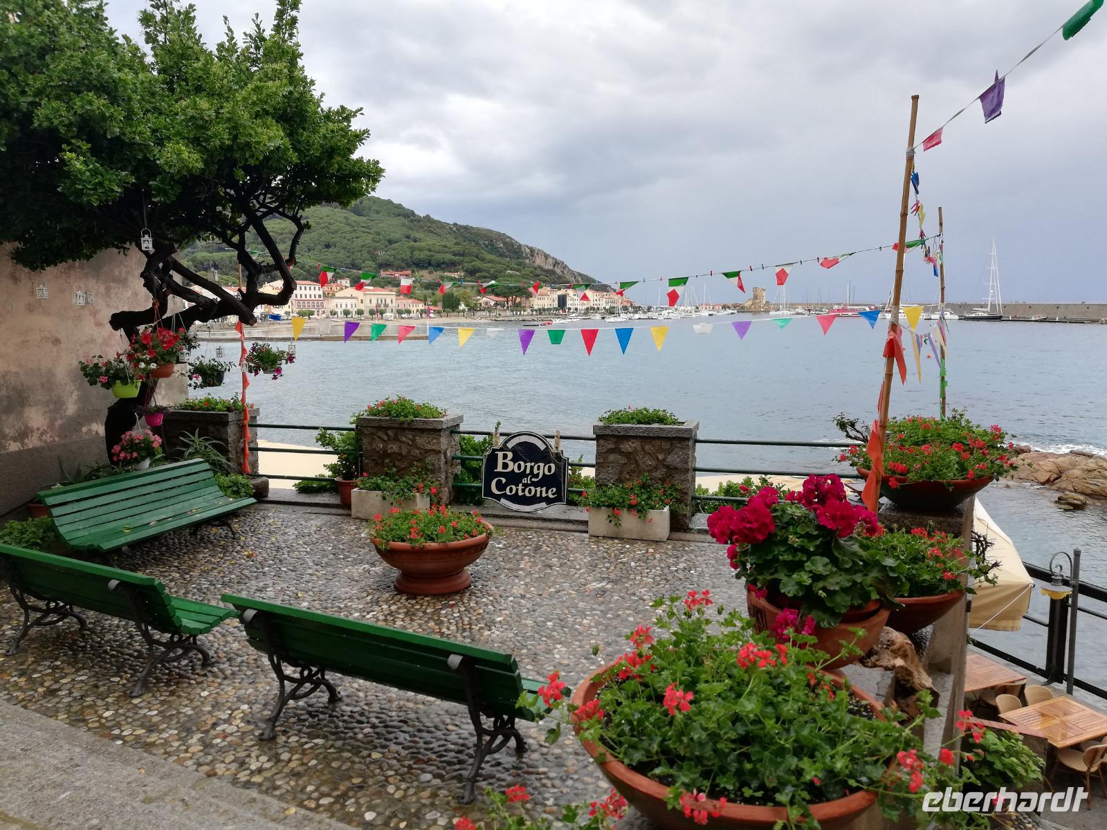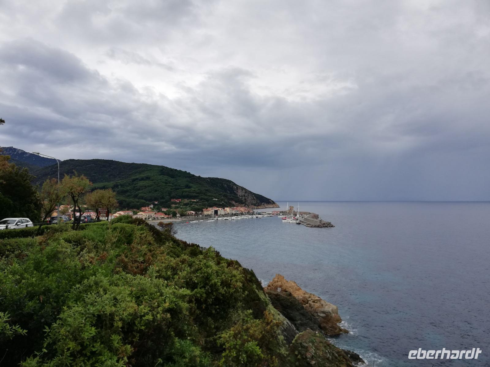Beim ersten Frühstück schauen wir hoffnungsvoll aus dem Fenster und wünschen uns baldigst gutes Wetter. Und siehe da, wünschen hilft! Wir verlassen das Hotel und es regnet nicht. Bevor wir zu unserer Wanderung aufbrechen, versorgen wir uns mit Proviant im nahegelegenen Supermarkt. Zunächst fahren wir zum alten Hafenort Marciana Marina, wo uns unsere Wanderreiseleiterin uns durch diesen kleinen Ort führt. Nach einem beschaulichen Rundgang beginnt unsere Wanderung zur Bucht von Cotoncello. Es ist eine der schönsten Küstenwanderungen auf der Insel Elba. Immer wieder blicken wir das tiefblaue ligurische Meer, und genießen die Ausblicke. Bei einer kleinen Rast bei einer Bucht, stärken wir uns für den 2. Abschnitt. Am frühen Nachmittag erreichen wir die Cotoncello Bucht. Die glatt geschliffenen, weißen Granitfelsen sehen sehr beeindruckend aus. Wir setzen unsere Wanderung fort und nach einem kurzem Stück liegt das Städtchen Sant'Andrea vor uns. Ein winziger Regenschauer begleitet uns bis zum Ort, jedoch verzieht sich dieser und schon während unserer Mittagspause kommt die Sonne zum Vorschein. So genießen wir dem abgeschieden liegenden Ort und lassen die Seele baumeln. Noch einen Kilometer müssen wir bis zu unserem Bus überwinden. Als Belohung unternimmt unser Fahrer noch einen Extra-Ausflug zur Südküste der Insel und zeigt uns die traumhaften weißen Strände. Unser Hotel erreichen wir am späten Nachmittag und freuen uns auf das Abendessen.