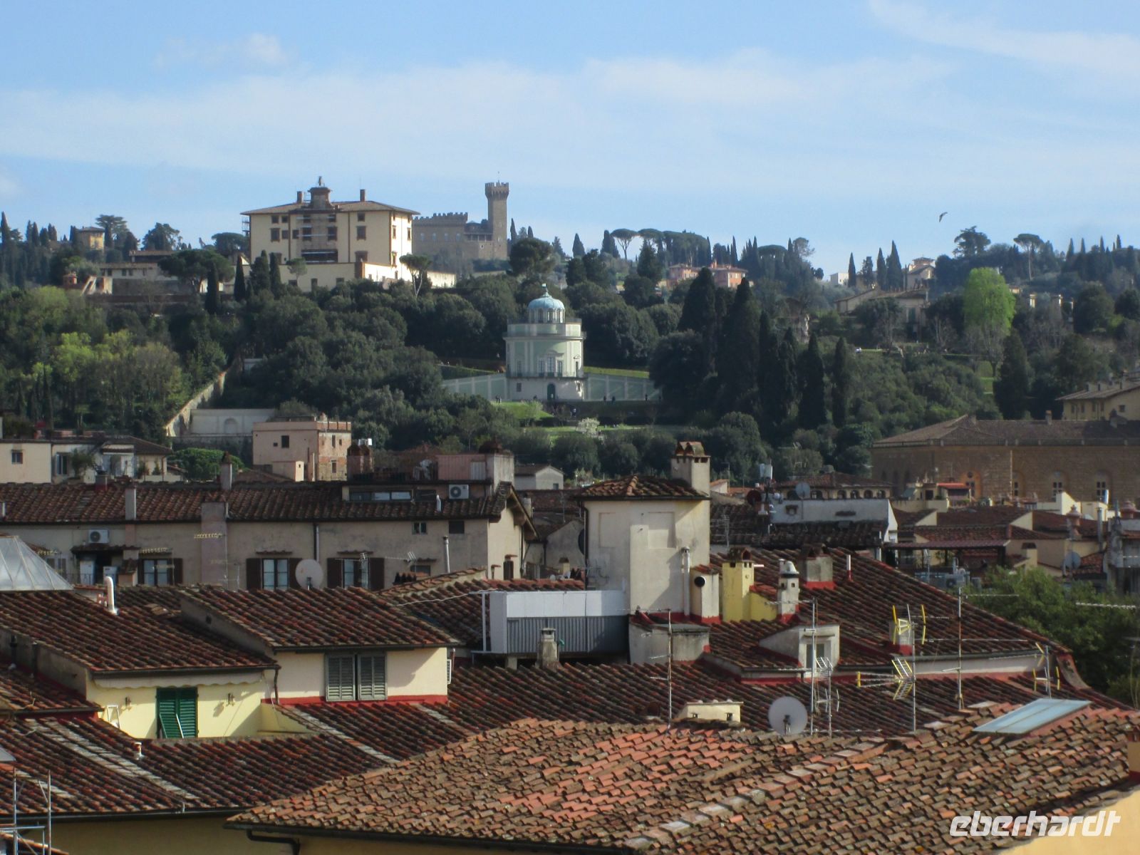 Ich derweil wartete auf unsere Leipzig-Gäste am Hotel, welche endlich auch eintrafen. Die Erleichterung der ersehnten Ankunft war jedem anzumerken. Einer kurzen Begrüßung auf der Dachterrasse des Hotels, folgte das "WOW". Von dieser hatte man nämlich einen herrlichen Blick über die Dächer von Florenz bis in die Ferne zu den Boboli Gärten mit dem Forte Belvedere. Der Dom/Campanile/Baptisterium-Komplex war zum Greifen nah. Zudem konnte man sehr gut Palazzo Vecchio, Bargello und Santa Croce sehen. Man war endlich in Florenz - Benvenuti!