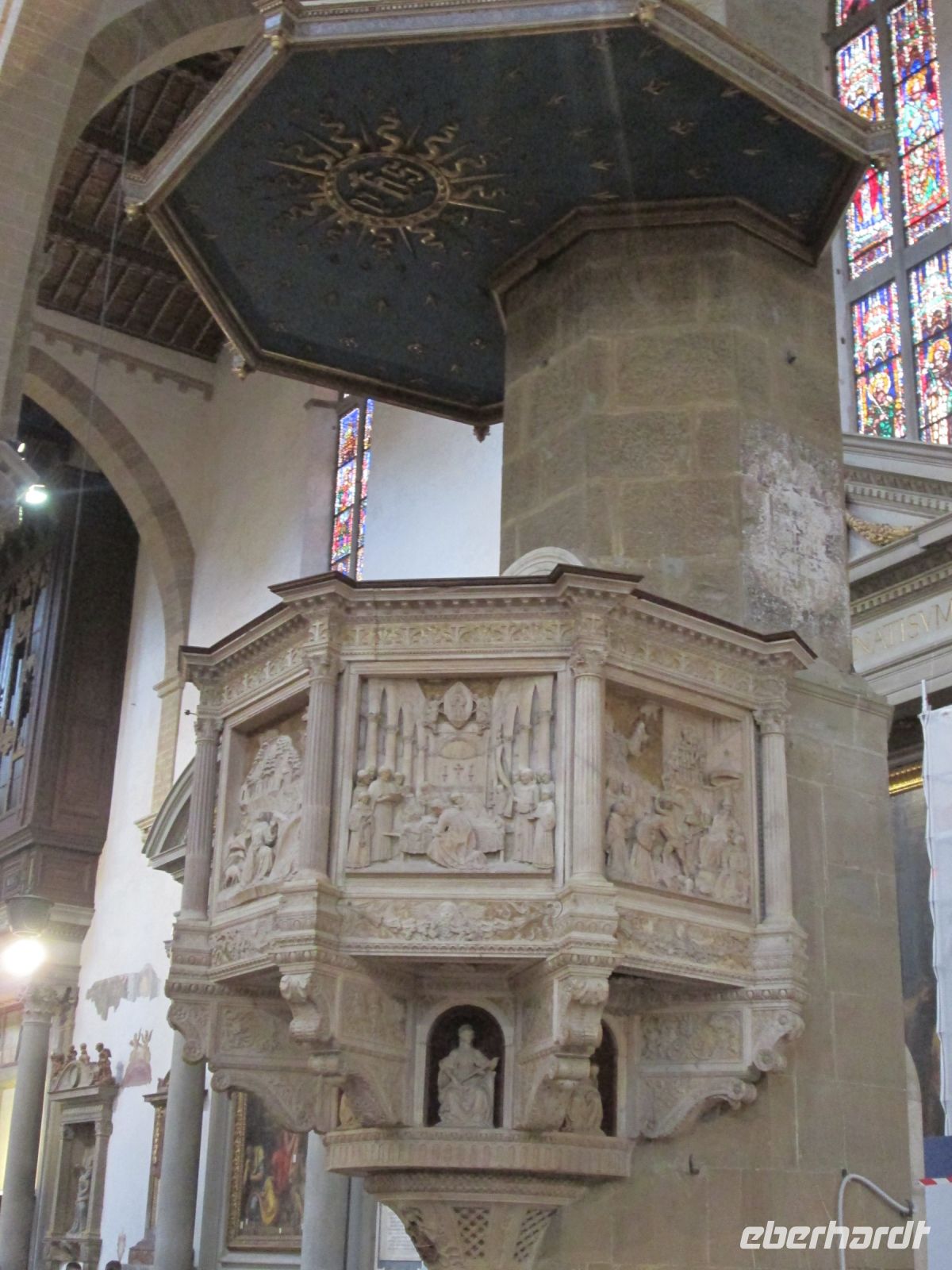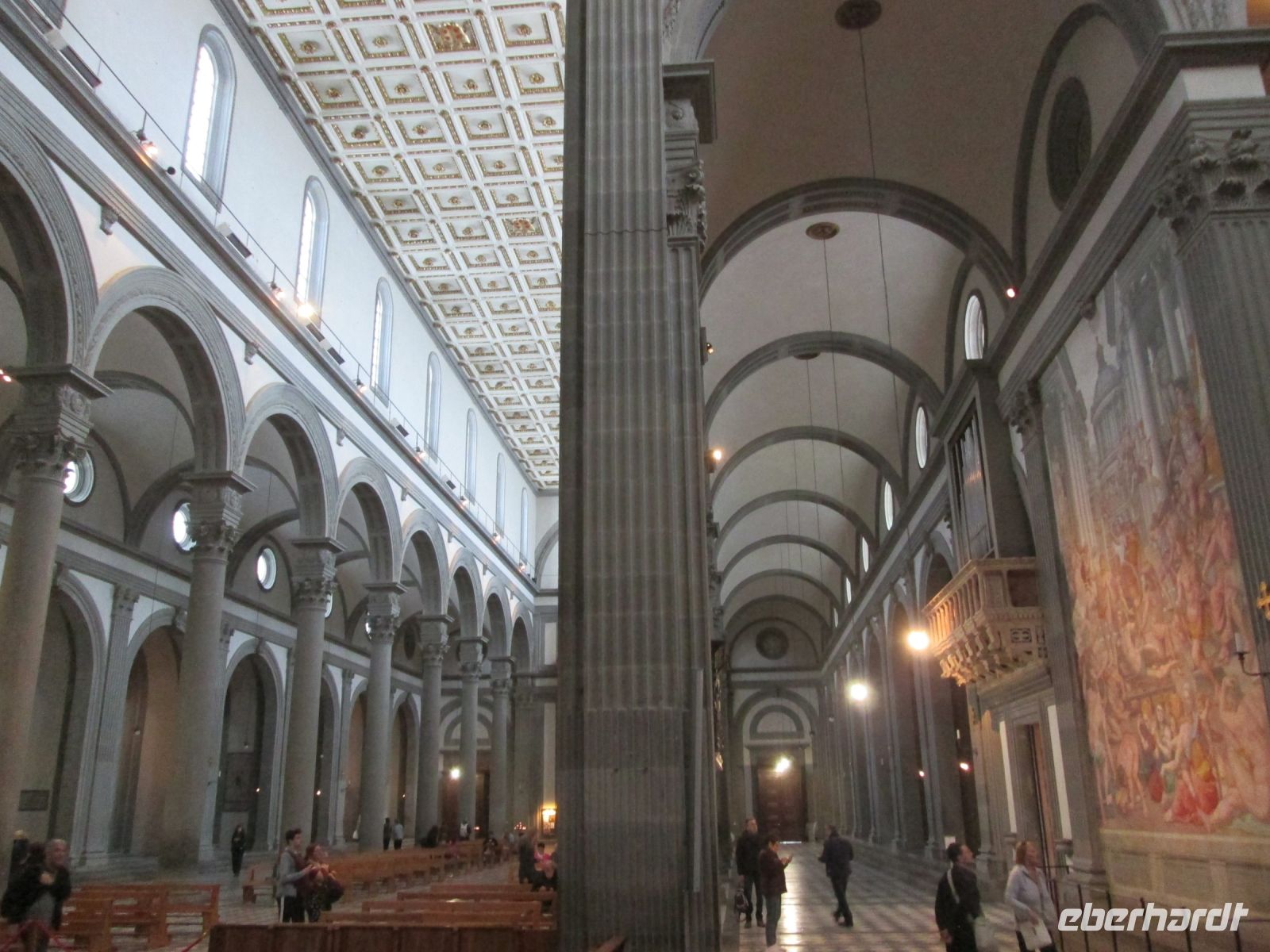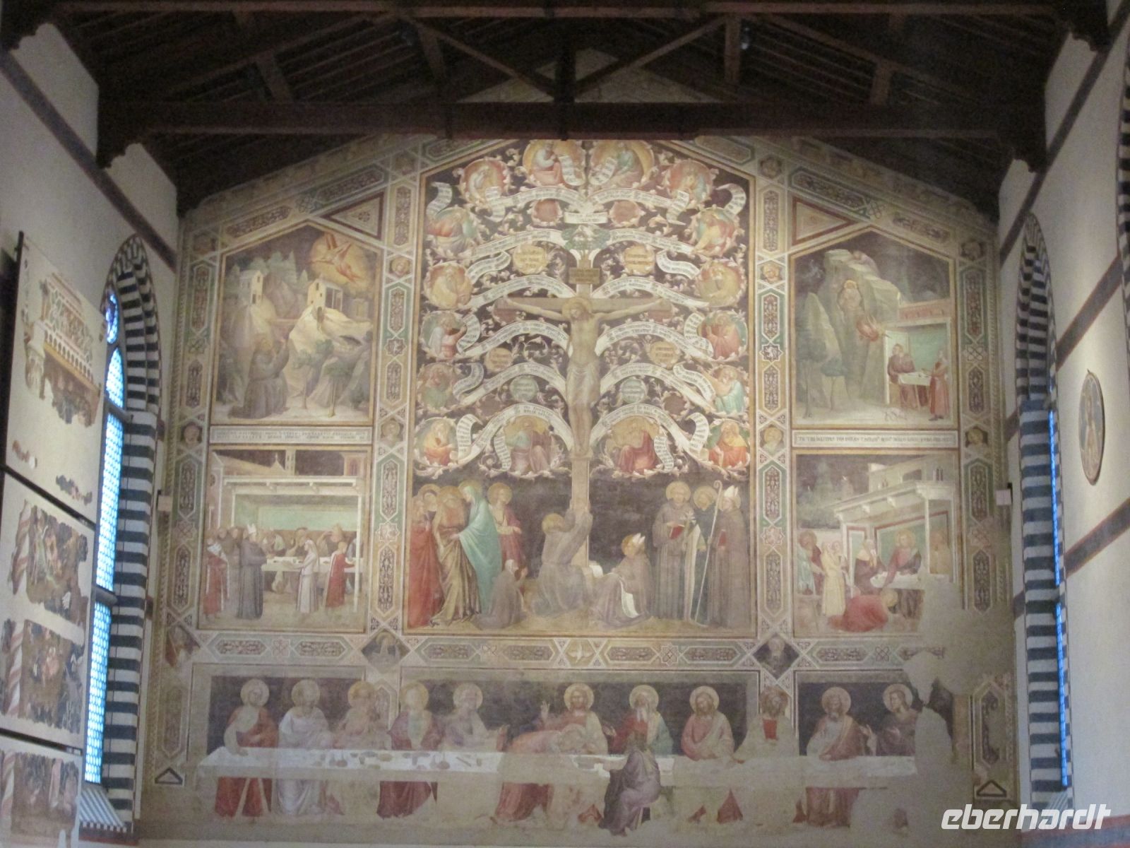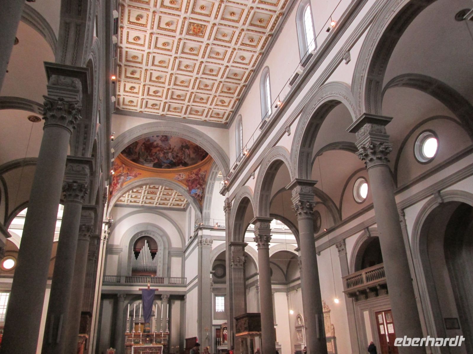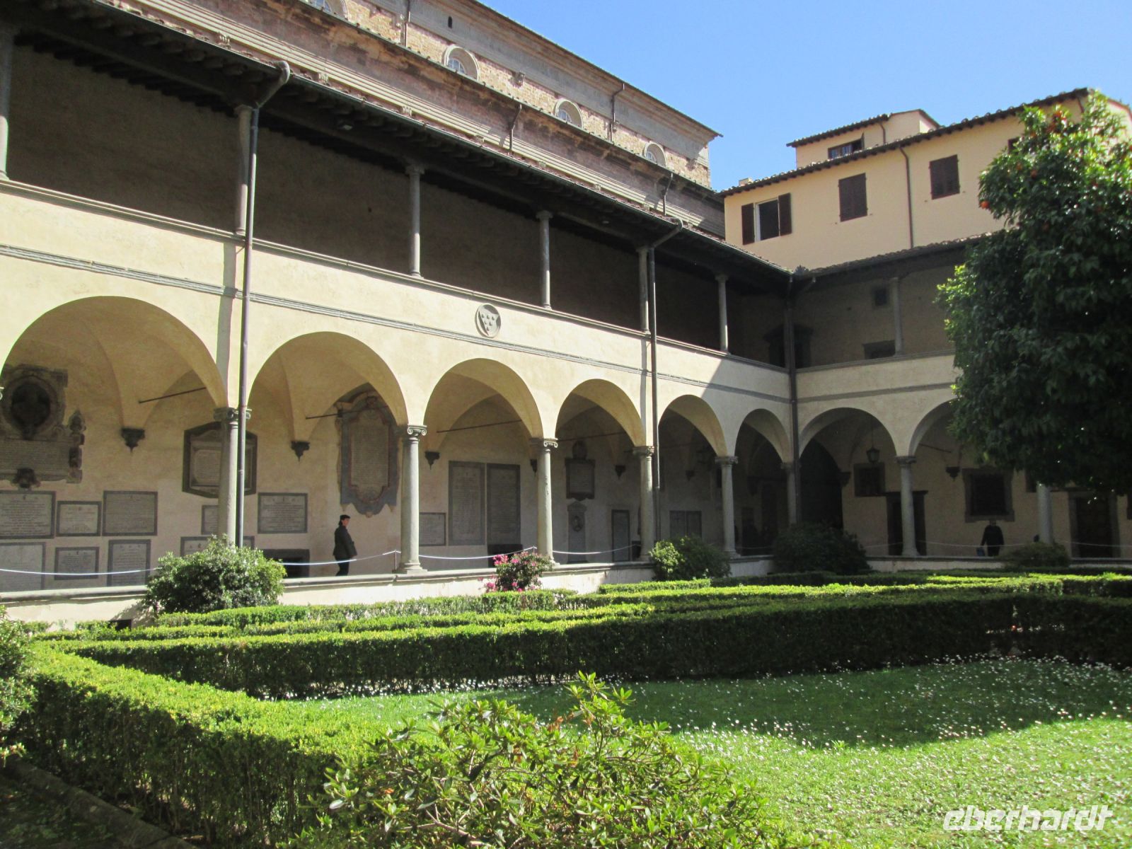 Cimabues Kreuz aus dem 13. Jahrhundert, welches leider durch das verheerende Hochwasser Anfang November 1966 stark beschädigt wurde, ist ebenso sehenswert wie die Cappella Pazzi. Die Familie Pazzi gab Filippo Brunelleschi den Auftrag zur Gestaltung dieser Kapelle, an der er bis zu seinem Tod arbeitete. Leider wurde sie nie fertig gestellt, so dass sie eher streng wirkt. Aber mit ihr haben wir heute ein wunderbares Beispiel der Frührenaissance-Architektur.