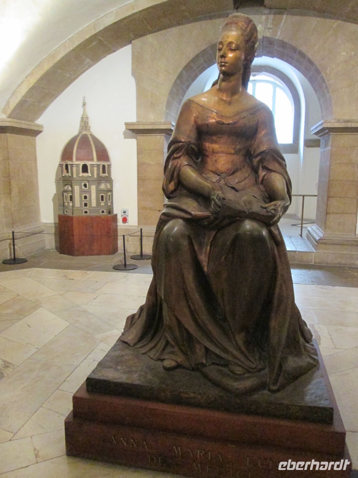 Schon früh befand sich unsere Gruppe am Seiteneingang der Kirche San Lorenzo. Sie besteht aus mehreren Teilen, dem eigentlichen Gotteshaus, der Alten und Neuen Sakristei und der Fürstenkapelle. Gleich hinter dem Eingang "begrüßte" uns Anna Maria Luisa de' Medici. Sie war die letzte kinderlose Dame des Florentiner Geschlechts und veranlasste das alle Kunstschätze in Florenz bleiben sollten. So können alle Besucher sich bis heute an der einzigartigen Kunst erfreuen.