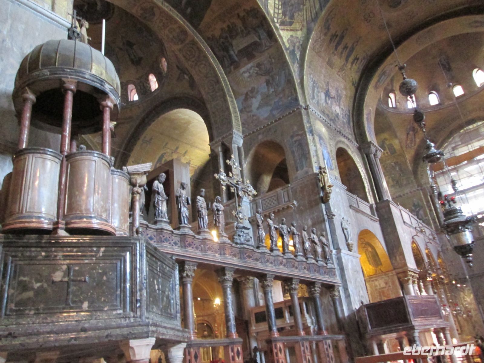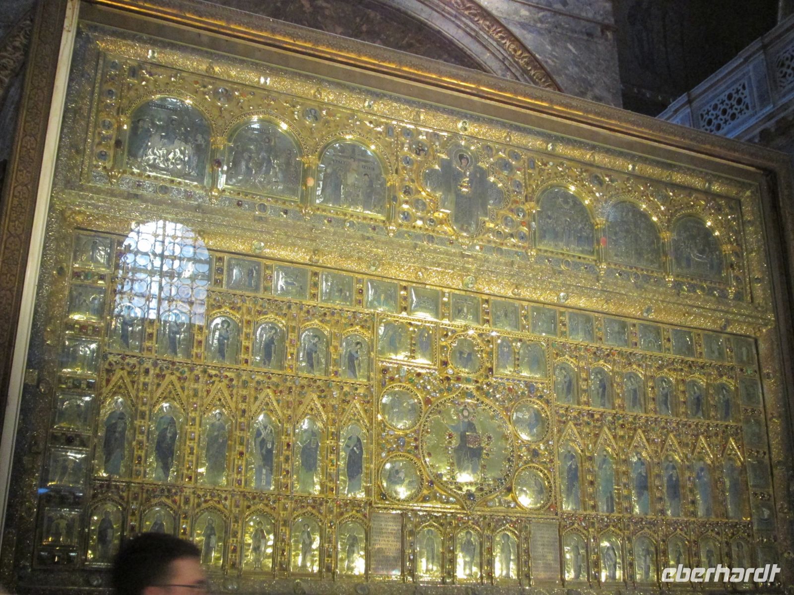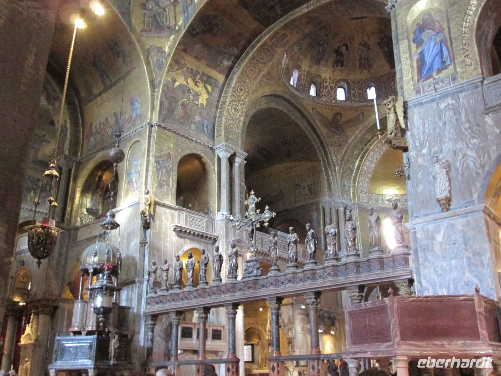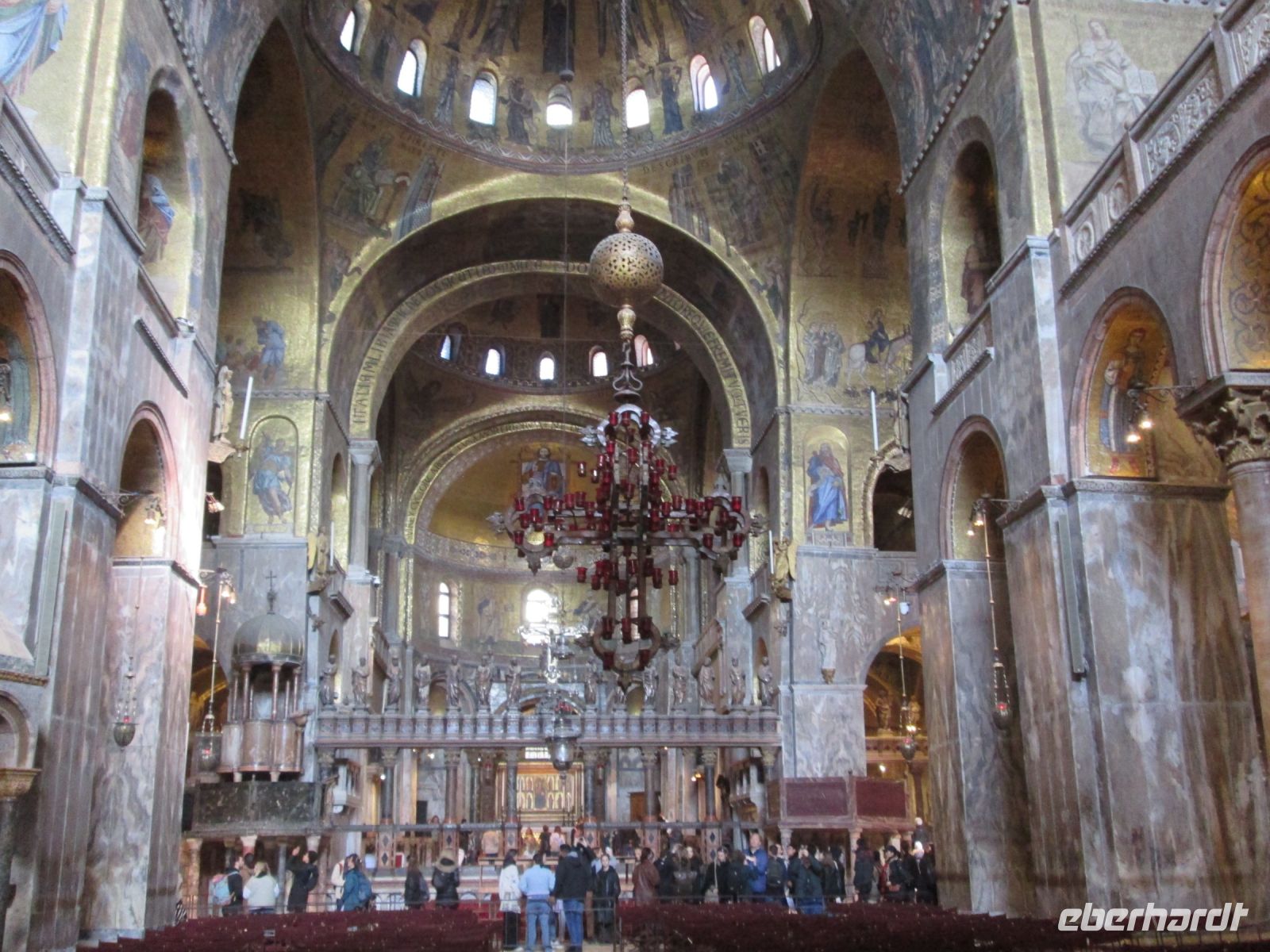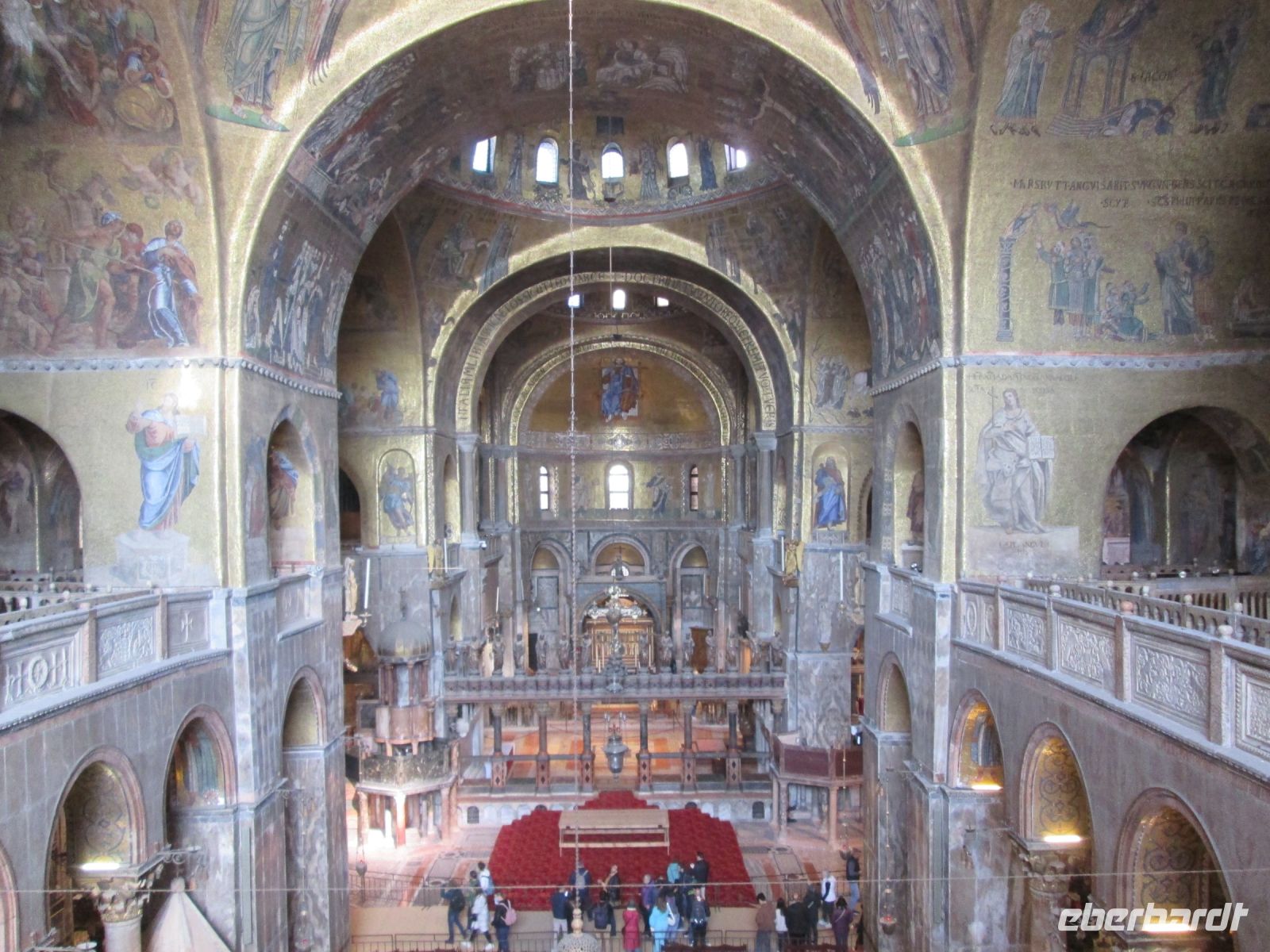 Das Innere wird mit der Ikonostase, der Pala d'Oro aus Gold und Edelsteinen und unvergleichbaren Mosaiken ausgestaltet und einzigartig verschönert.