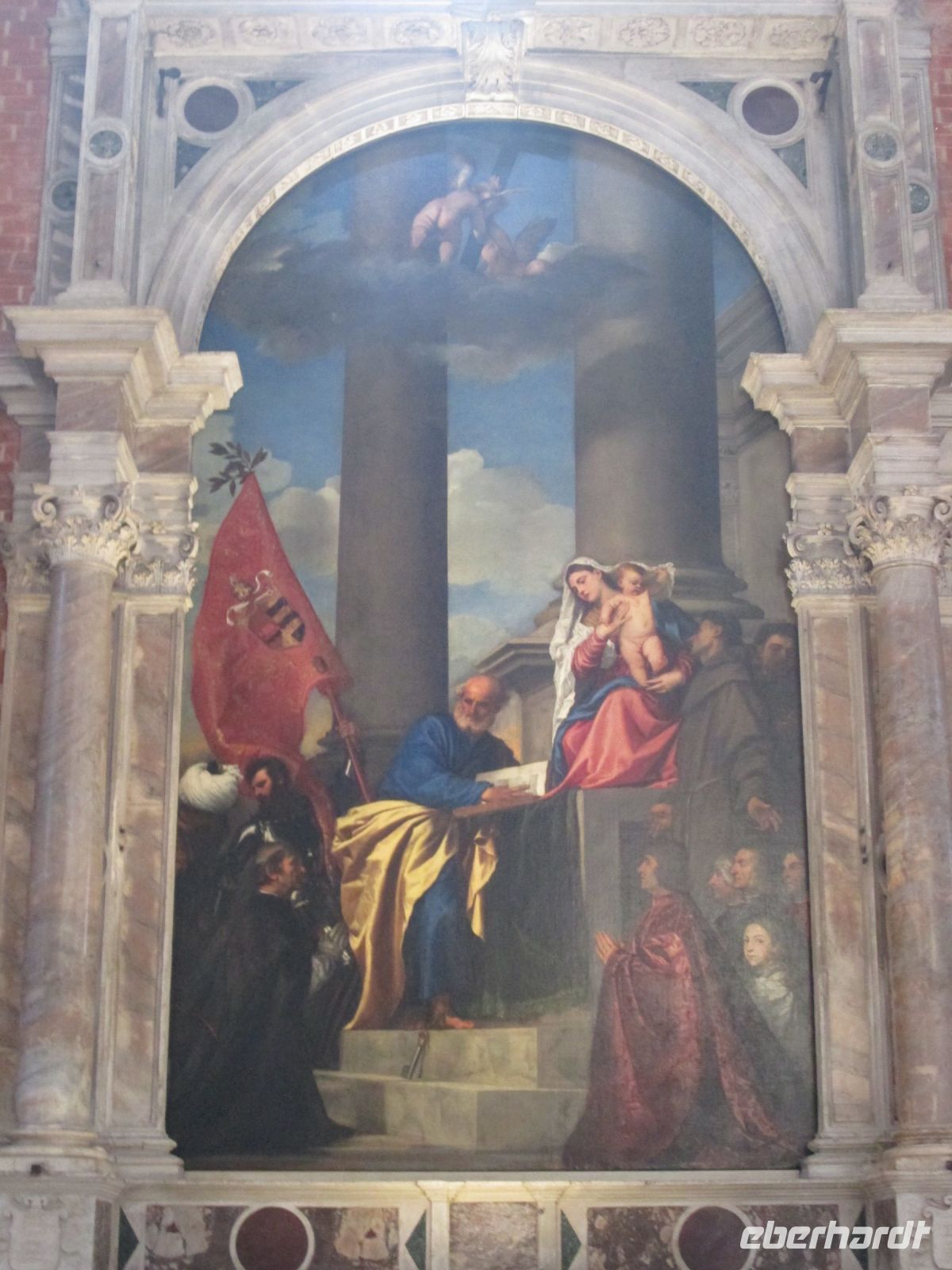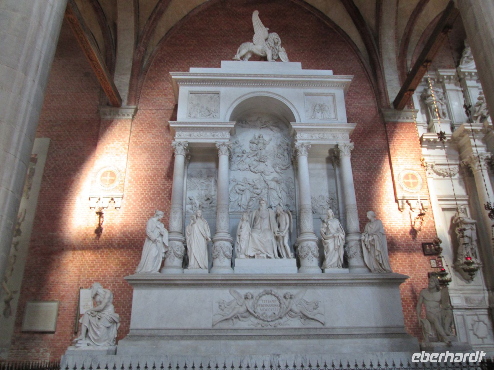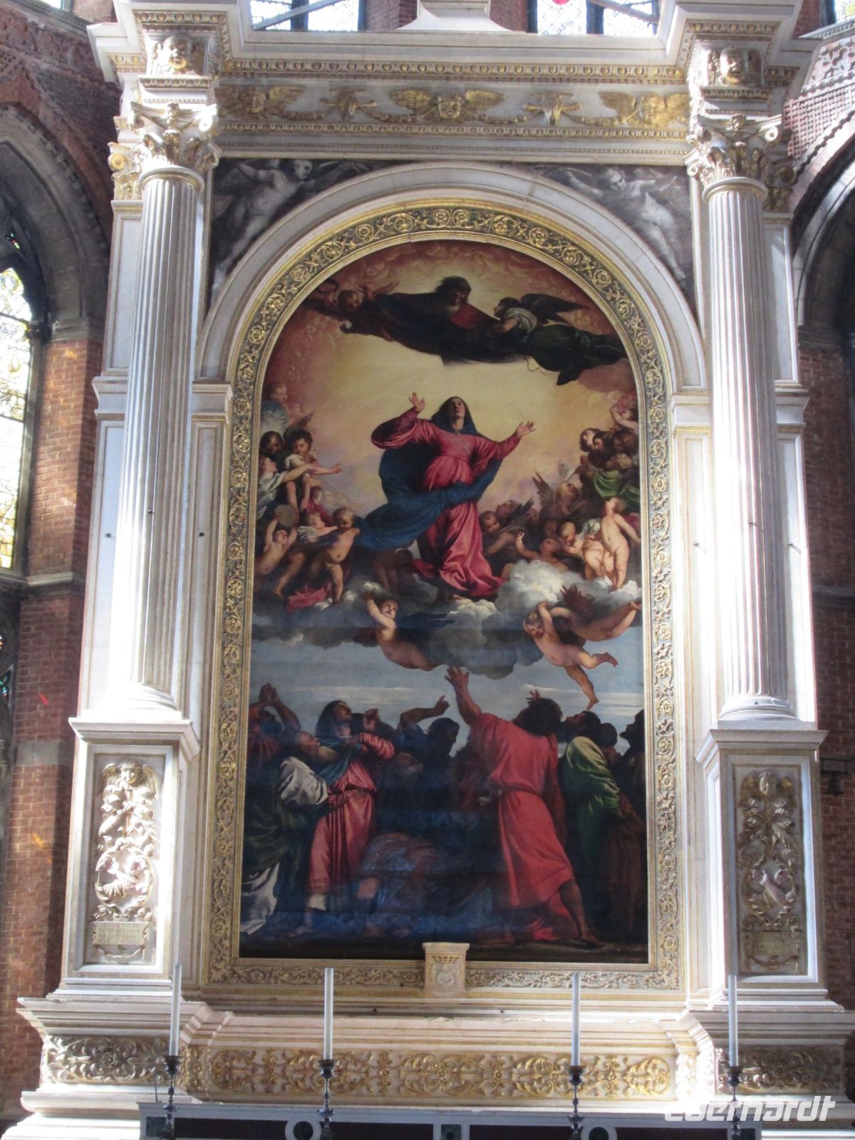 Gegenüber findet man Tizians letzte Ruhestätte. Er soll jedoch nicht in dem riesigen Mausoleum ruhen, sondern neben diesem, unter einer schlichten Grabplatte. Der geniale Künstler hinterläßt zudem den vielen Besuchern dieser Kirche ein Meisterwerk, die "Himmelfahrt Mariens" am Hauptaltar.