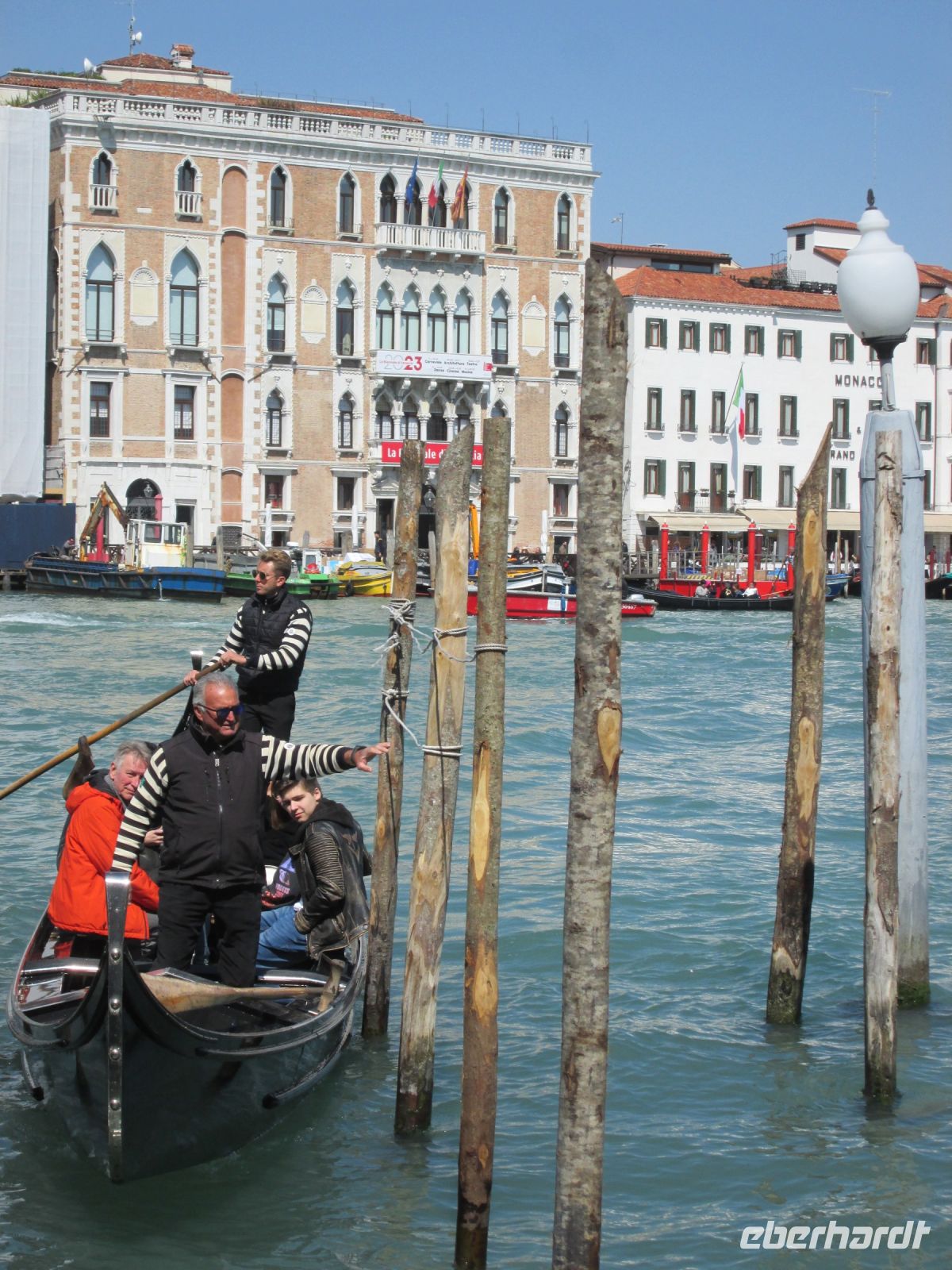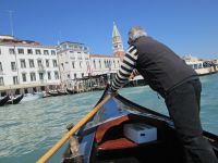 Ein Fortbewegungsmittel der besonderen Art sollte diese Tagestour zum Abschluss noch verschönern. Hatten wir bisher das Linienschiff und das Privatboot genutzt, kam nun die Gondel hinzu. Über den Kanal fuhren wir mit dem Traghetto. Maximal 12 Personen werden schnell und günstig über den Kanal von 2 Gondolieri befördert. Da es nur 3 Brücken über den Canal Grande gibt, nutzen auch die Venezianer gern diese Querverbindung.