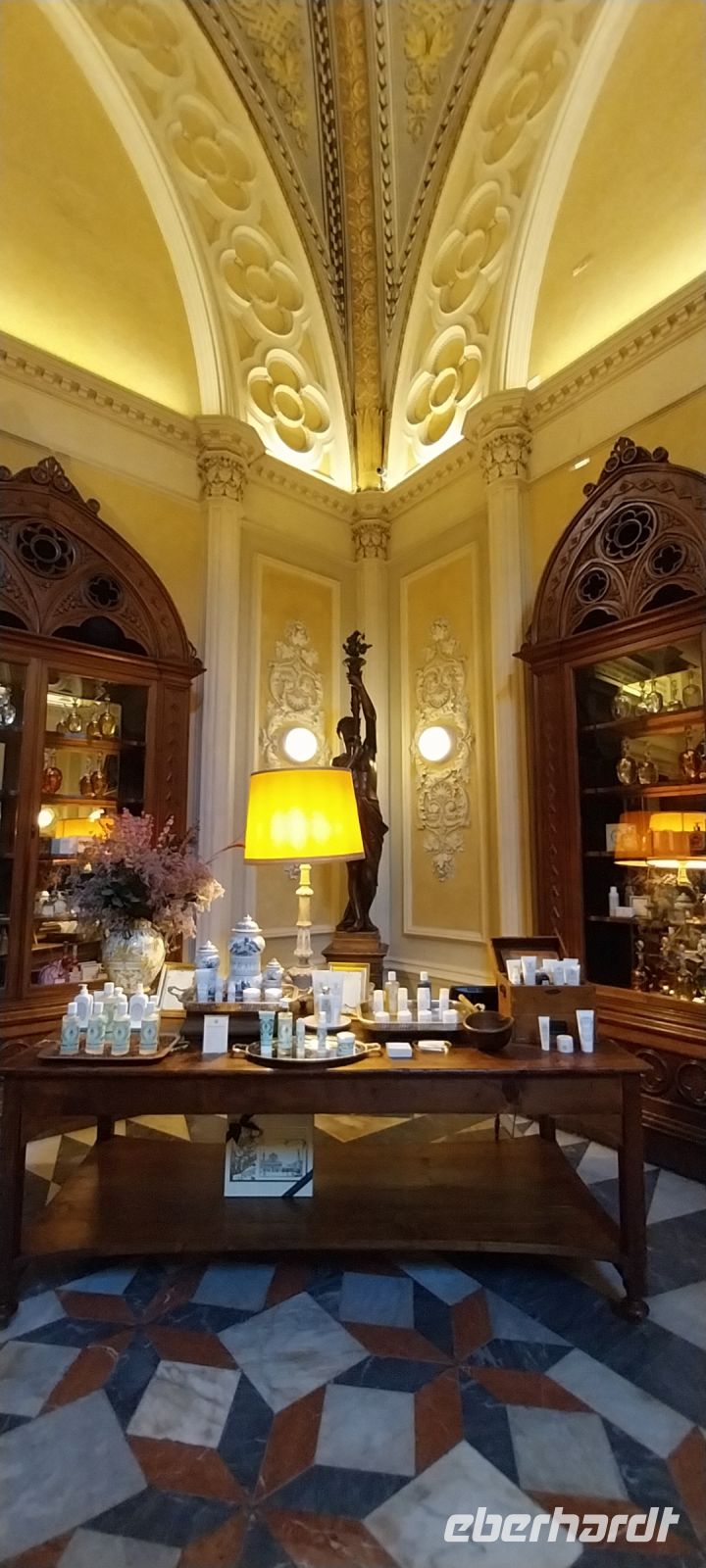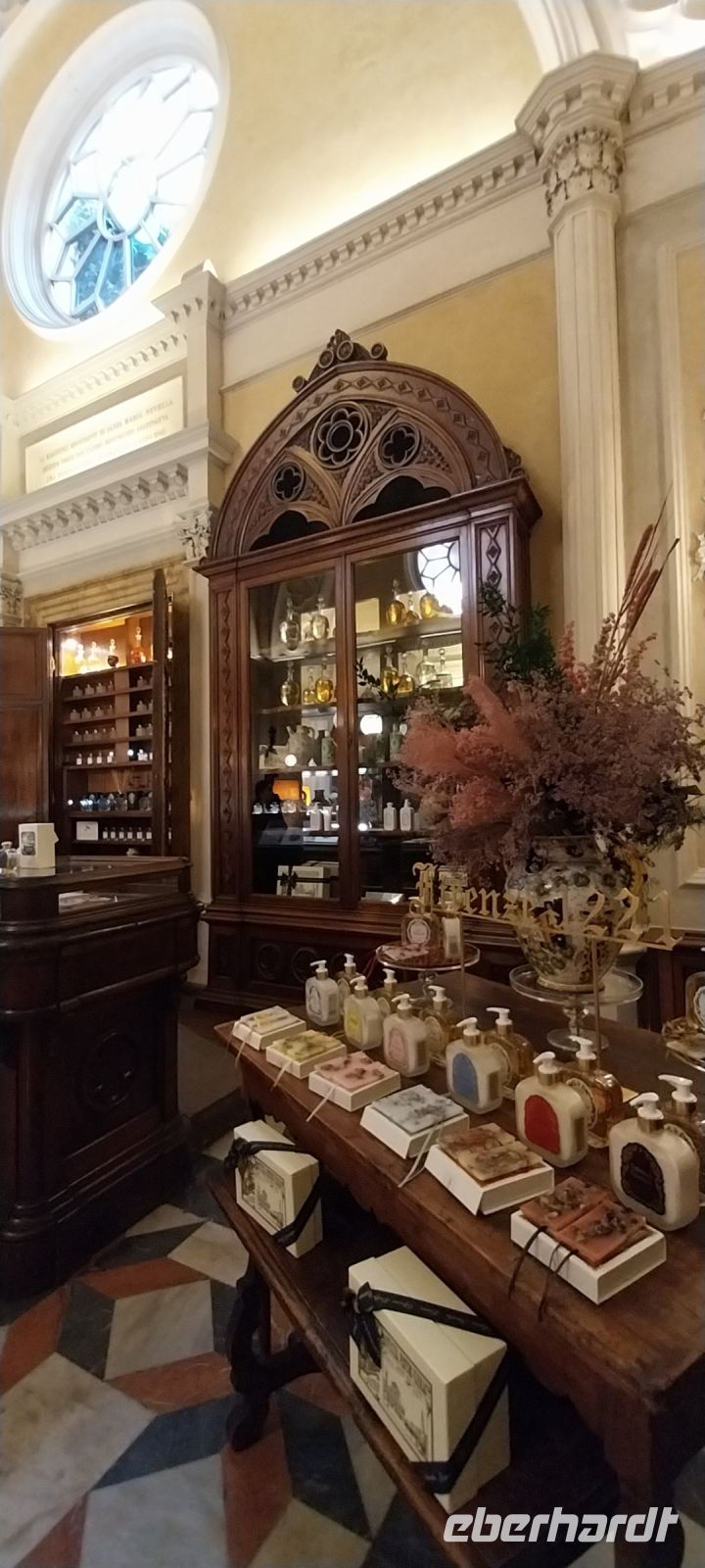 Unser Hotel, das "Croce di Malta" lag im Stadtbezirk Santa Maria Novella. Die gleichnamige Kirche, erbaut von den Dominikanern, ist bis heute ein Juwel der Romanik und Gotik. Zum Kirchenkomplex gehören noch ein Museum mit Kreuzgang und freskengeschmückter Kapelle, sowie in einiger Entfernung, eine Apotheke, derer wir einen Besuch abstatteten. Schon am Eingang konnte man herrliche Düfte verschiedenster Essenzen aufnehmen. Die Apotheke soll bereits Anfang des 13. Jahrhunderts von den Dominikanern gegründet worden sein, weil sie für ihre, dem Kloster angeschlossene Krankenstation, Medikamente benötigten. Bis heute dient sie tatsächlich als Apotheke, aber auch jeder Nicht-Kranke kann sich dort ein Duftwässerchen oder ein Parfüm herstellen lassen.