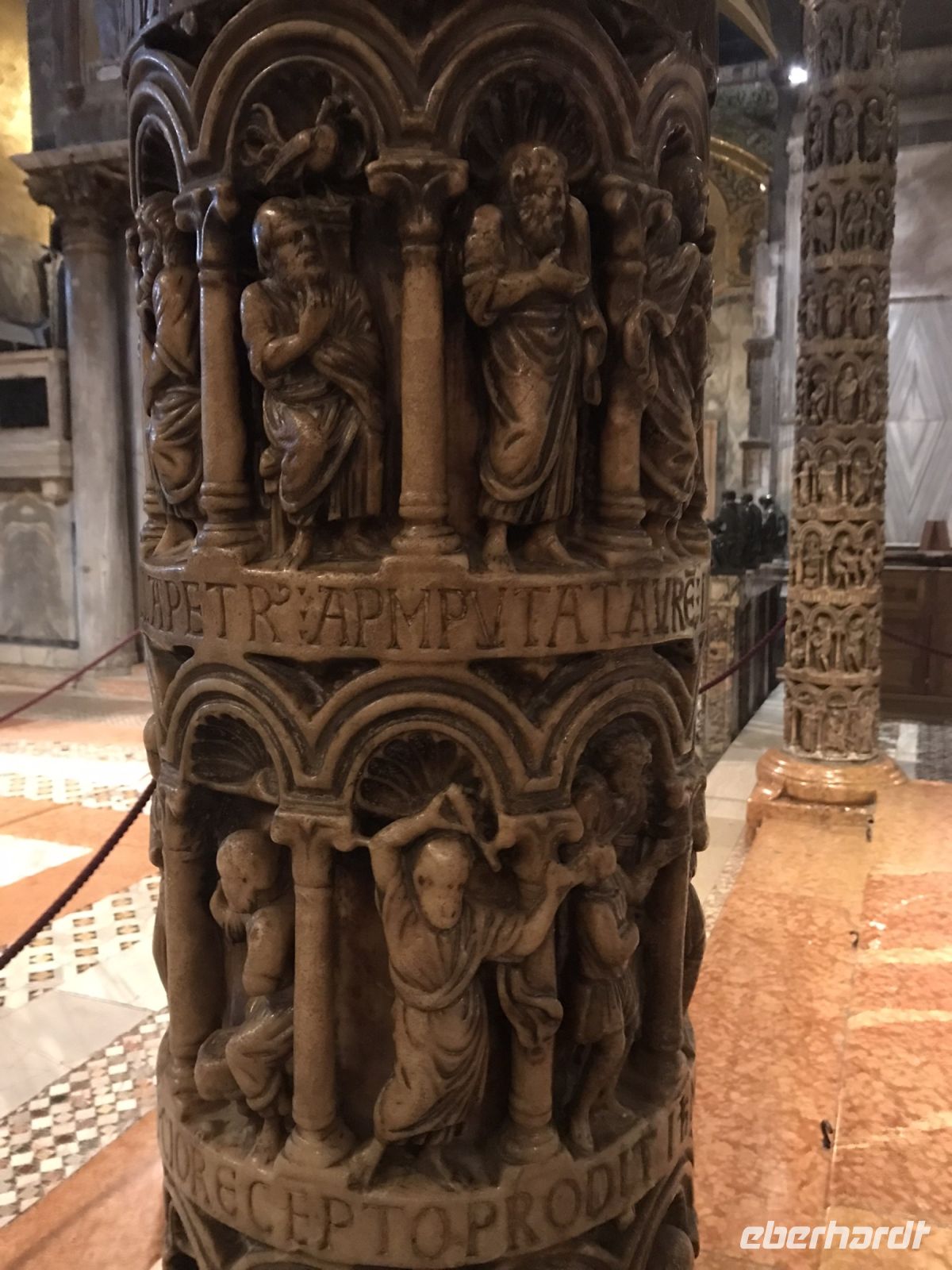Wie de Mosaiken des Markusdoms wohl schimmern, wenn das Innere erleuchtet wird? Auch aus der Ferne sind sie eine Augenweide und Kostbareit. Es hat durchaus sein Gutes, dass die Gebeine des Heiligen Markus von den venezianischen Kaufleuten vor vielen Jahrtausenden in Alexandria geklaut worden sind. Wie sonst hätte man heute eine so prachtvolle Kirche.
