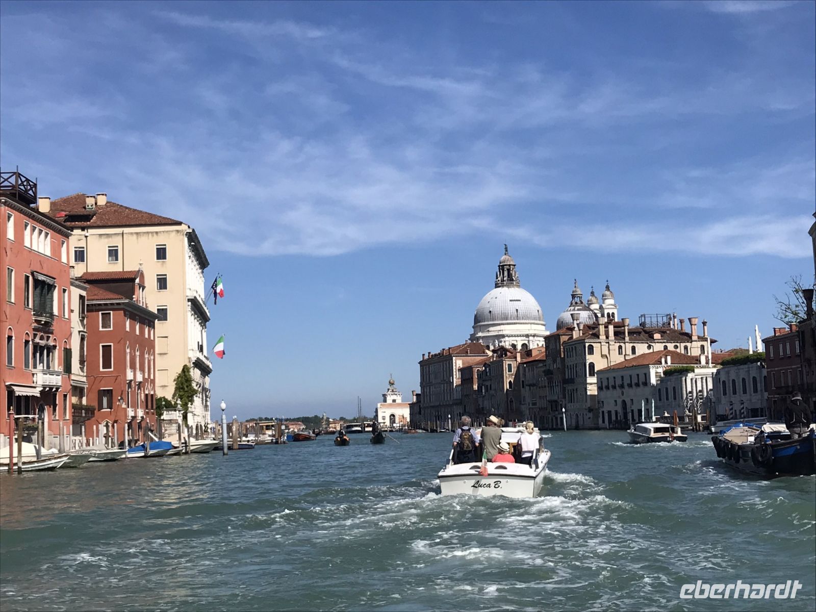 Schnell wie ein Pfeil fahren die Züge von Trenitalia, wir nehmen die Frecciarossa und kommen nach etwas mehr als zwei Stunden Fahrt in der Lagunenstadt Venedig an. Hier ist alles anders, Straßen heißen nicht Via sondern Rio oder Calle, unser Taxi zum Hotel ist kein Auto oder Bus, sondern ein Boot. Anlegestelle Accademia. Statt Brötchen isst man hier Cicchetti und das Getränk dazu heißt ombra. Das probieren wir gleich in einer der Gassen nahe unseres Hotels aus, das Eis zum Nachtisch heißt Creme Chantilly und schmeckt köstlich.