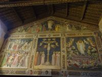 Von oben ging es dann hinunter in den Bardini-Garten, dann weiter zur Kirche Santa Croce. Hier erklärte Angela zunächst die Baugeschichte, auch die Veränderungen, die das Gebäude durch Reformation und Gegenreformation erfahren hatte, zeigte uns die Grabmäler von Michelangelo, Galileo Galilei und Dante, machte auf die Werke von Giotto und Donatello aufmerksam. Wir sahen die Sakristei, den Kreuzgang und auch das Refektorium des Klosters mit seinen herrlichen Wandmalereien und der beeindruckenden Holzdecke.