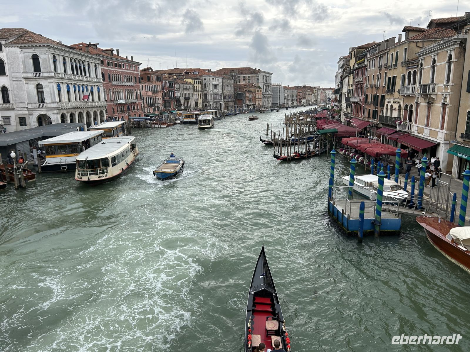 Am Nachmittag warteten unser Gästeführer Massimo und wieder zwei Wassertaxis, diesmal für eine filmreife Fahrt durch den Canal Grande: Palazzi wie aus der Zeit gefallen, unter der Rialtobrücke hindurch bis zum Markusplatz – das Herz der Serenissima.