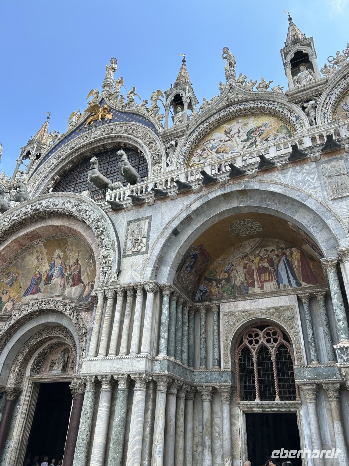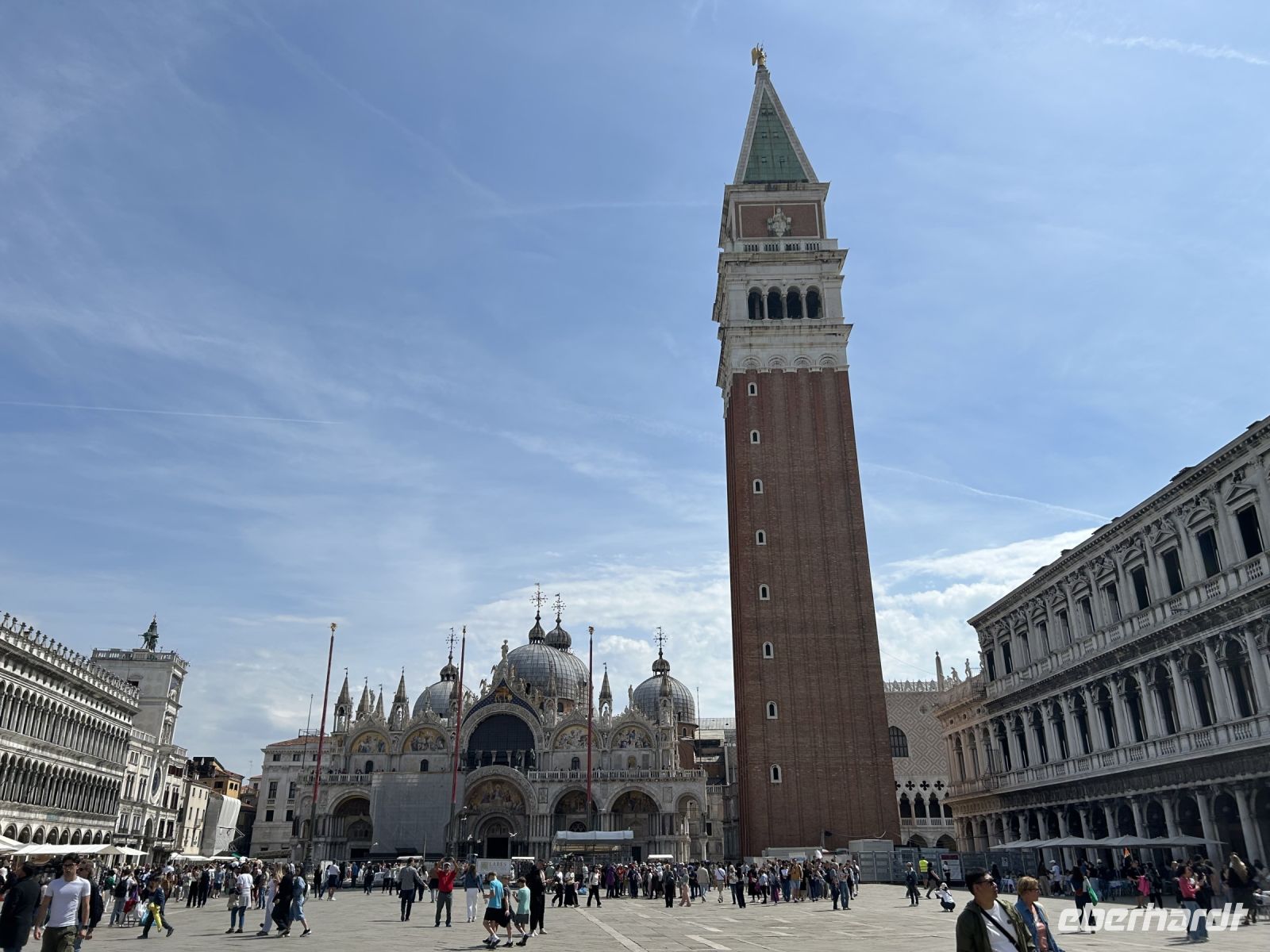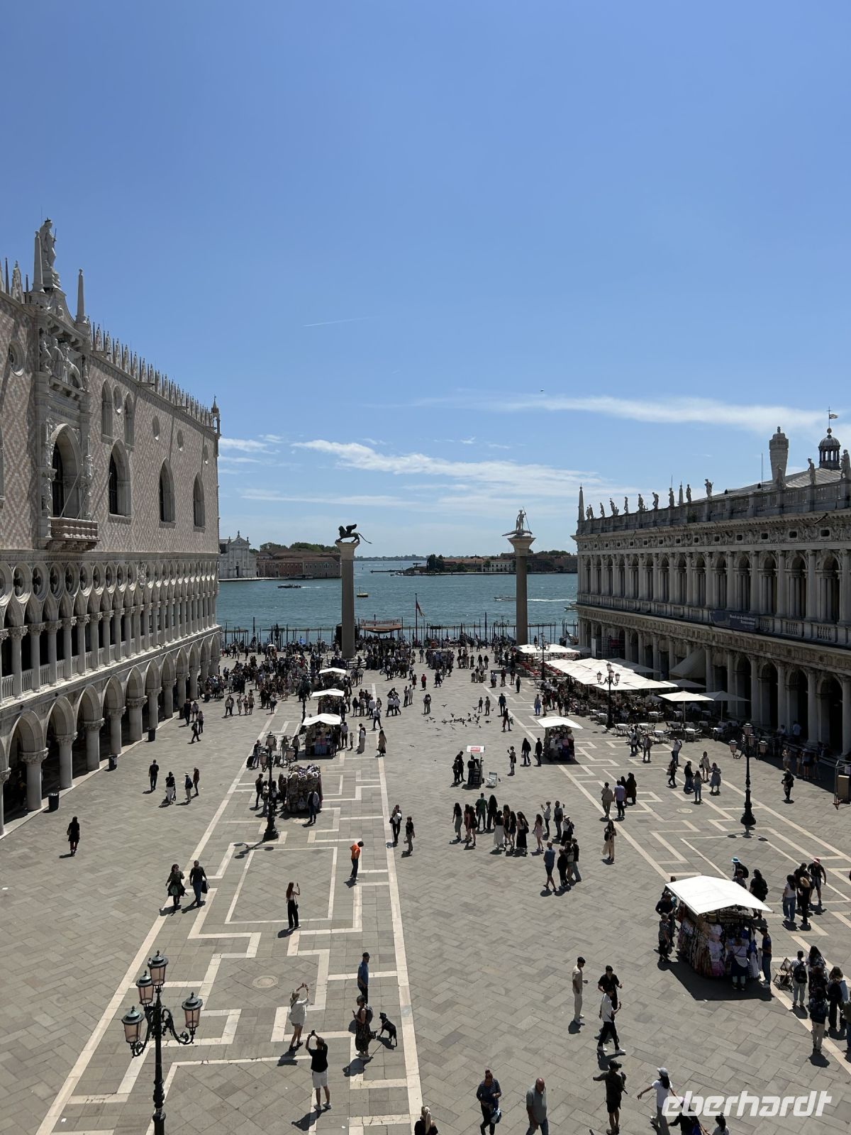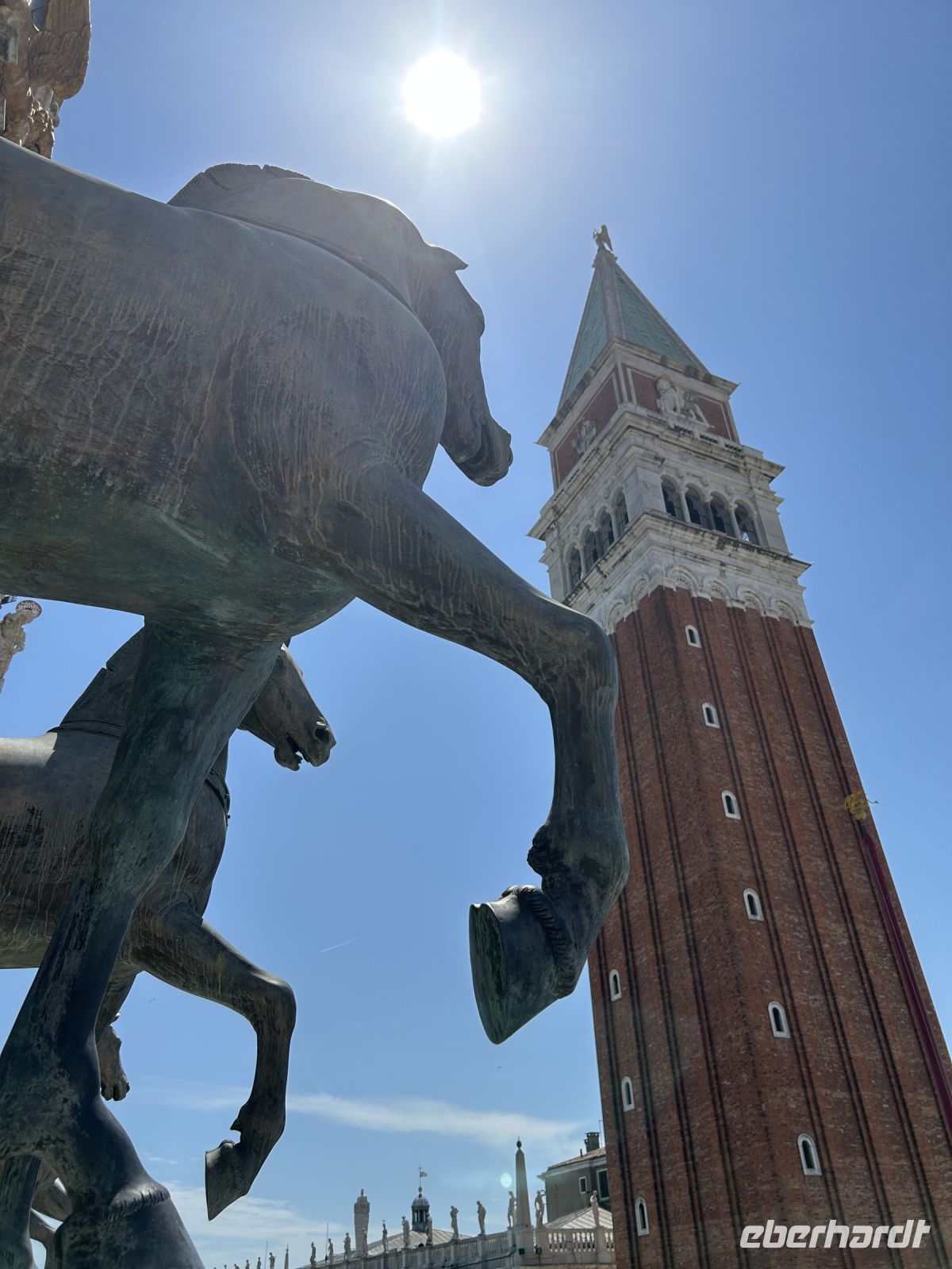 Dort nahm uns Massimo mit in die Geschichte: die zwei Säulen mit den Symbolen der Stadt, der gewaltige Dogenpalast, der Uhrenturm mit seinem mechanischen Wunderwerk – und natürlich der majestätische Markusdom.