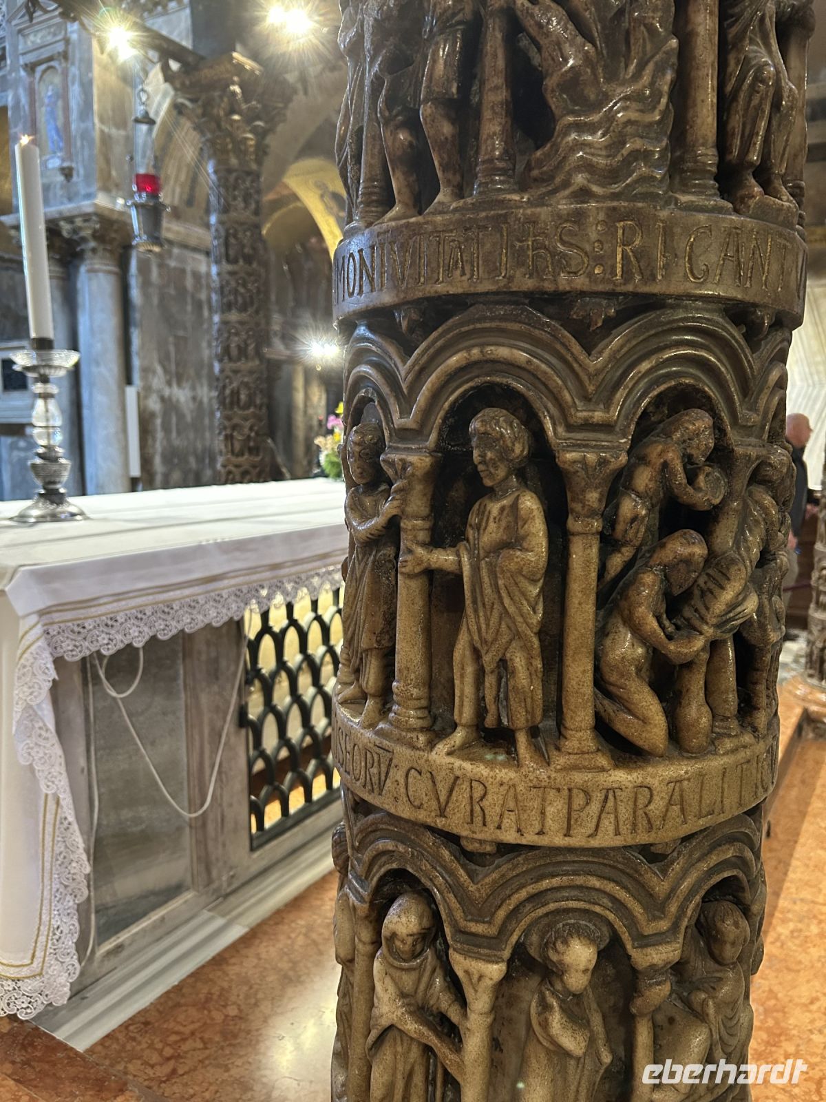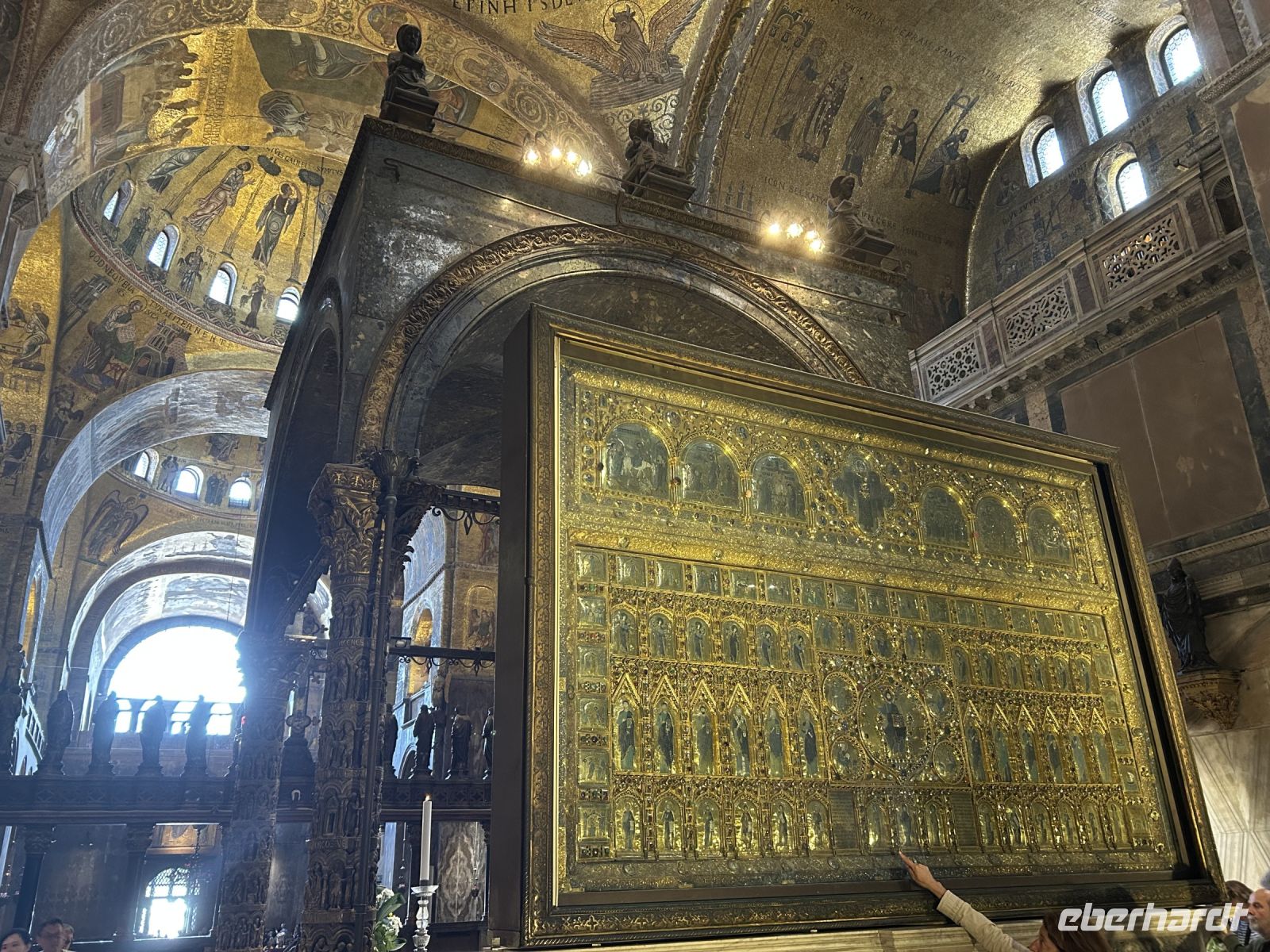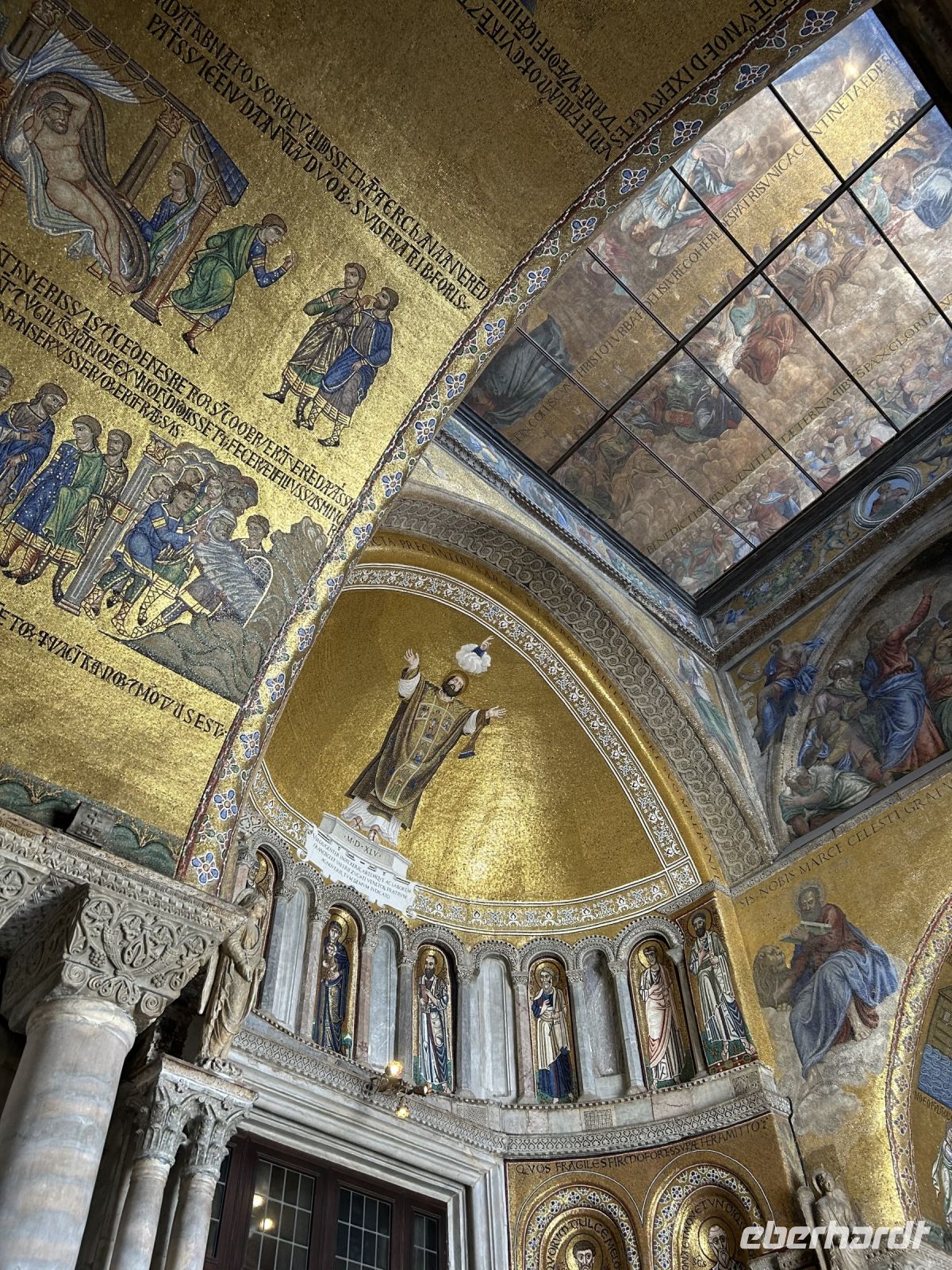 Nach einer kleinen Pause auf dem lebhaften Markusplatz setzten wir unsere Erkundung im Markusdom fort. Bereits beim Betreten der Basilika waren wir überwältigt von den goldenen Mosaiken, die die gesamte Decke und Wände schmückten und im Licht funkelten wie ein himmlisches Feuerwerk. Besonders fasziniert hat uns die Pala d’Oro, die prächtige Altarwand aus massivem Gold, reich verziert mit unzähligen Edelsteinen. Im Dommuseum bewunderten wir die originalen bronzenen Pferdestatuen aus der Antike, die einst Konstantinopel schmückten, bevor sie hierher gelangten. Höhepunkt war jedoch zweifelsohne der Ausblick von der Loggia dei Cavalli, wo wir – genau wie die Protagonisten in „Inferno“ – einen atemberaubenden Blick auf den Markusplatz und das geschäftige Treiben darunter genießen konnten.