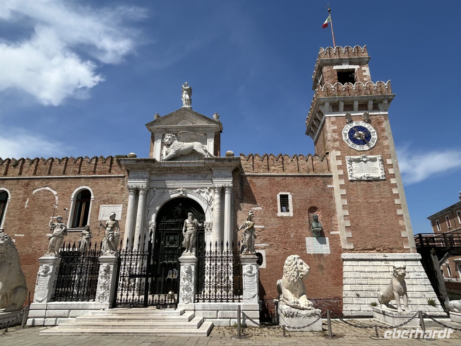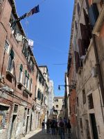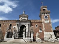 Am Nachmittag entschieden sich einige unserer Reisegruppe für individuelle Unternehmungen. Doch die meisten folgten begeistert Manuela durch das authentische Venedig, weit weg von den Touristenpfaden. Hier, wo tatsächlich die Venezianer leben, atmeten wir den wahren Geist der Stadt ein. Wir spazierten gemütlich durch stille Gassen, vorbei an versteckten Plätzen und pittoresken Häusern – manchmal schien es fast, als würden wir plötzlich Kommissar Brunetti höchstpersönlich begegnen. Manuela füllte unseren Spaziergang mit spannenden und charmanten Erklärungen, bis wir schließlich das beeindruckende Gelände des Arsenale erreichten.