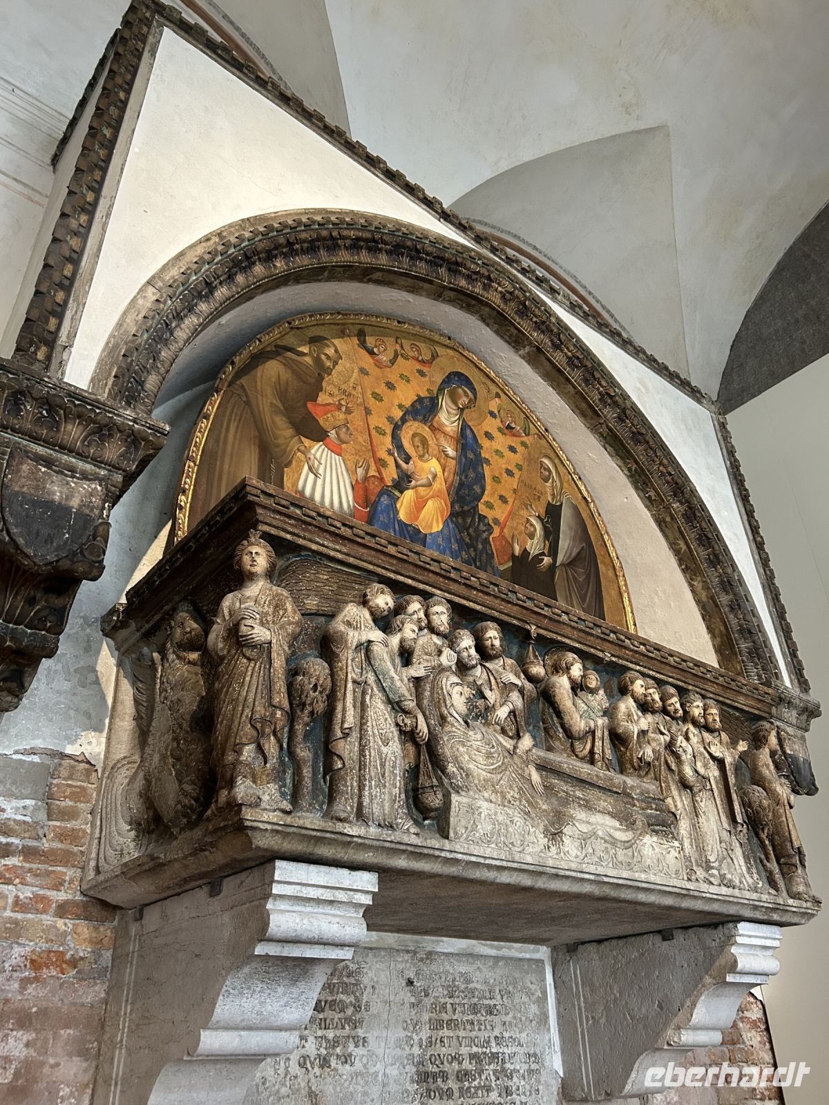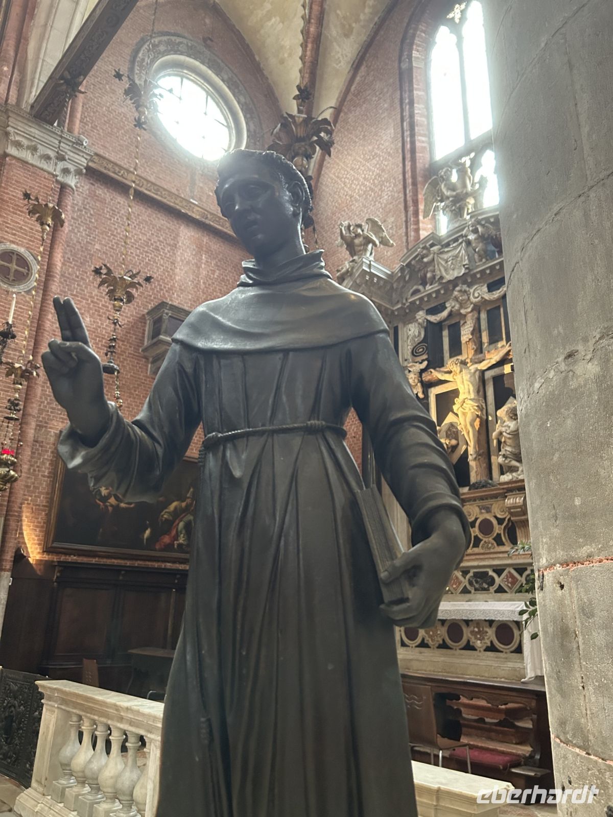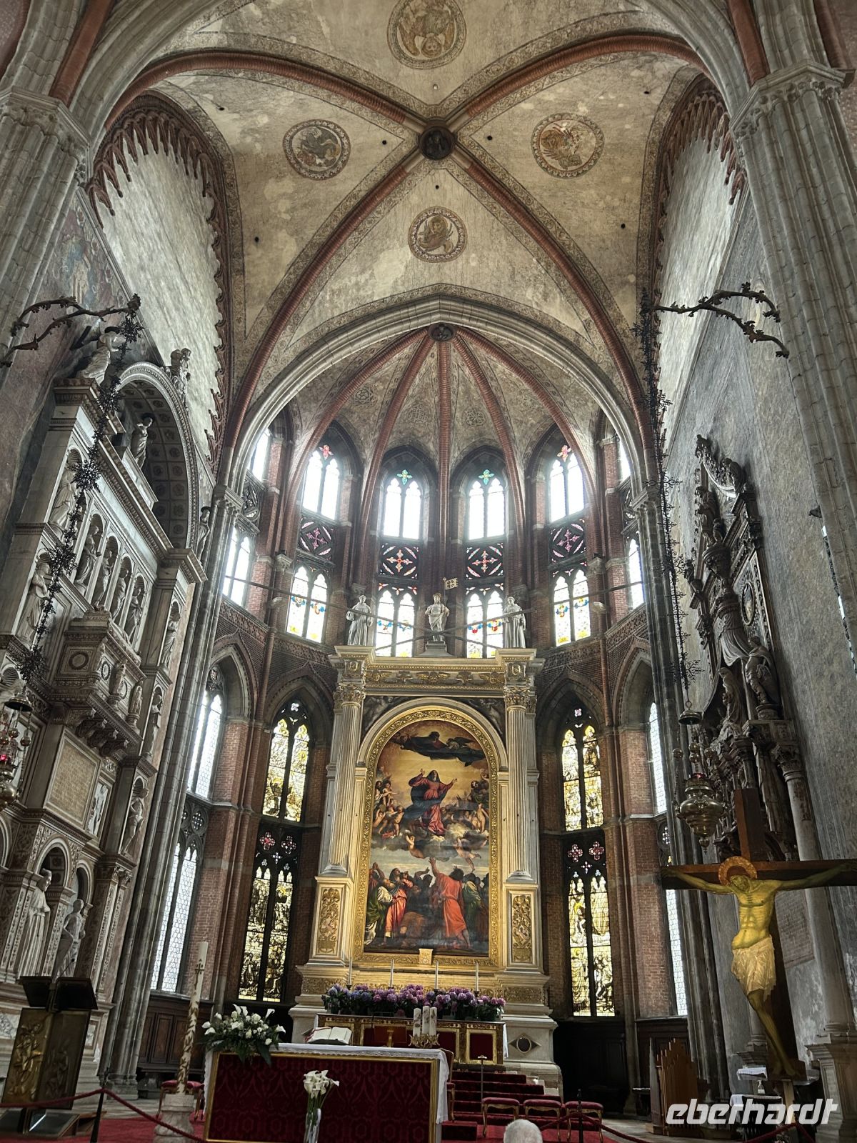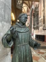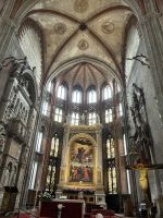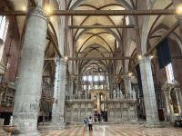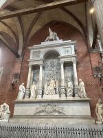 Am Nachmittag versammelten wir uns wieder mit unserer Gästeführerin Manuela – diesmal vor der monumentalen Basilika Santa Maria Gloriosa dei Frari. In ihrem Inneren offenbart sich Venedigs Herz aus Stein: Tizians „Assunta“ (Himmelfahrt Mariens), das Grabmal des Malers selbst sowie Canovas schlichter, doch ergreifender Kenotaph. Gotik und Renaissance verschmelzen hier zu spiritueller Größe.