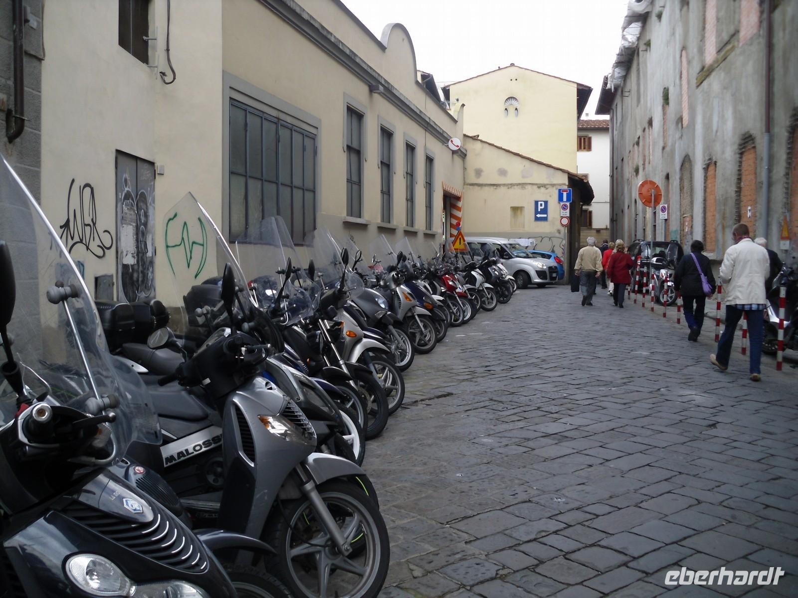 Ausgestattet mit den Audioguides starten wir zusammen mit Mathias, unserem Stadtführer, zu Fuß hinein nach Florenz. Heute haben die Italiener einen Feiertag, es ist voll in den Straßen und auf den Plätzen. Im Frauenkloster S. Appollonia betrachten wir gemeinsam das Bild des Heiligen Abendmahles. Durch das Marktviertel kommen wir zur Basilika San Lorenzo, sie ist vor allem die Familienkirche der Medici.
