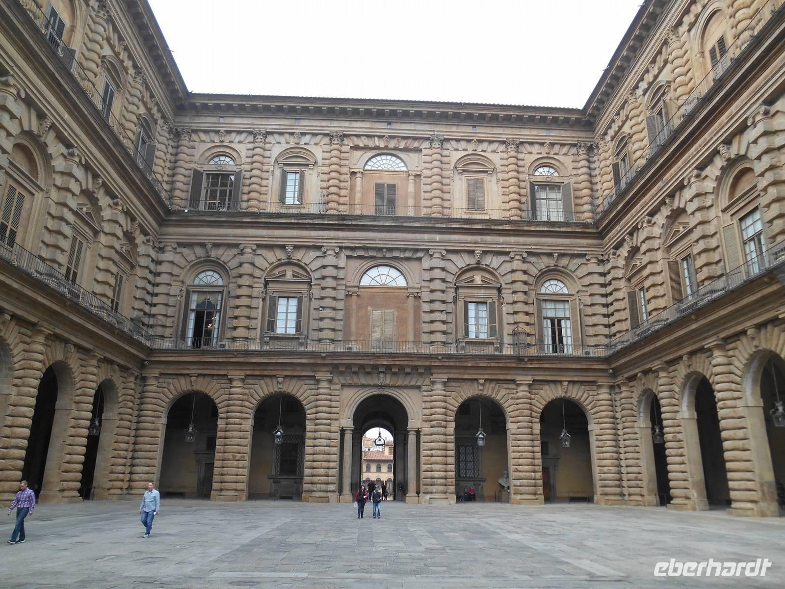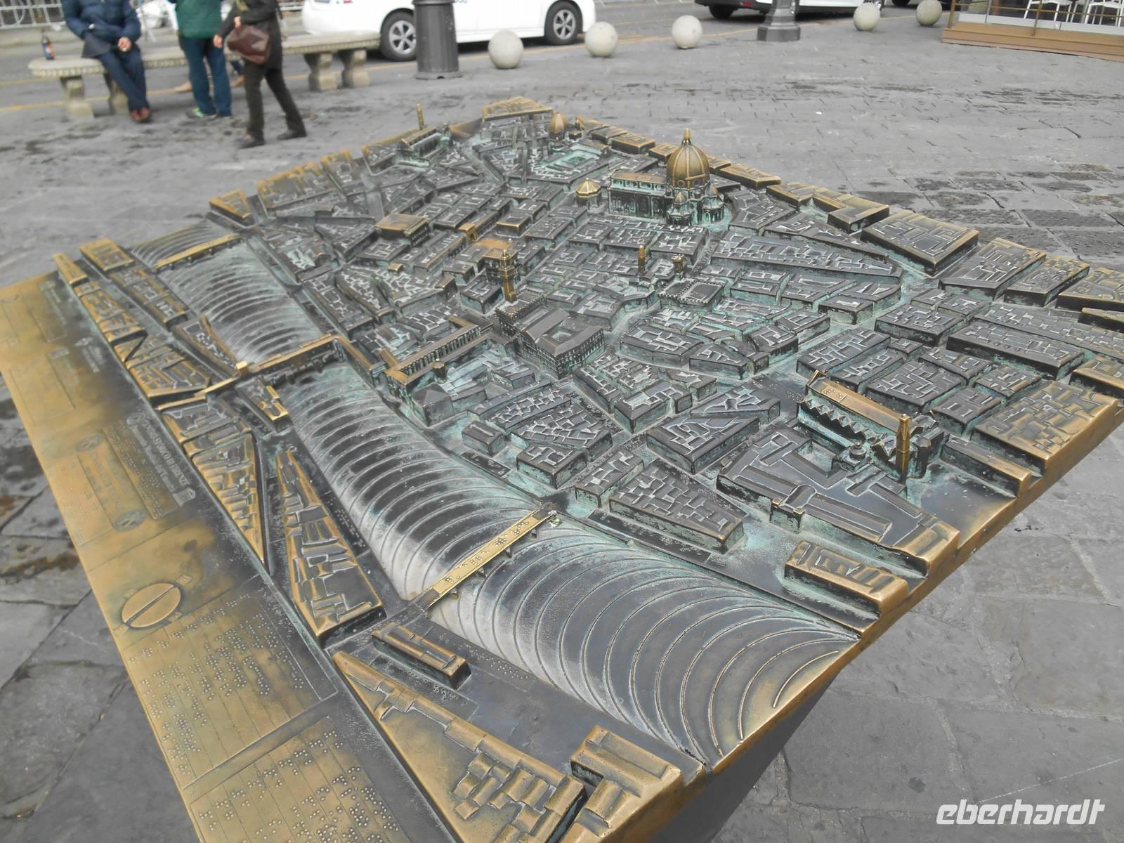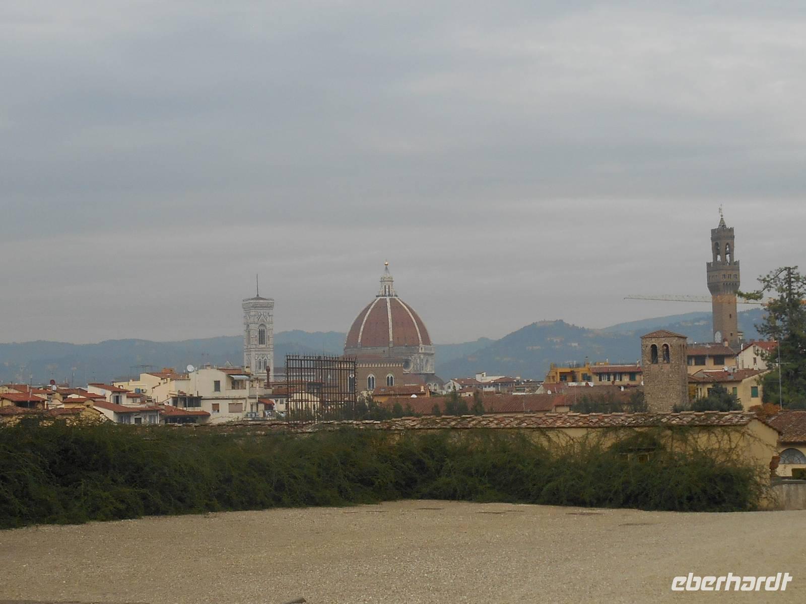 Ausgestattet mit Audio-Guides starteten wir zu Fuß gemeinsam mit Matthias, unserem Stadtführer. Innerhalb von nur 15 Gehminuten erreichten wir bereits den Domplatz und weiter über die Piazza della Repubblica die älteste Brücke von Florenz, die Ponte Vecchio. Es wird angenommen, dass eine Brücke hier schon während der Römerzeit existierte. Ihr heutiges Aussehen geht zurück auf das Jahr 1345, als sie gebaut wurde, um eine Brücke zu ersetzen, welche durch eine Flut zerstört wurde. Häuser wurden auf der Brücke gebaut, was eine gängige Praxis in großen europäischen Städten im Mittelalter war. Die Ponte Vecchio war die einzige Brücke in Florenz, welche den Zweiten Weltkrieg unbeschadet überstanden hat. Die Häuser auf der Brücke wurden zunächst als Werkstätten und von einer Vielfalt von Ladenbesitzern, wie zum Beispiel Metzgern genutzt und Gerber machten hier ihre Geschäfte. Im Jahr 1593 beschloß Herzog Ferdinand I. sie durch Goldschmiede zu ersetzen, angeblich, weil die Läden zu viel Müll produzierten und einen fauligen Gestank verursachten. Heute werden die Häuser als Läden verwendet, welche ein breites Sortiment an Schmuck verkaufen, angefangen von günstigem modernem Schmuck, hin zu teuren Antiquitäten. Anschließend ging es weiter zum Palazzo Pitti, welcher sich unterhalb des Boboli-Hügels erstreckt. Er wurde Mitte des 15. Jahrhunderts für den Bankier Luca Pitti nach Plänen von Brunelleschis gebaut und erfuhr später von den Medici eine Vergrößerung. In ihm residierte Cosimo de Medici und er beherbergte auch italienische Könige bzw. diente den Herrschern von Florenz als Wohnsitz. Wir wurden von Matthias durch das hiesige Silbermuseum geführt. Die Sammlungen des Museo degli Argenti bestehen aus dem Schatz der Medici und der Habsburg-Lothringer, darunter die berühmten Vasen Lorenzos des Prächtigen, Kameen Cosimos I., Bergkristalle von Franz I., Bernsteine Maria Magdalenas von Österreich, Elfenbeinarbeiten von Matthias de' Medici, Schmuck von Anna Maria Luisa, der letzten Repräsentantin des Hauses Medici, der Schatz Ferdinands III. (Sammlungen der Erzherzöge von Salzburg) und eine bedeutende Sammlung von Schmuckstücken, die von deutschen Goldschmieden Ende des 16. und im 17. Jahrhundert angefertigt wurden, sowie chinesisches und japanisches Porzellan. Sehr beeindruckend! Nach einer stärkenden Mittagspause ging unser Besichtigungsprogramm weiter... Hinterm Palazzo erstreckt sich am Hang der Boboli Garten, in ihm können wir bei angenehmen Temperaturen lustwandeln. Im Garten sind Brunnen, Grotten und herrliche Wasserspiele zu sehen. Von den schattigen Terrassen genießen wir die herrliche Aussicht auf die Stadt und die toskanische Landschaft. Zum Schluss bummeln wir noch durch den Bardini Garten und mit einigen Gästen zum Piazza Michelangelo, wo wir einen traumhaften Blick auf die gesamte Stadt genießen können.