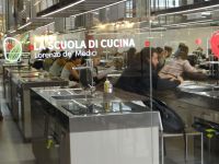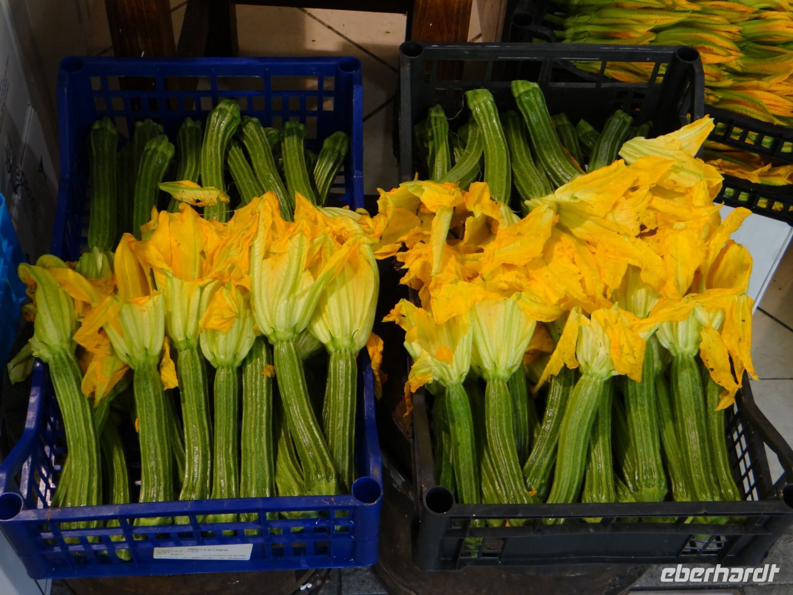 Die Straßenbahn bringt uns flott in die Stadt. An der Endhaltestelle nimmt uns unsere Gästeführerin Angela im Empfang. Zunächst geht es zur schönen Markthalle, die auf zwei Etagen mehr bietet, als das Herz begehrt. Die Auslagen sind wunderschön anzusehen, das sorgfältig arrangierte Gemüse ist ein Kunstwerk an sich – nun ist auch die Saison für die Zucchiniblüten, die auf verschiedene Weise zubereitet, den Gaumen erfreuen.