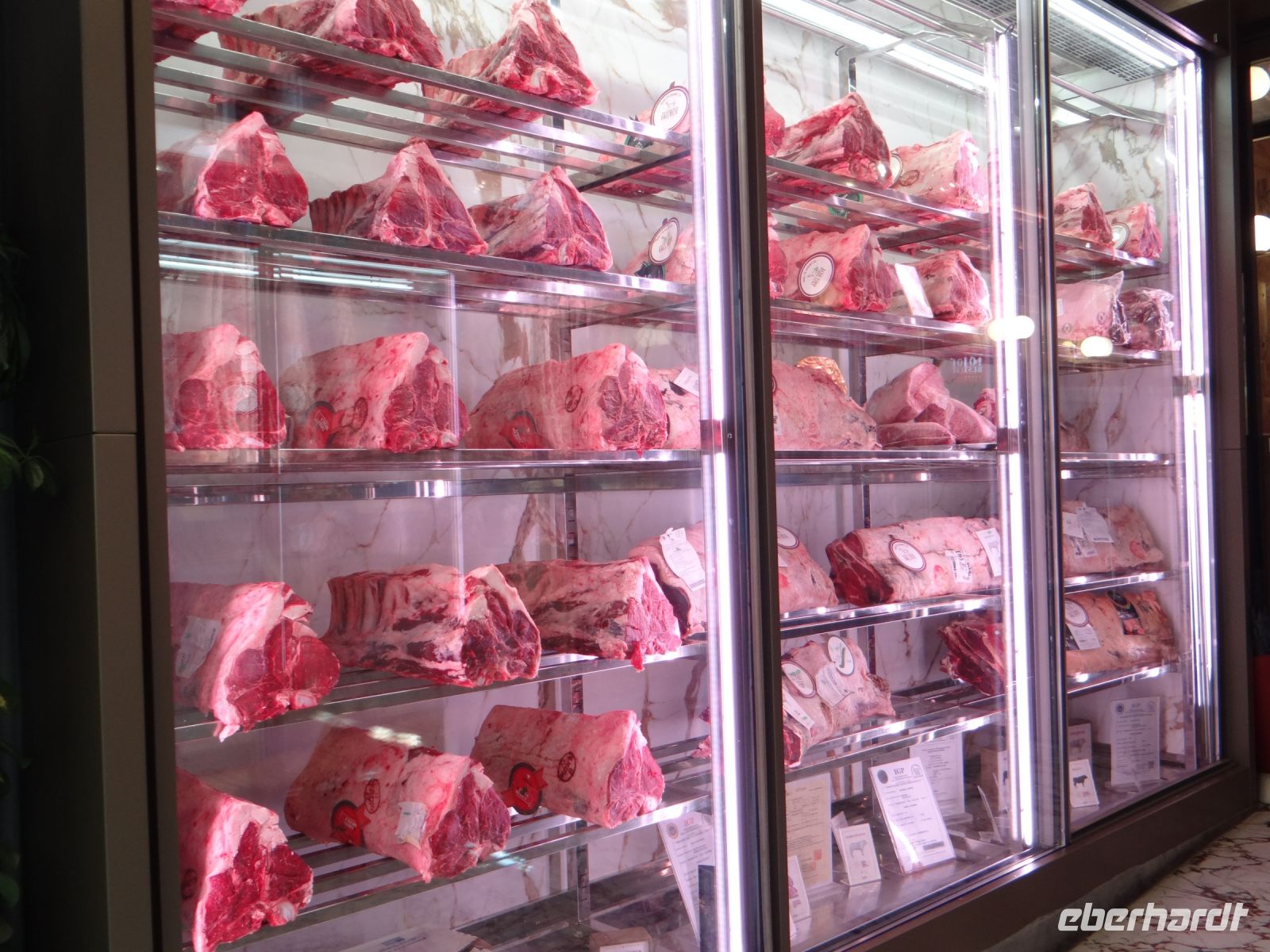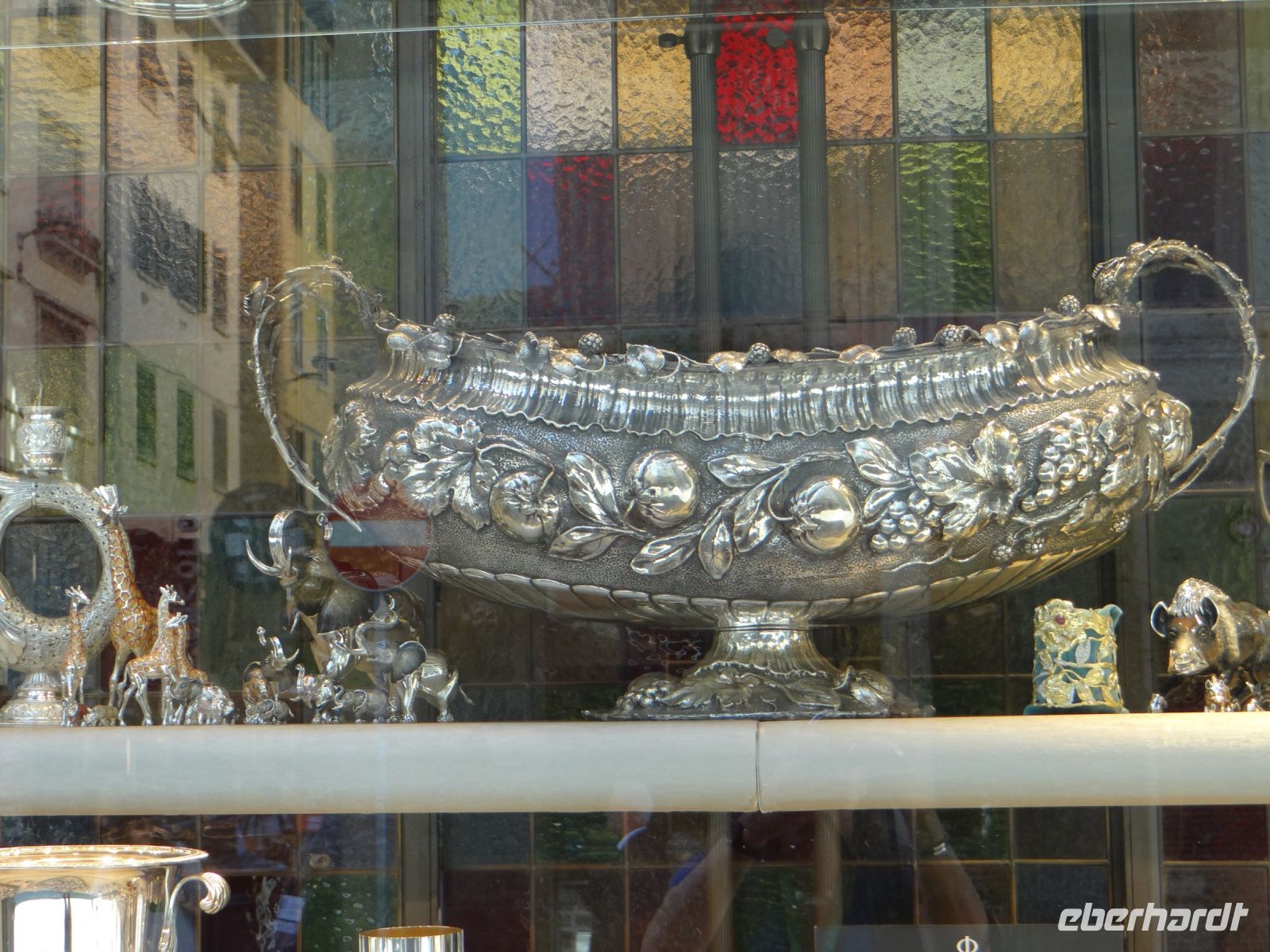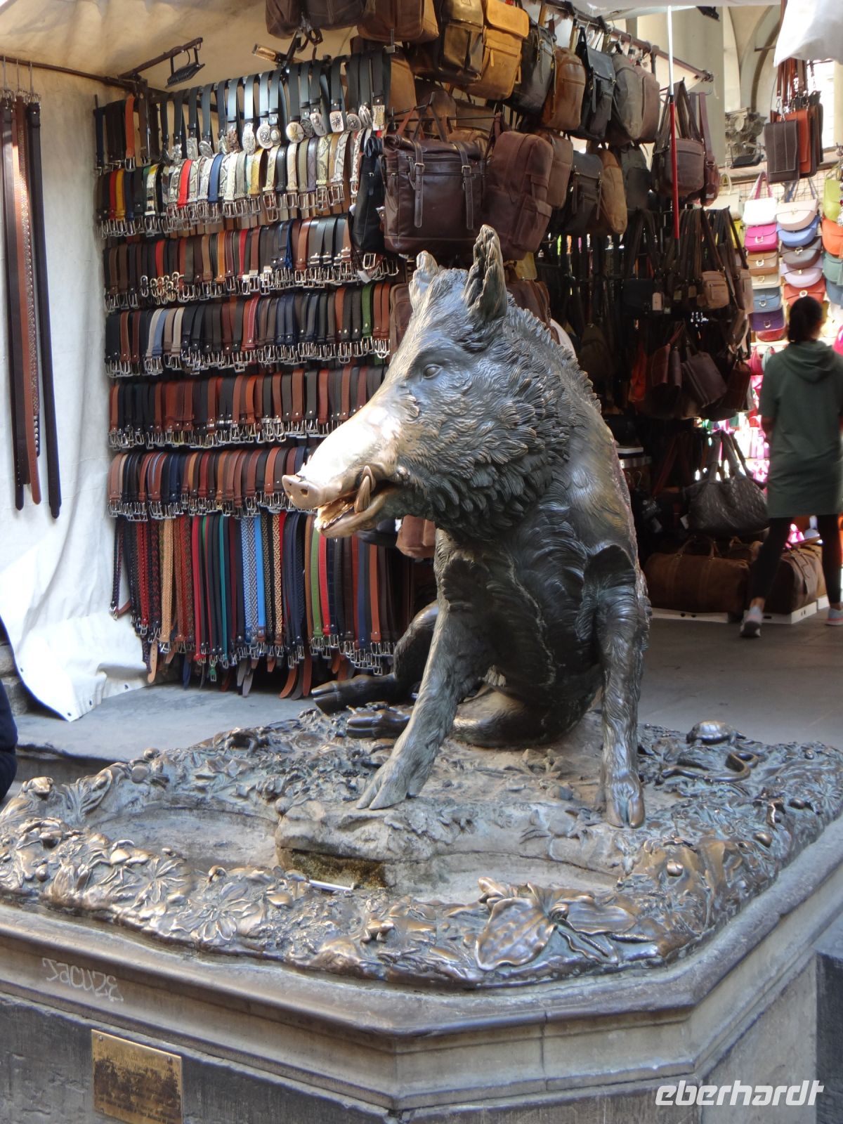 Wir laufen über die teure Einkaufsstraße mit den Guccis dieser Welt zum Wildschwein, das mit der richtigen Behandlung – Schnauze streicheln und Geld dalassen – dafür sorgt, dass man wiederkommt. Die Schnauze der Skulptur ist schon ganz golden, wie viele Zärtlichkeiten dieses Borstenvieh wohl inzwischen bekommen haben mag?