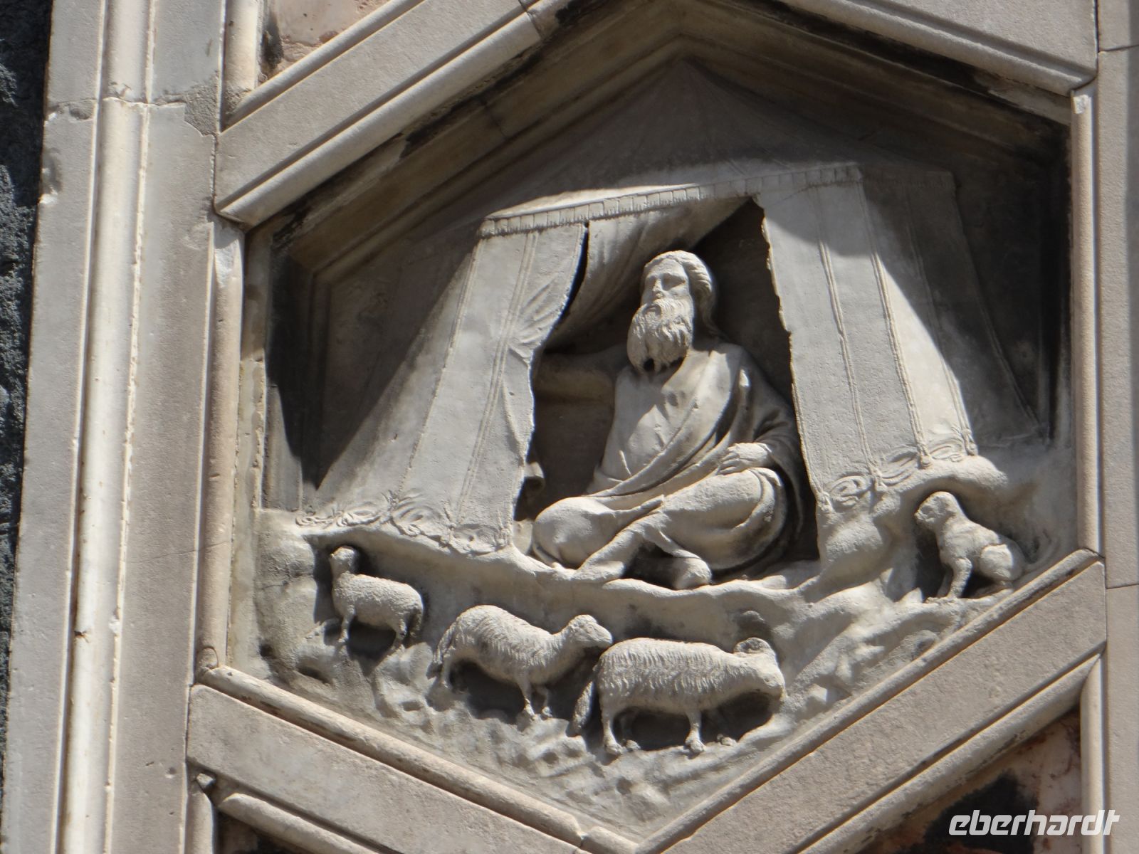 Die von Giotto gearbeiteten Reliefs für seinen Glockenturm sind hier die Originale und ganz nahe zu sehen. Wie Eva dem Adam aus der Rippe springt, ist immer wieder faszinierend zu sehen. Doch auch die Zünfte sind abgebildet, die sicher viel Geld zum Bau des Turms und der Kirche beigesteuert haben.