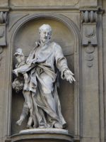 Die Kirche San Lorenzo ist nicht weit, in der der Stammvater der Medici – Cosimo – gegraben ist. Das Geschlecht ist innerhalb von 17 Jahren zur reichsten Familie seiner Zeit aufgestiegen, indem es die Finanzen des Papstes verwaltet hat. 2-3 % Zins nahmen sie für ihre Kredite. Da muss man allerdings schon eine gute finanzielle Grundlage haben, um aus diesem Prozentsatz etwas zu ziehen. Es hat geklappt, die Medici haben mit ihren Palästen die Stadt verschönert und mit ihren Kunstwerken die Uffizien bestückt. Somit haben sie auch andere an ihrer Wohlhabenheit teilnehmen lassen.